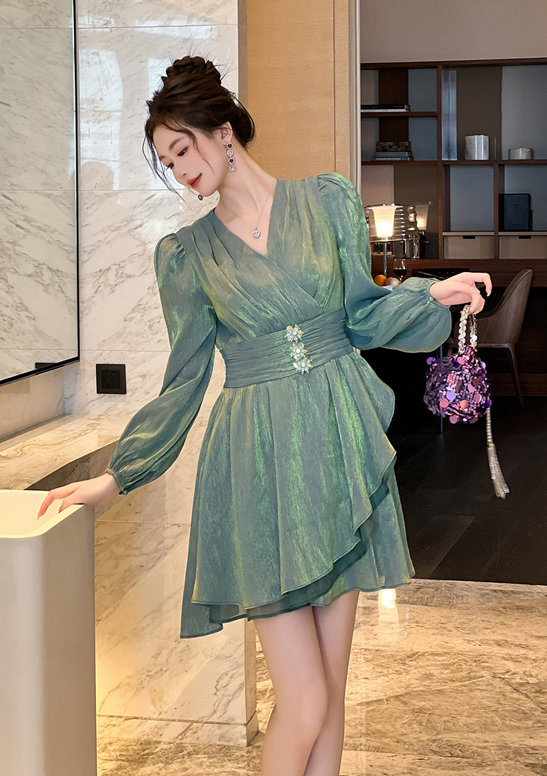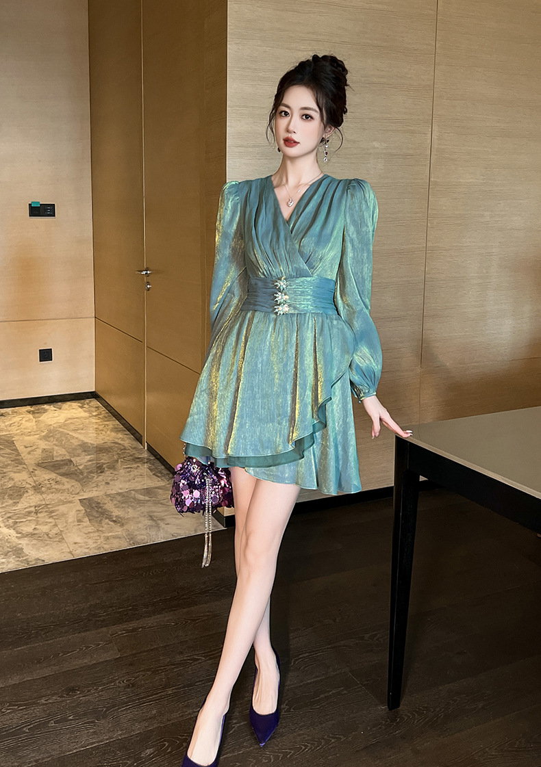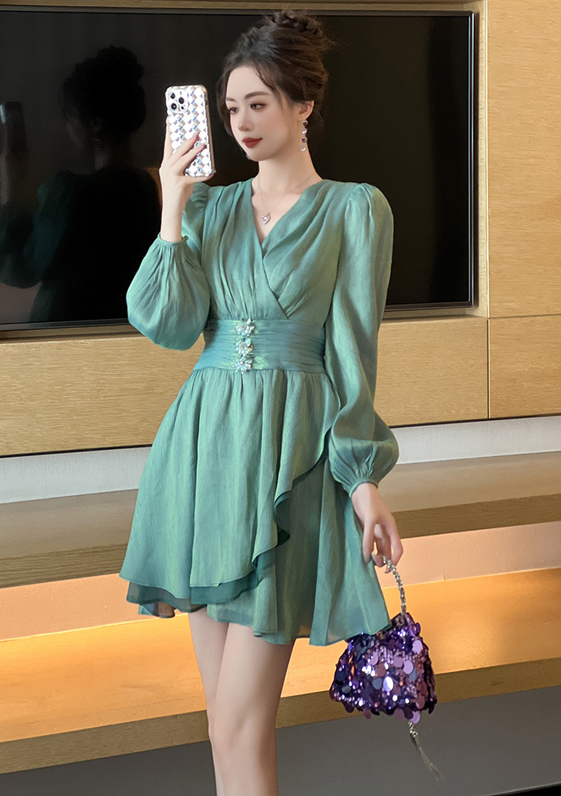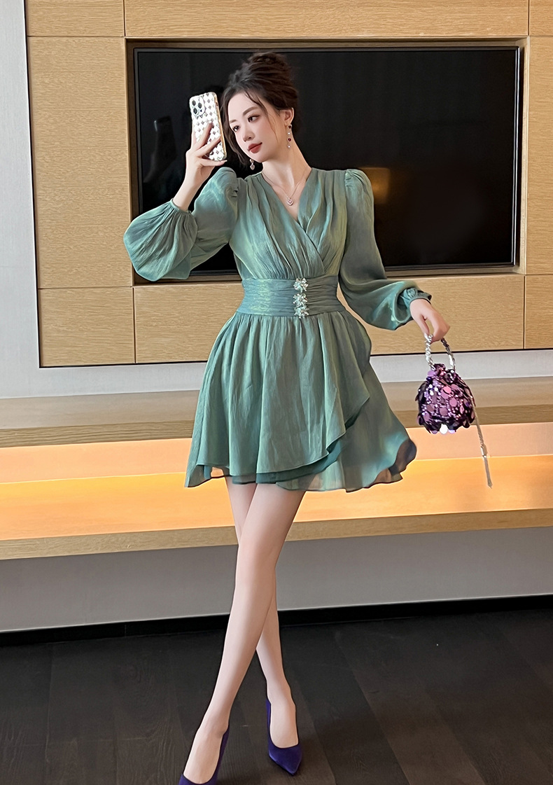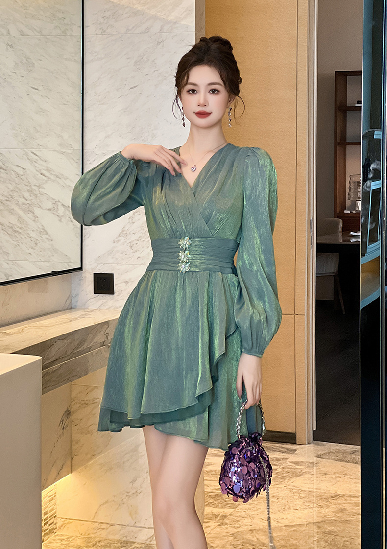 Chiếc đầm cho nữ mang phong cách Pháp với cổ chữ V tôn dáng. Thiết kế này có phần eo ôm nhẹ, giúp tạo cảm giác cơ thể thon thả và cao hơn. Tay áo phồng cách điệu kết hợp cùng phần vải dáng rủ mềm mại và đường cắt không đều ở phần váy, tạo nên một tổng thể vừa điệu đà vừa hiện đại. Sản phẩm phù hợp để mặc đi làm, dạo phố hay dự những buổi gặp mặt thân mật. | Tên sản phẩm: Váy Đầm Liền Thân Nữ Tay Phồng Cổ Chữ V Hàng Mùa Xuân Thu Đông - Thời Trang Nữ | Mã sản phẩm: B0669 - Giá: 1.390.000đ | Mã nhà sản xuất: CHDG-G04Hình ảnh sản phẩm