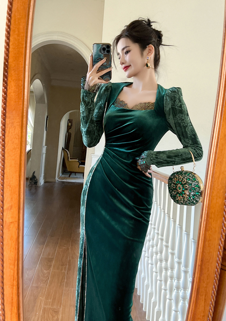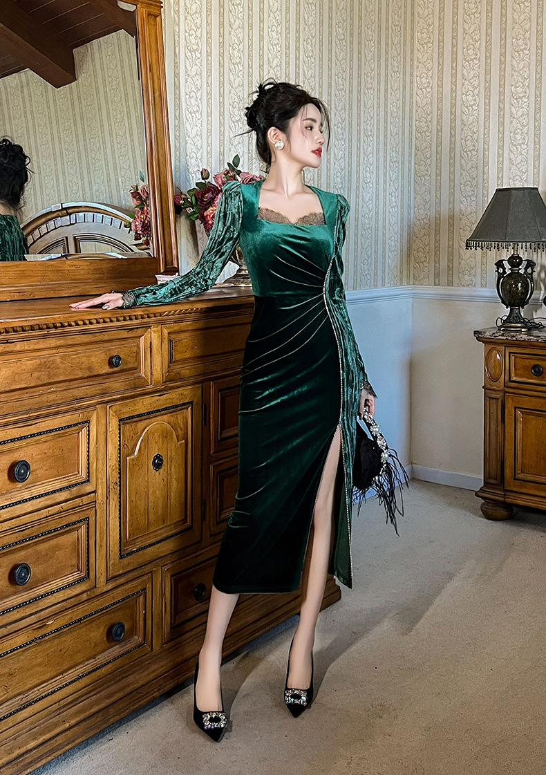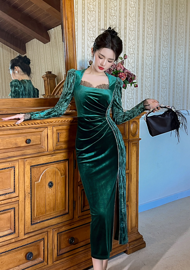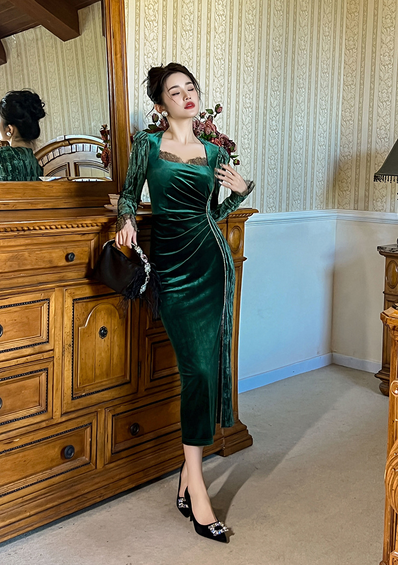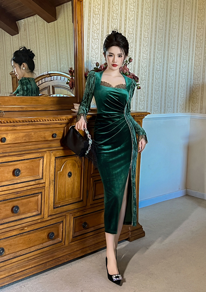 Váy dạ hội chất liệu mềm mại, dành cho thu đông 2025. Thiết kế kiểu Pháp với cổ vuông tôn dáng, điểm nhấn là các hạt đá lấp lánh được đính tinh xảo. Form váy ôn cơ thể, tà xẻ nhẹ tạo vẻ thanh thoát. Sản phẩm phù hợp cho những buổi tiệc hoặc sự kiện. Mặc kết hợp cùng giày cao gót và phụ kiện đơn giản để có set đồ hoàn chỉnh. | Tên sản phẩm: Váy Đầm Liền Thân Nữ Dáng Ôm Hàng Mùa Xuân Thu Đông - Thời Trang Nữ | Mã sản phẩm: B0690 - Giá: 1.190.000đ | Mã nhà sản xuất: CHDG-G04Hình ảnh sản phẩm