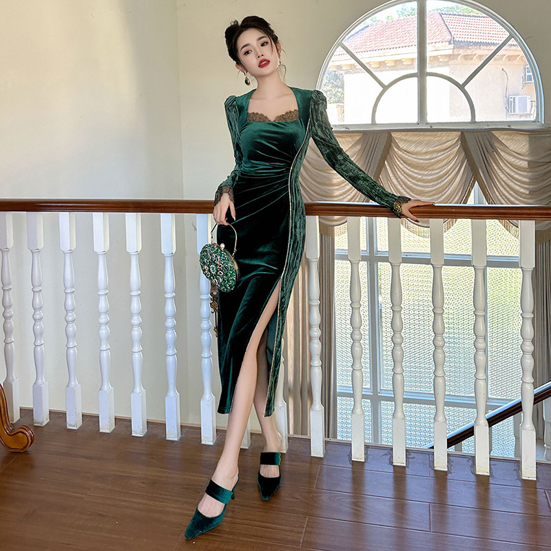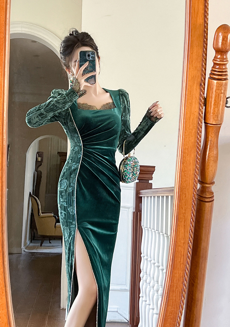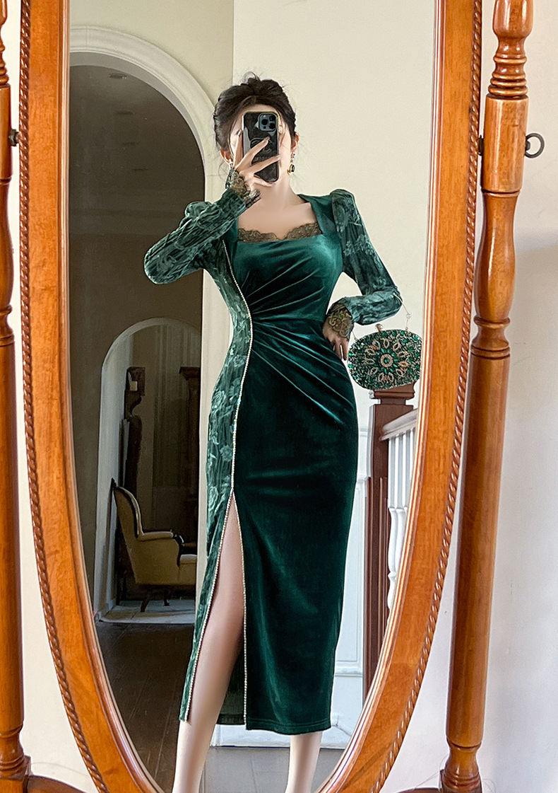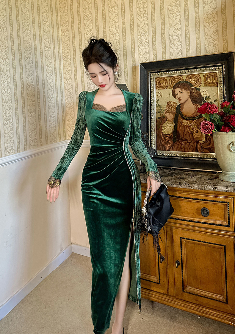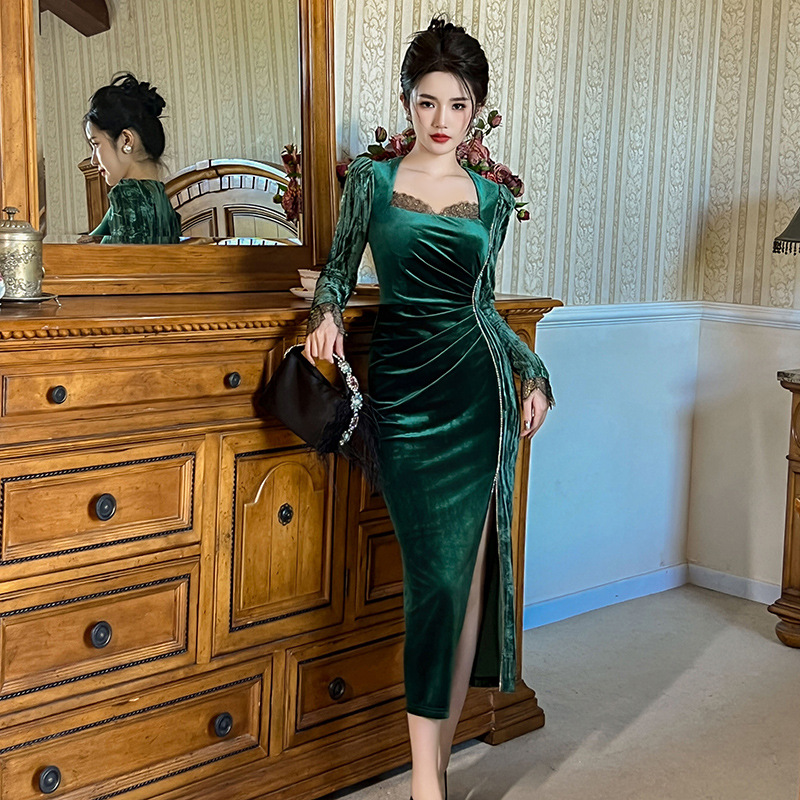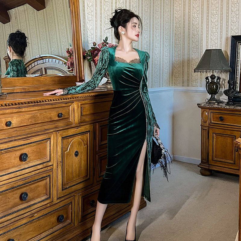 Váy dạ hội chất liệu mềm mại, dành cho thu đông 2025. Thiết kế kiểu Pháp với cổ vuông tôn dáng, điểm nhấn là các hạt đá lấp lánh được đính tinh xảo. Form váy ôn cơ thể, tà xẻ nhẹ tạo vẻ thanh thoát. Sản phẩm phù hợp cho những buổi tiệc hoặc sự kiện. Mặc kết hợp cùng giày cao gót và phụ kiện đơn giản để có set đồ hoàn chỉnh. | Tên sản phẩm: Váy Đầm Liền Thân Nữ Dáng Ôm Hàng Mùa Xuân Thu Đông - Thời Trang Nữ | Mã sản phẩm: B0690 - Giá: 1.190.000đ | Mã nhà sản xuất: CHDG-G04Hình ảnh sản phẩm