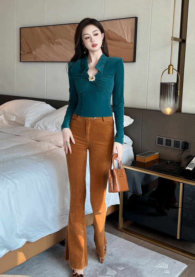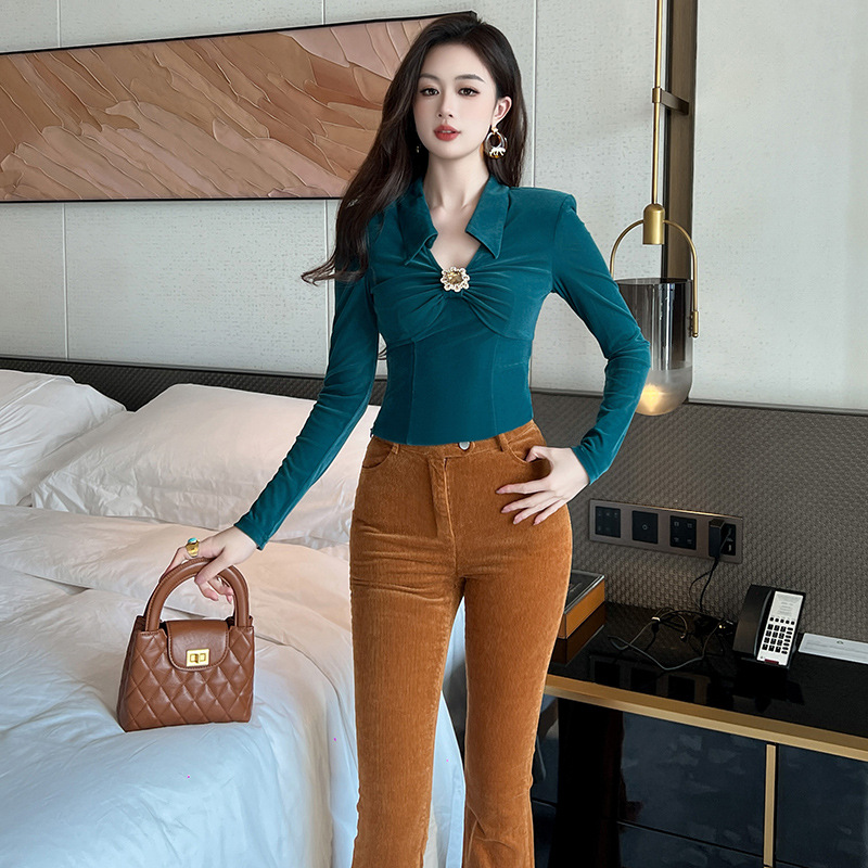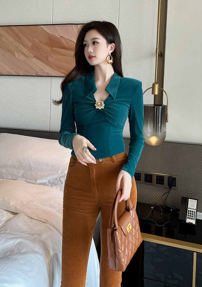 Áo thun tay ngắn kiểu dáng ôm cơ thể, phần cổ bẻ và khoét cổ tạo điểm nhấn. Chất vải mềm mịn, mang đến sự thoải mái khi mặc. Thiết kế ngắn vừa vặn, giúp tôn dáng người mặc. Sản phẩm phù hợp để kết hợp với nhiều loại trang phục khác nhau. Có thể mặc đi làm, đi chơi hay dự các cuộc gặp mặt thông thường. Dễ dàng giặt sạch và bảo quản. | Tên sản phẩm: Áo Thun Nữ Dáng Ôm Trễ Ngực Kín Cổ Hàng Mùa Xuân Thu Đông - Thời Trang Nữ | Mã sản phẩm: B0693 - Giá: 830.000đ | Mã nhà sản xuất: CHDG-G03Hình ảnh sản phẩm