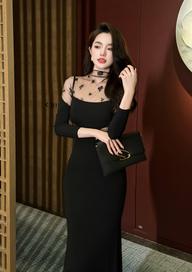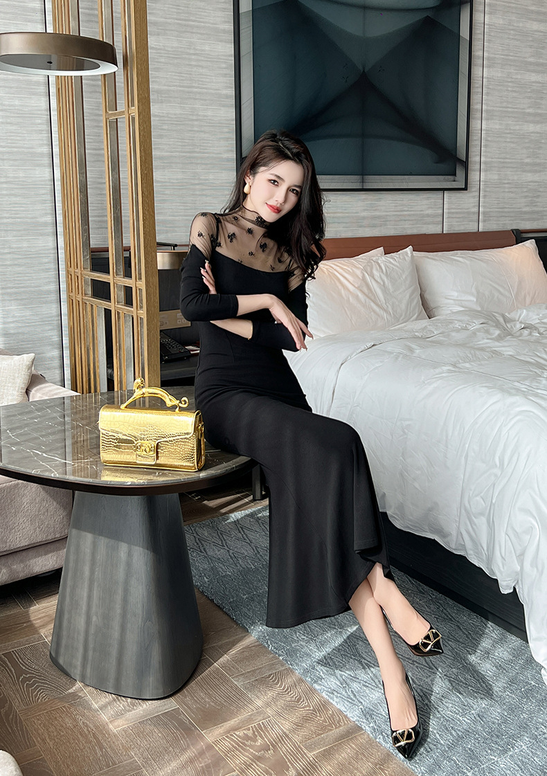 Chiếc đầm dáng dài cho nàng thêm phần duyên dáng. Thiết kế kết hợp chất vải mỏng nhẹ và thân đầm ôn tôn đường nét. Điểm nhấn là phần eo thắt nơ và tà đầm xòe nhẹ tựa đuôi cá, tạo nên vẻ đẹp mềm mại. Kiểu dáng mang phong cách nữ tính, nhẹ nhàng. Mặc kèm áo khoác mỏng hoặc phụ kiện đơn giản để phù hợp nhiều dịp. | Tên sản phẩm: Váy Đầm Liền Thân Nữ Lưới Mỏng Kiểu Đuôi Cá Hàng Mùa Xuân Thu Đông - Thời Trang Nữ | Mã sản phẩm: B0710 - Giá: 1.120.000đ | Mã nhà sản xuất: CHDG-G04Hình ảnh sản phẩm