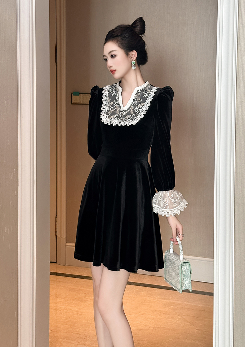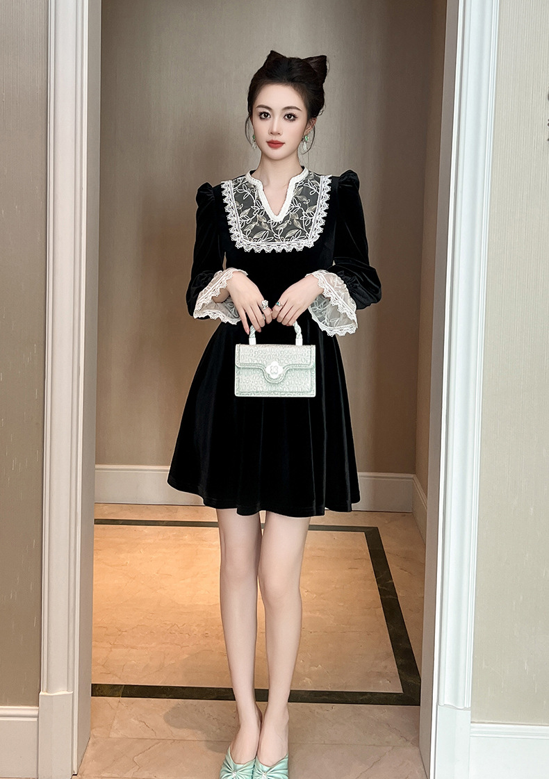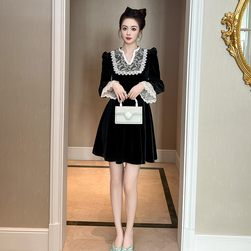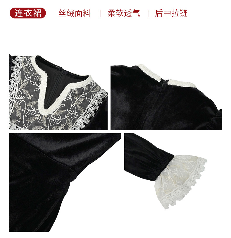 Chiếc đầm dành cho mùa thu với chất liệu nhung mềm mại, điểm nhấn là phần cổ khoét hình chữ V thanh lịch. Tay áo và một số chi tiết được kết hợp bằng chất ren tinh tế, tạo nên vẻ đẹp có hồn. Thiết kế ôm nhẹ phần eo giúp tôn lên dáng người mặc. Sản phẩm phù hợp để mặc đi làm, dự tiệc hoặc gặp mặt bạn bè. Có thể giặt bằng tay và phơi ở nơi râm mát để giữ form áo và chất vải được bền đẹp. | Tên sản phẩm: Váy Đầm Liền Thân Nữ Chất Liệu Ren Cổ Chữ V Hàng Mùa Xuân Thu Đông - Thời Trang Nữ | Mã sản phẩm: B0724 - Giá: 1.390.000đ | Mã nhà sản xuất: CHDG-G04Hình ảnh sản phẩm