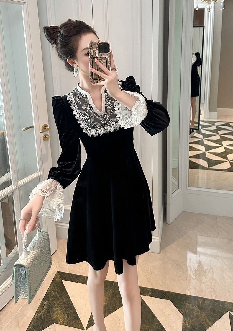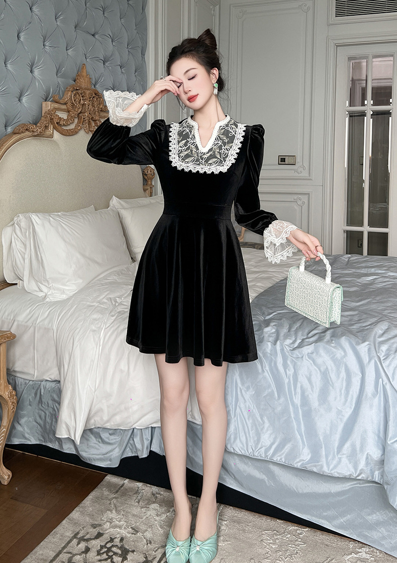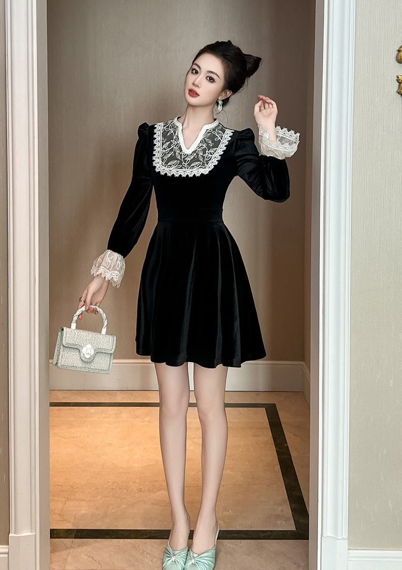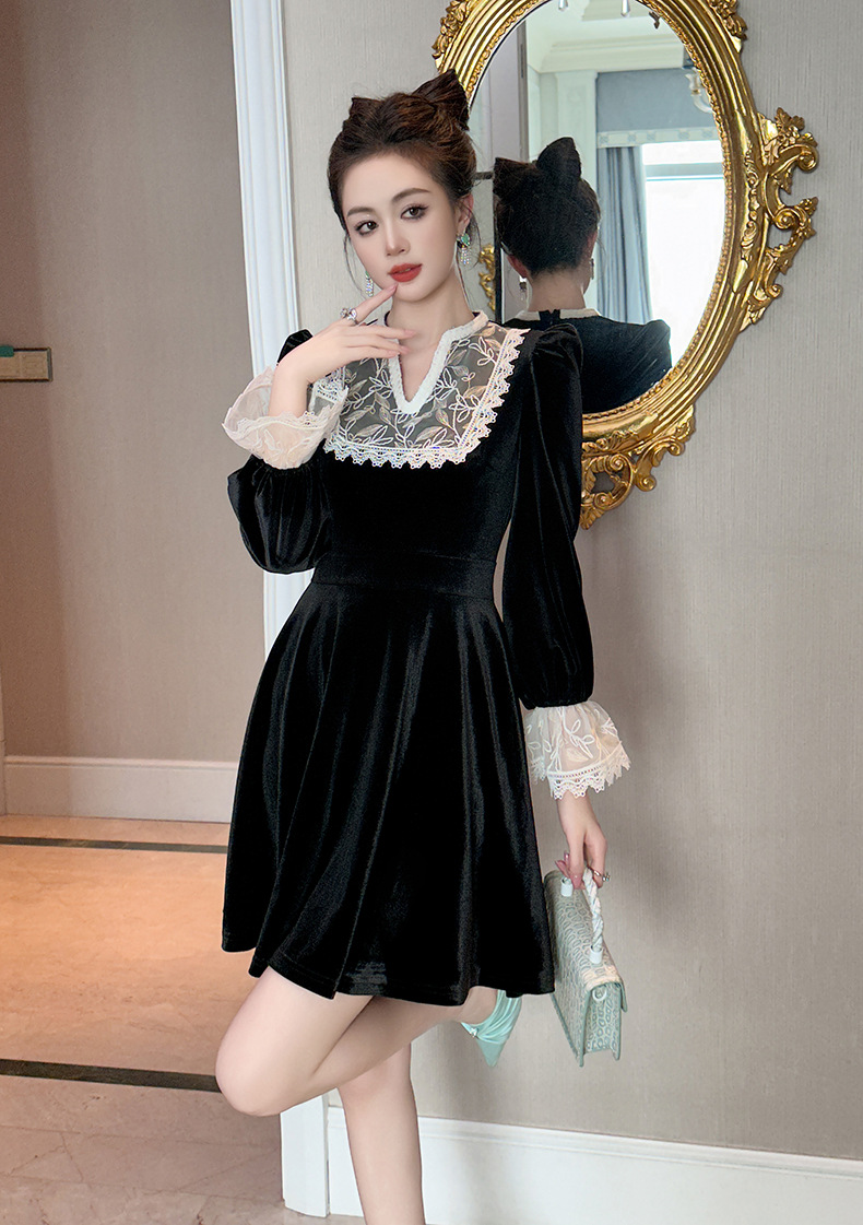 Chiếc đầm dành cho mùa thu với chất liệu nhung mềm mại, điểm nhấn là phần cổ khoét hình chữ V thanh lịch. Tay áo và một số chi tiết được kết hợp bằng chất ren tinh tế, tạo nên vẻ đẹp có hồn. Thiết kế ôm nhẹ phần eo giúp tôn lên dáng người mặc. Sản phẩm phù hợp để mặc đi làm, dự tiệc hoặc gặp mặt bạn bè. Có thể giặt bằng tay và phơi ở nơi râm mát để giữ form áo và chất vải được bền đẹp. | Tên sản phẩm: Váy Đầm Liền Thân Nữ Chất Liệu Ren Cổ Chữ V Hàng Mùa Xuân Thu Đông - Thời Trang Nữ | Mã sản phẩm: B0724 - Giá: 1.390.000đ | Mã nhà sản xuất: CHDG-G04Hình ảnh sản phẩm