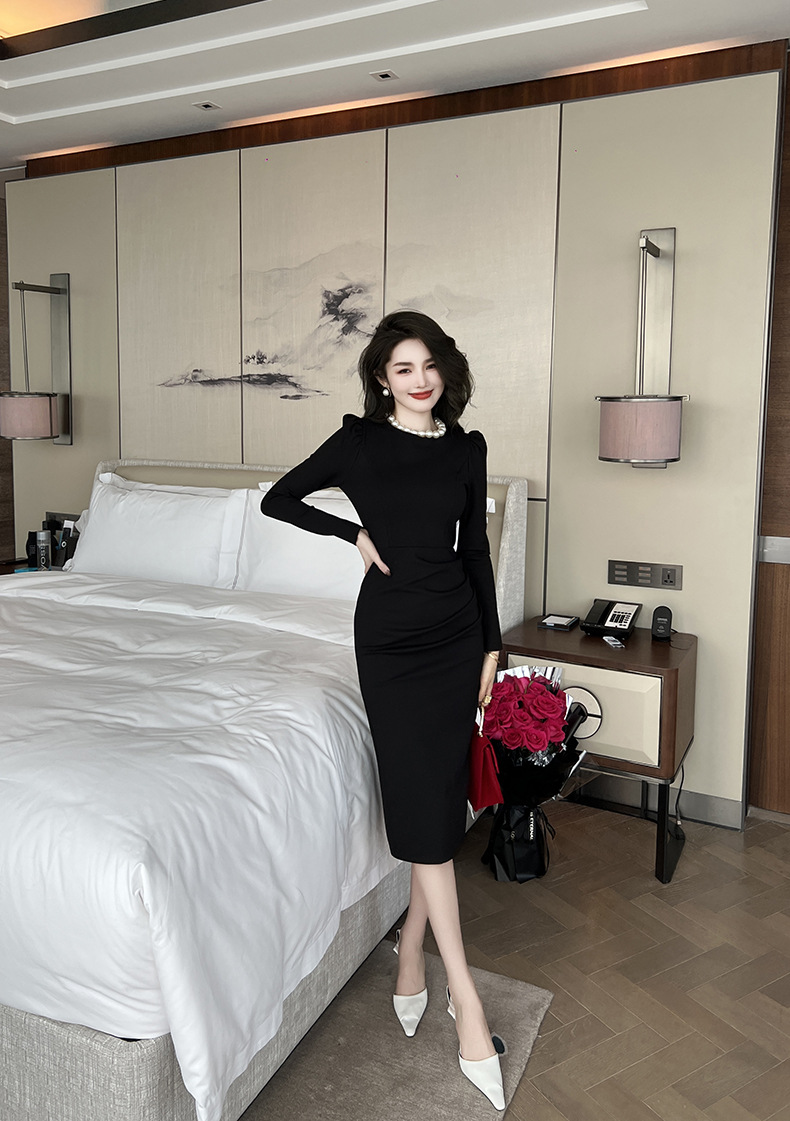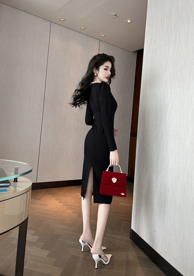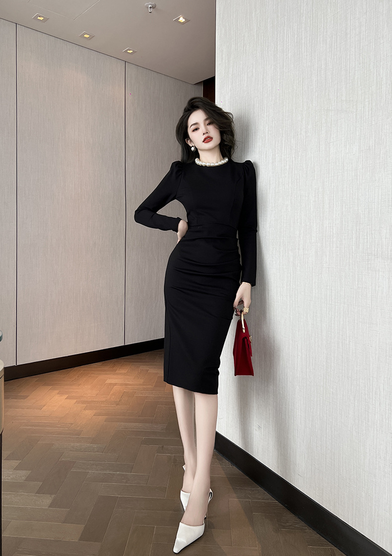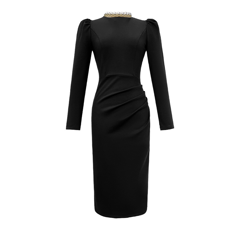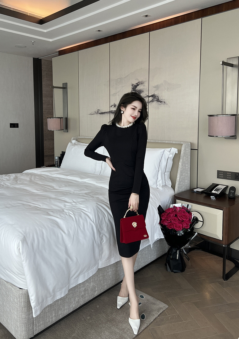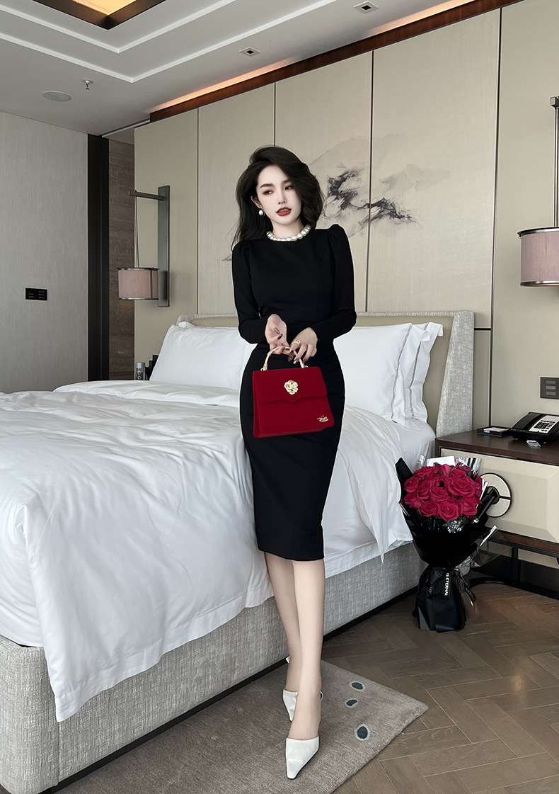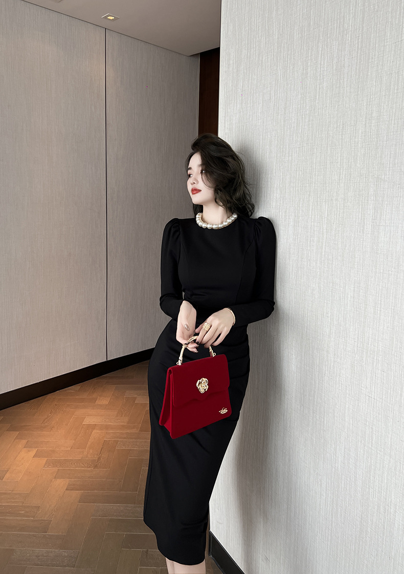 Chiếc đầm ôm dáng tôn lên những đường nét cơ thể một cách tinh tế. Cổ tròn được điểm xuyết bằng những hạt ngọc tr giả tạo vẻ thanh lịch. Kiểu dáng phù hợp cho cả lúc làm việc và những dịp gặp gỡ thường ngày. Chất vải dày dặn, có độ co giãn nhẹ giúp bạn thoải mái vận động. Mặc cùng giày búp bê hoặc giày gót thấp để có vẻ ngoài hoàn chỉnh. | Tên sản phẩm: Váy Đầm Liền Thân Nữ Dáng Ôm Hàng Mùa Xuân Thu Đông - Thời Trang Nữ | Mã sản phẩm: B0736 - Giá: 1.050.000đ | Mã nhà sản xuất: CHDG-G03Hình ảnh sản phẩm