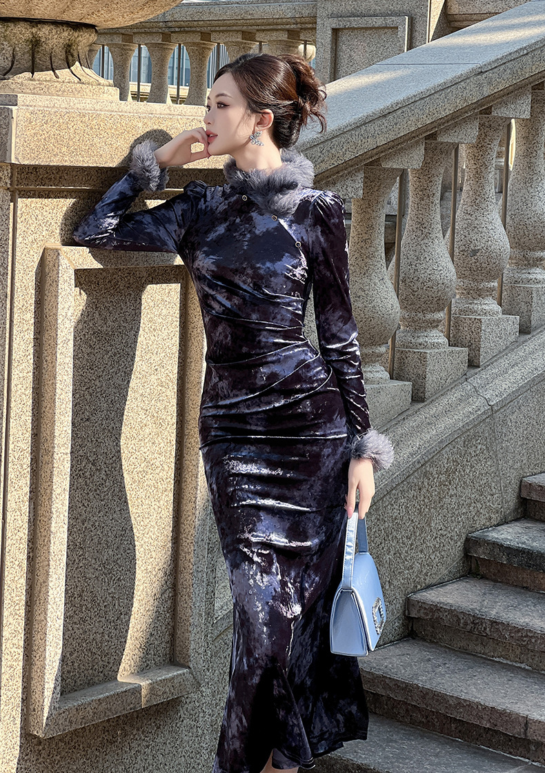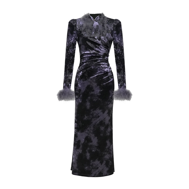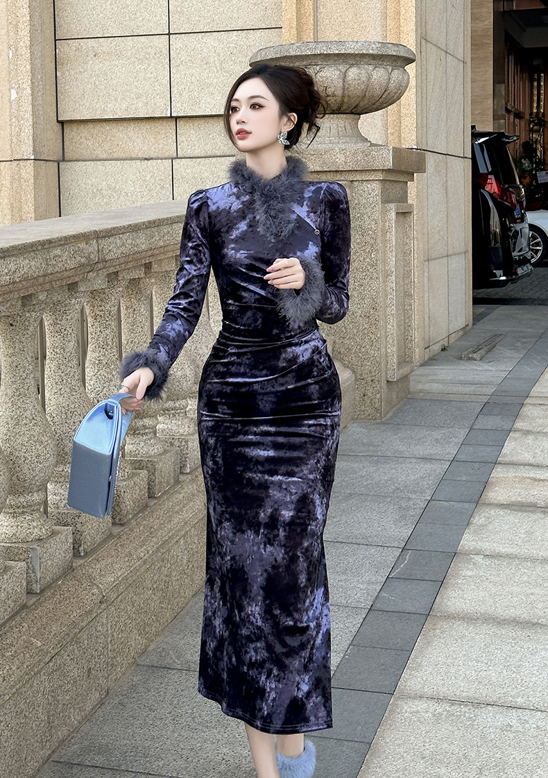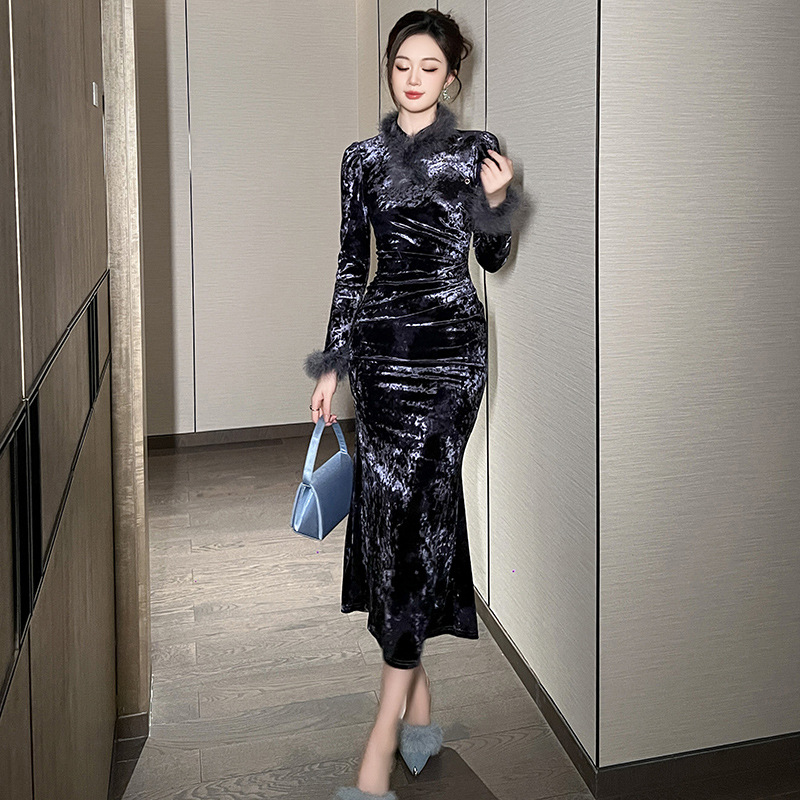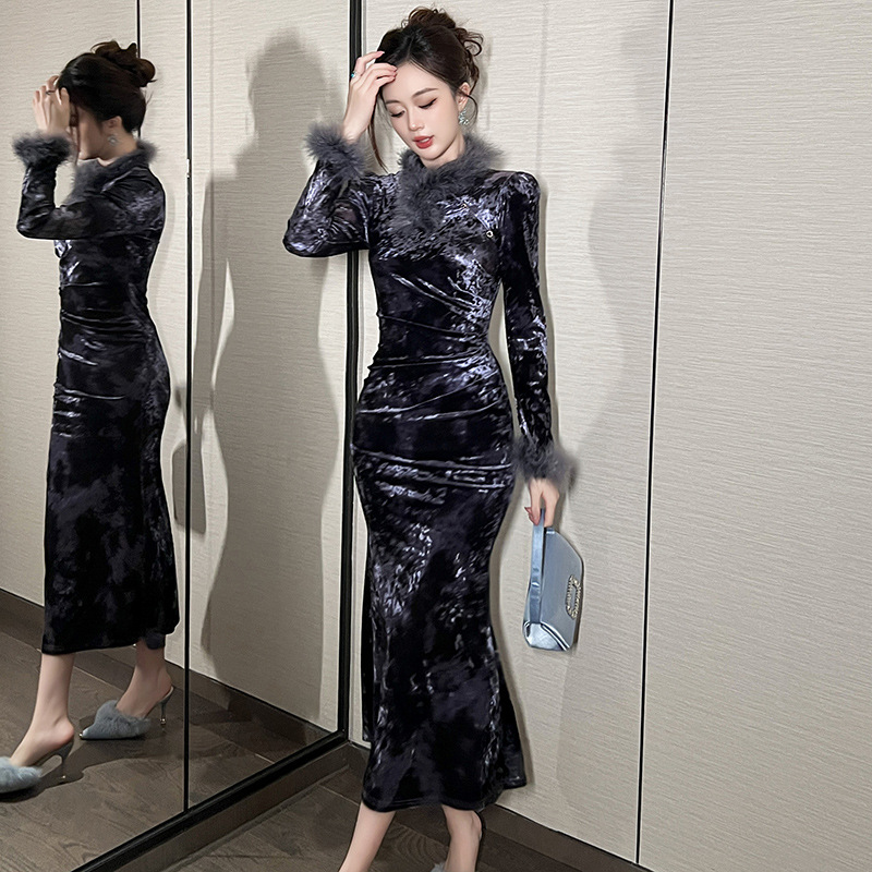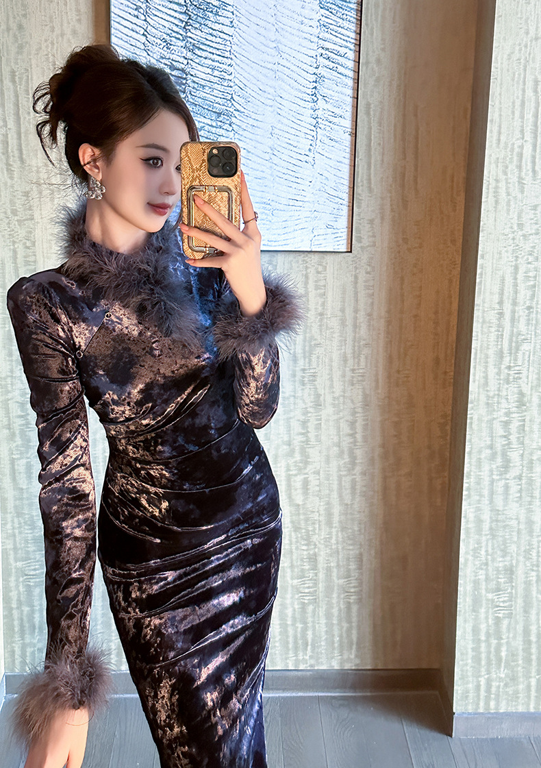 Chiếc đầm dáng ôm lấy cảm hứng từ nét đẹp xưa, được làm từ chất liệu nhung mềm mại, tôn lên những đường nét cơ thể một cách tinh tế. Thiết kế cổ cao cùng họa tiết trang trí mang phong cách hiện đại pha trộn cổ điển, tạo nên một diện mạo vừa duyên dáng vừa có điểm nhấn. Sản phẩm phù hợp để mặc trong nhiều dịp khác nhau. Bạn có thể giặt nhẹ và phơi khô tự nhiên để giữ dáng đầm được bền đẹp. | Tên sản phẩm: Váy Đầm Liền Thân Nữ Dáng Ôm Hàng Mùa Xuân Thu Đông Phục Cổ Cổ Điển - Thời Trang Nữ | Mã sản phẩm: B0751 - Giá: 1.440.000đ | Mã nhà sản xuất: CHDG-G04Hình ảnh sản phẩm