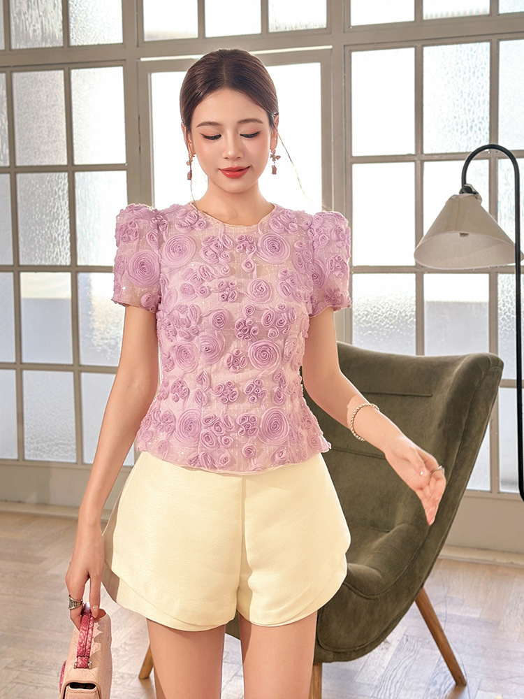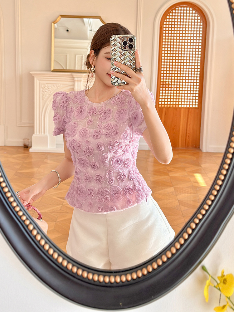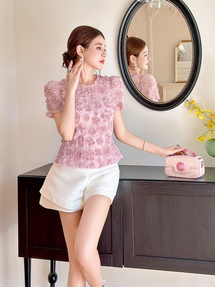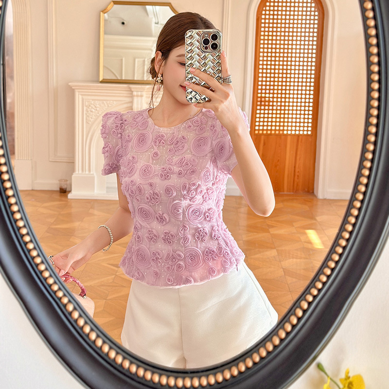Áo thun nữ dáng ôm với điểm nhấn là những bông hoa nổi ba chiều tinh tế, mang đến vẻ đẹp lãng mạn, phong cách. Thiết kế tay bồng cùng tông màu hồng dịu nhẹ tạo nên sự nữ tính, trẻ trung. Chất vải co giãn nhẹ mang lại sự thoải mái cho người mặc. Sản phẩm dễ dàng phối cùng quần jeans hoặc chân váy để tạo nên những bộ trang phục hàng ngày. | Tên sản phẩm: Áo Thun Nữ Dáng Ôm Tay Phồng Họa Tiết Hoa Hàng Mùa Xuân Thu Đông - Thời Trang Nữ | Mã sản phẩm: B0763 - Giá: 990.000đ | Mã nhà sản xuất: CHDG-G03Hình ảnh sản phẩm
