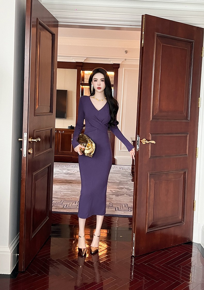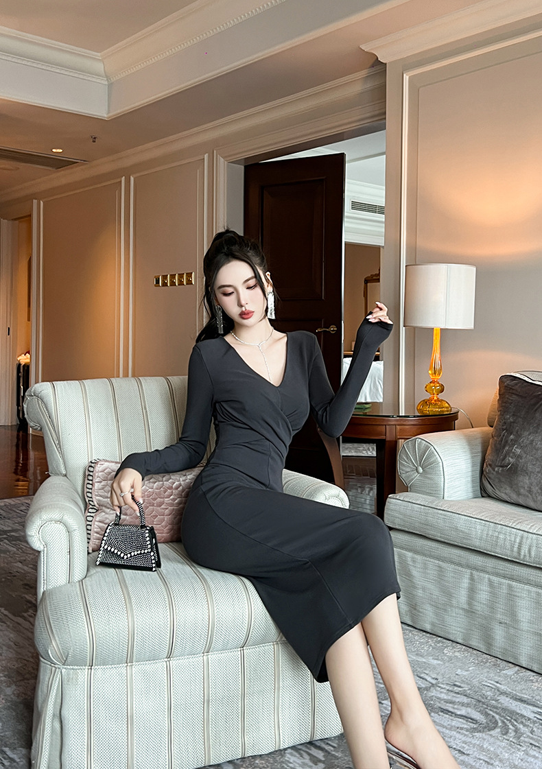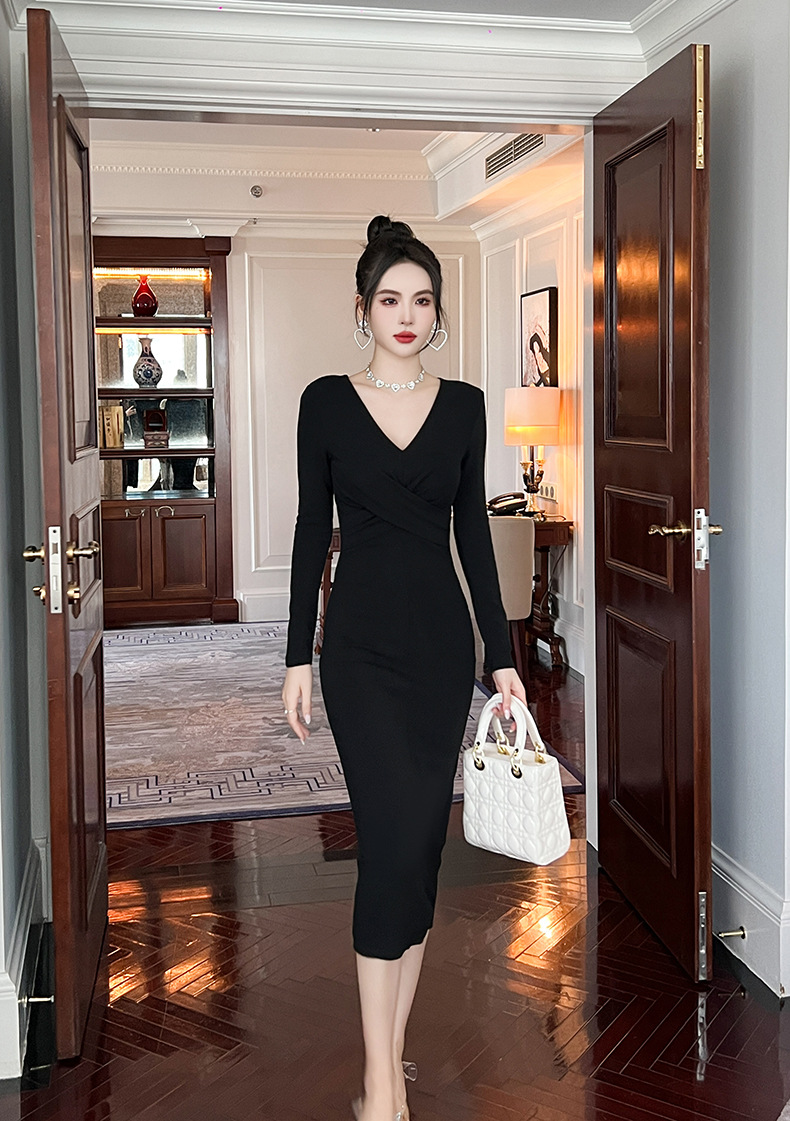 Chiếc váy dành cho nữ với kiểu dáng ôm dáng, phần cổ khoét hình chữ V tinh tế. Chất vải mềm mại, dáng váy dài trung bình giúp tôn lên vẻ đẹp dịu dàng. Sản phẩm thích hợp để mặc trong nhiều dịp khác nhau, có thể dùng làm váy bên trong hoặc mặc cùng áo khoác nhẹ. Dễ dàng phối hợp với các phụ kiện để tạo nên vẻ ngoài hài hòa. | Tên sản phẩm: Váy Đầm Liền Thân Nữ Dáng Ôm Cổ Chữ V Hàng Mùa Xuân Thu Đông - Thời Trang Nữ | Mã sản phẩm: B0791 - Giá: 980.000đ | Mã nhà sản xuất: CHDG-G03Hình ảnh sản phẩm