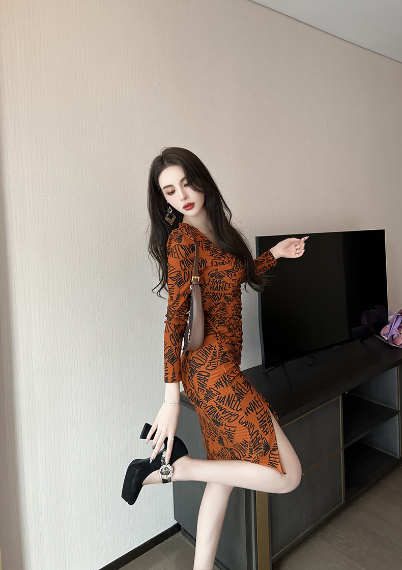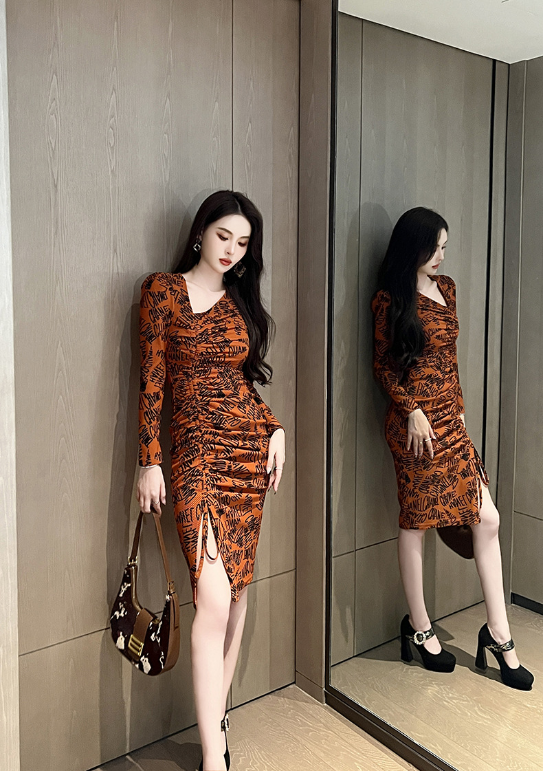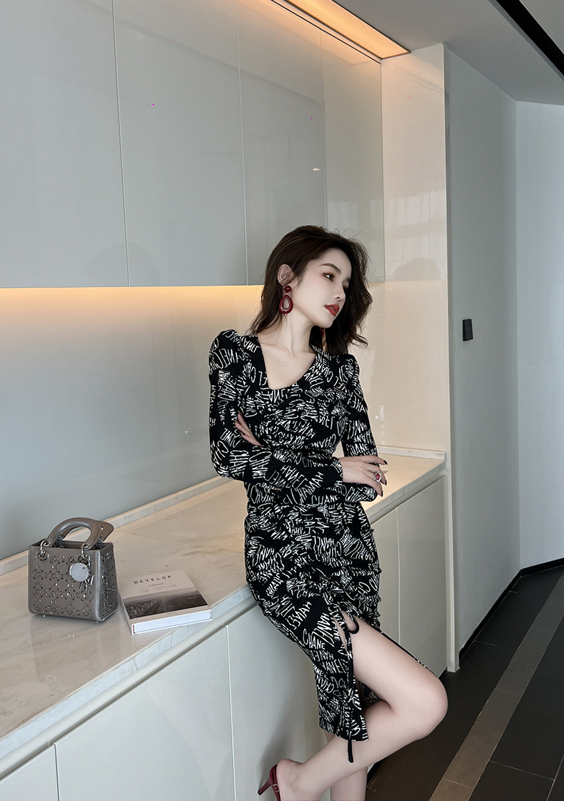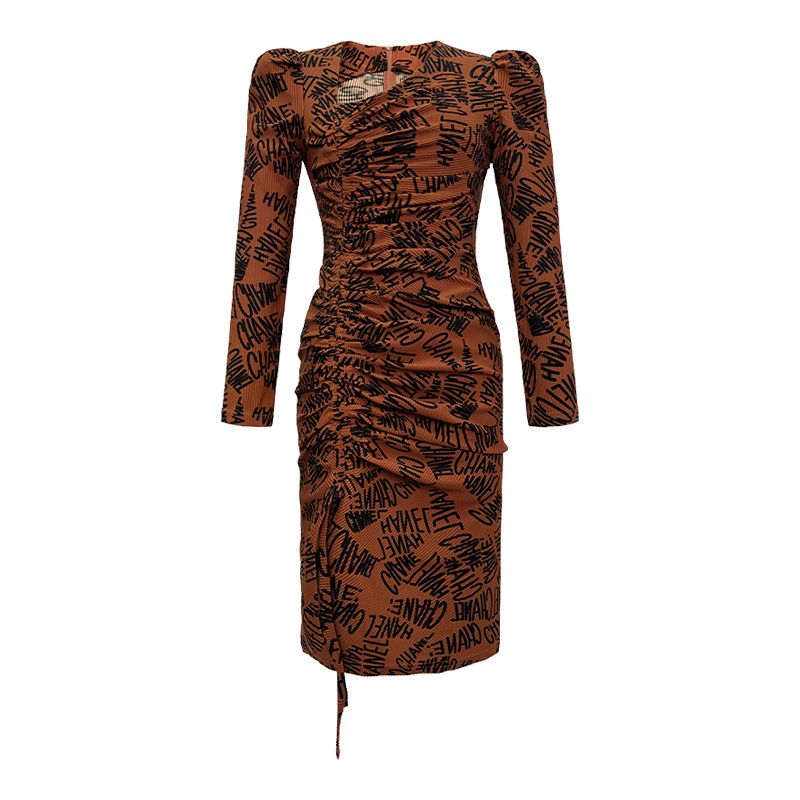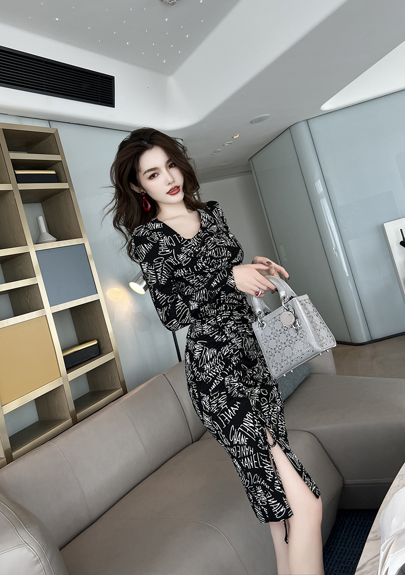 Chiếc váy này có điểm nhấn ở v được khoét lệch tinh tế, kết hợp dây rút điều chỉnh để tạo kiểu. Chất liệu co giãn nhẹ ôm nhẹ vào dáng người. Trên thân váy điểm xuyết những dòng chữ in nổi bật, mang đến vẻ ngoại thời thượng. Sản phẩm phù hợp để mặc trong những dịp gặp gỡ bạn bè hoặc dạo phố. Bạn có thể dễ dàng phối cùng giày thể thao hoặc giày bệt để có phong cách trẻ trung, năng động. | Tên sản phẩm: Váy Đầm Liền Thân Nữ Dáng Ôm Hàng Mùa Xuân Thu Đông - Thời Trang Nữ | Mã sản phẩm: B0794 - Giá: 1.020.000đ | Mã nhà sản xuất: CHDG-G03Hình ảnh sản phẩm