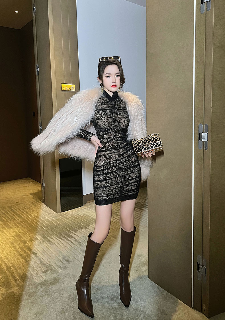 Chiếc đầm dáng ôm body dành cho mùa thu, với phần cổ cao vừa phải tôn dáng cổ. Chất liệu có đường nhún tinh tế cùng điểm nhấn là chi tiết ren mềm mại, tạo nên vẻ đẹp quyến rũ nhưng không kém phần tinh tế. Sản phẩm thích hợp để mặc bên trong, phối cùng áo khoác blazer hoặc cardigan. Dễ dàng phối hợp với giày cao gót hay bốt để hoàn thiện set đồ đi làm hoặc dạo phố. | Tên sản phẩm: Váy Đầm Liền Thân Nữ Chất Liệu Ren Hàng Mùa Xuân Thu Đông - Thời Trang Nữ | Mã sản phẩm: B0798 - Giá: 1.090.000đ | Mã nhà sản xuất: CHDG-G03Hình ảnh sản phẩm