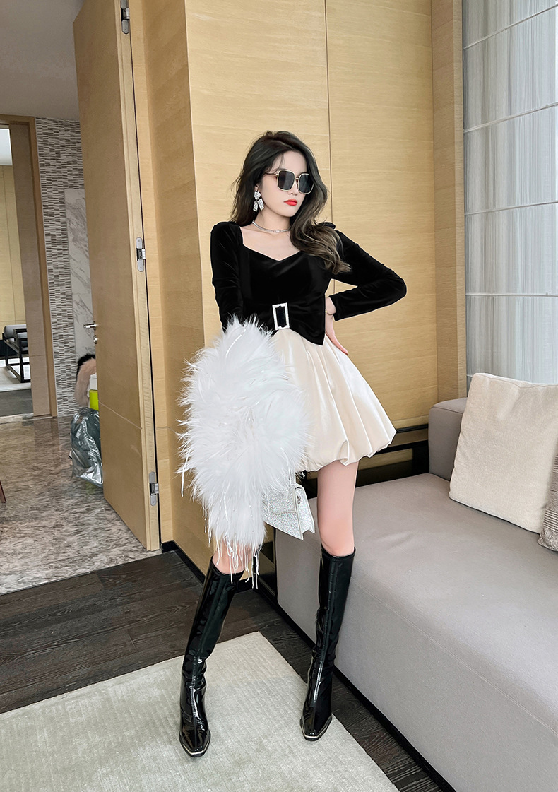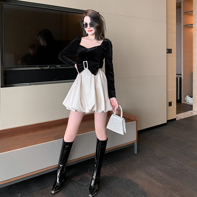 Đầm ngắn kiểu cách với thiết kế cổ vuông tôn dáng. Điểm nhấn là nơ thắt eo làm từ chất liệu vải mềm mại, giúp tôn lên đường nét cơ thể. Phần chân váy xòe nhẹ tạo vẻ duyên dáng, nữ tính. Sản phẩm phù hợp cho nhiều dịp đi chơi, gặp gỡ. Có thể giặt bằng tay và phơi ở nơi thoáng mát để giữ dáng đầm được bền đẹp. | Tên sản phẩm: Váy Đầm Liền Thân Nữ Thắt Nơ Bướm Hàng Mùa Xuân Thu Đông - Thời Trang Nữ | Mã sản phẩm: B0799 - Giá: 1.120.000đ | Mã nhà sản xuất: CHDG-G04Hình ảnh sản phẩm