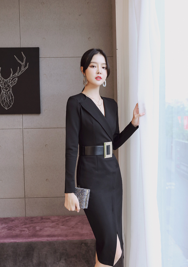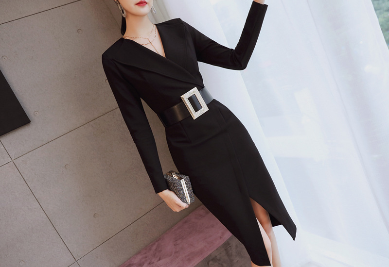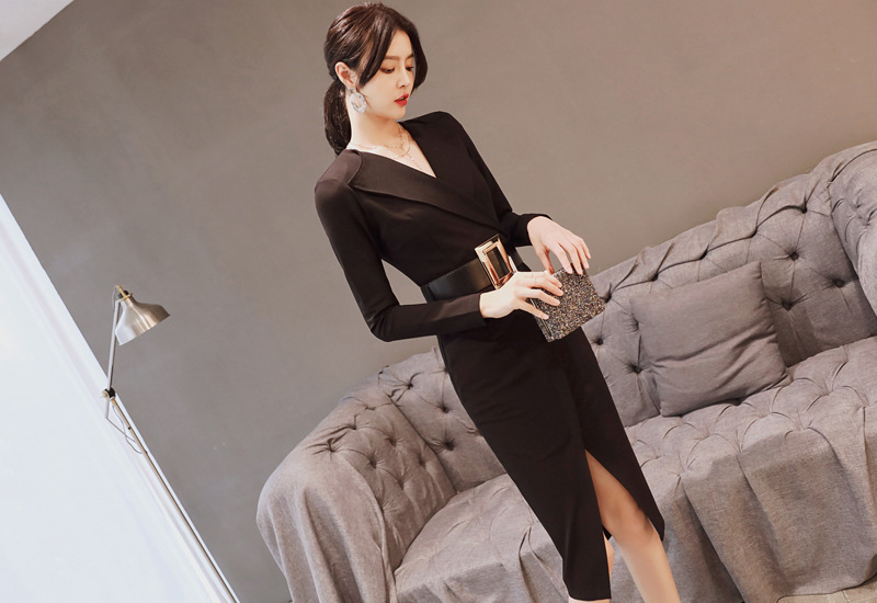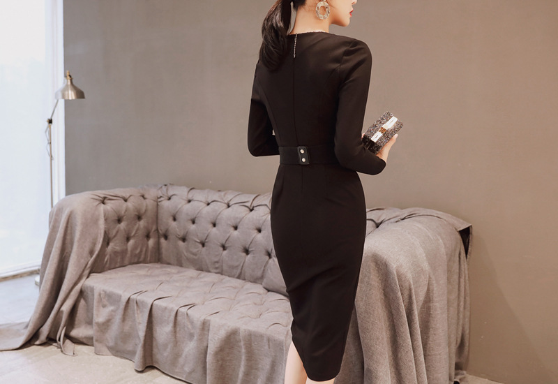 Đầm tay dài màu đen dành cho nữ, kiểu dáng ôn cơ thể với phần cổ khoét chữ V tạo điểm nhấn thanh lịch. Tay áo may vừa vặn, phần tà xẻ nhẹ giúp tôn dáng và dễ dàng di chuyển. Chất vải co giãn nhẹ mang lại sự thoải mái khi mặc cả ngày. Sản phẩm phù hợp cho nhiều dịp sử dụng khác nhau, dễ dàng phối cùng giày cao gót hay giày thể thao. | Tên sản phẩm: Váy Đầm Liền Thân Nữ Dáng Ôm Kín Cổ Hàng Mùa Xuân Thu Đông - Thời Trang Nữ | Mã sản phẩm: B0801 - Giá: 1.130.000đ | Mã nhà sản xuất: CHDG-G04Hình ảnh sản phẩm