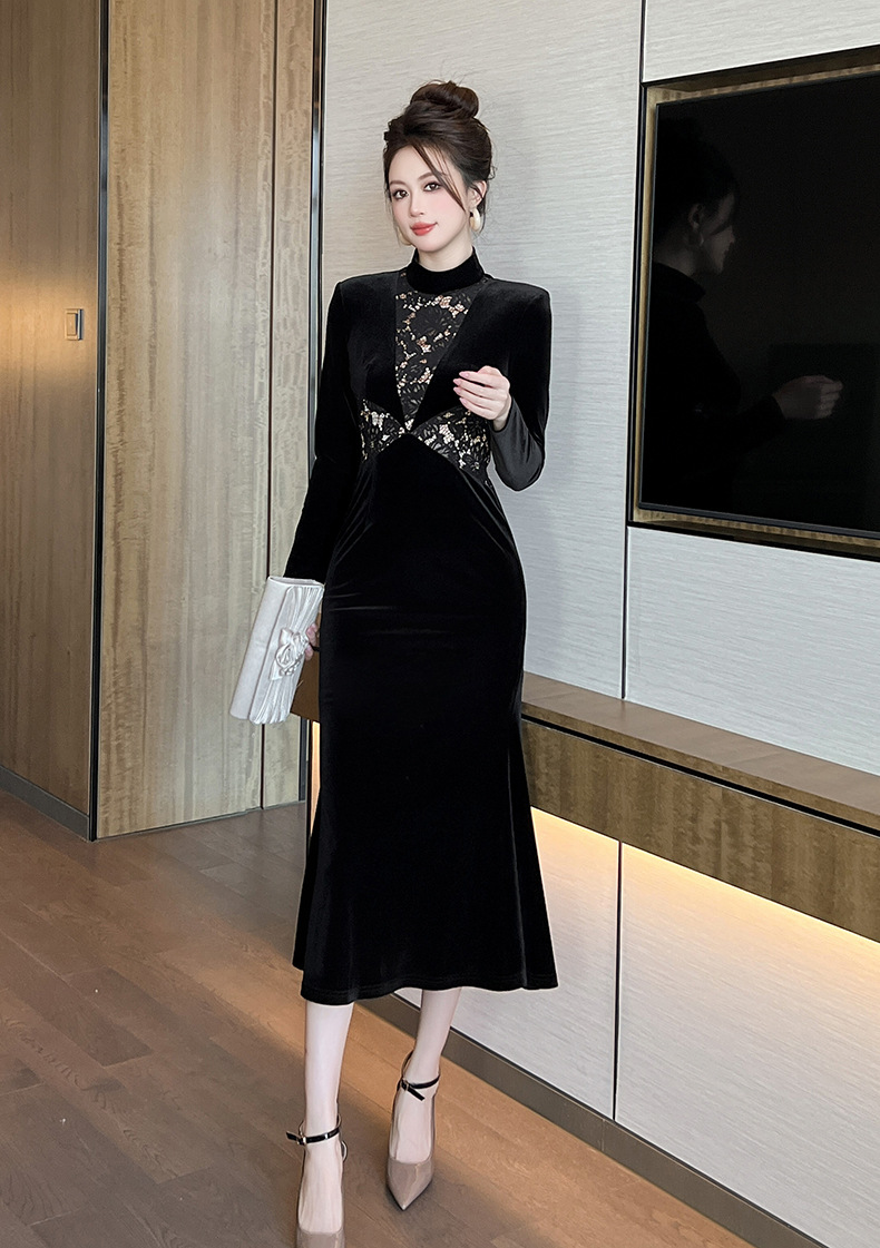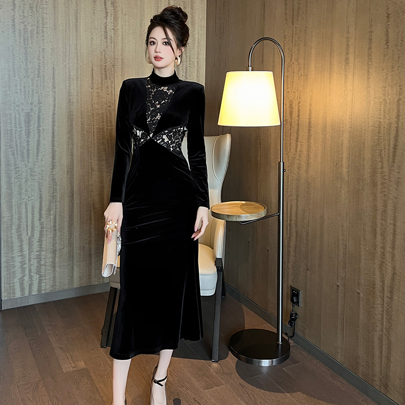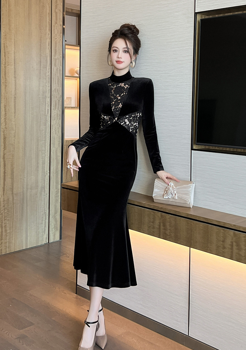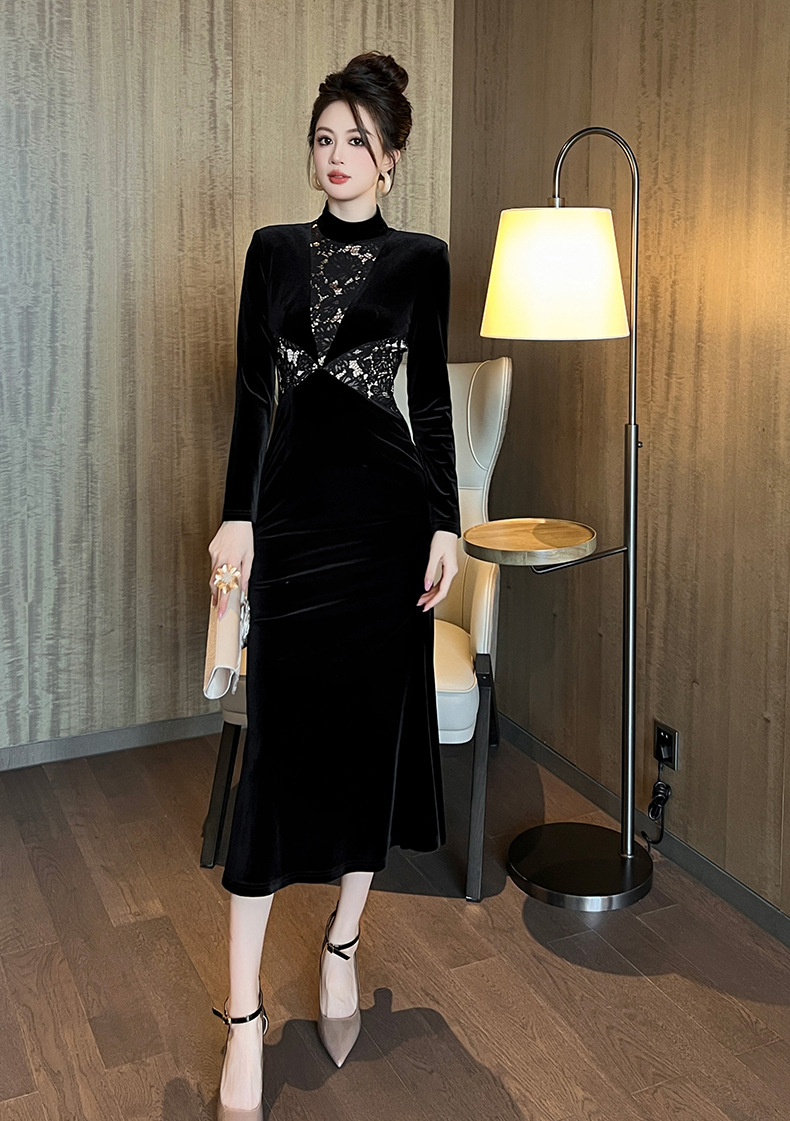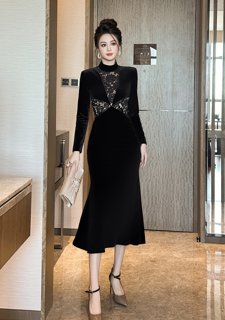 Chiếc đầm dự tiệc này có điểm nhấn là sự kết hợp giữa chất vải mượt và họa tiết ren tinh tế. Thiết kế dáng đuôi cá ôm sáng tạo giúp tôn lên những đường nét cơ thể. Sản phẩm phù hợp cho các buổi họp mặt hoặc sự kiện vào mùa thu. Khi mặc, bạn nên kết hợp cùng những đôi giày có qu mảnh để tăng thêm phần nữ tính. | Tên sản phẩm: Váy Đầm Liền Thân Dự Tiệc Nữ Chất Liệu Ren Kiểu Đuôi Cá Hàng Mùa Xuân Thu Đông - Thời Trang Nữ | Mã sản phẩm: B0802 - Giá: 1.360.000đ | Mã nhà sản xuất: CHDG-G04Hình ảnh sản phẩm