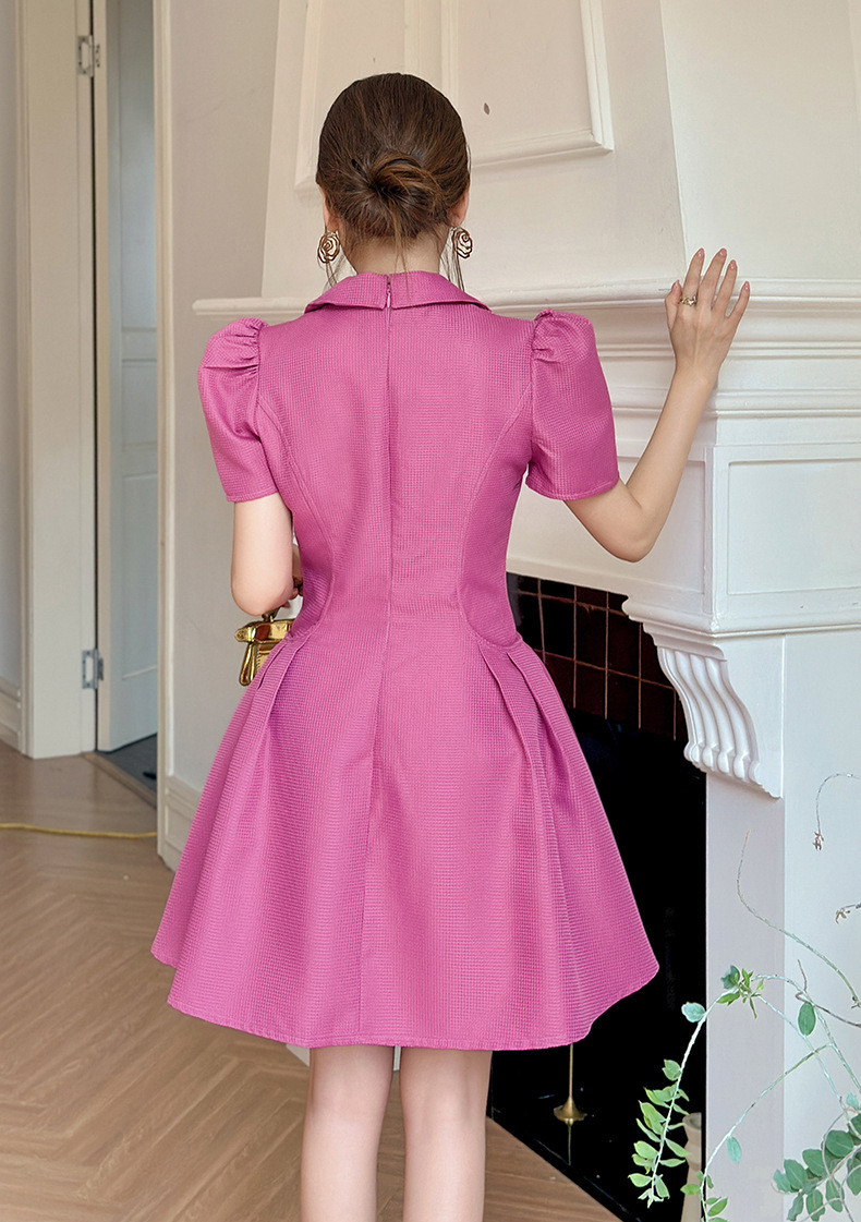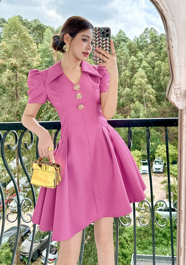 Chiếc đầm tay ngắn cho nữ với màu hồng mâm xôi tươi tắn, giúp làn da thêm phần rạng rỡ. Thiết kế có cổ bẻ và eo ôm tôn lên những đường nét cơ thể. Kiểu dáng mang phong cách thanh lịch, nhẹ nhàng. Sản phẩm phù hợp cho những dịp đi làm, gặp mặt hoặc dạo phố. Bạn có thể phối cùng giày cao gót hoặc giày đế bằng để hoàn thiện bộ trang phục. | Tên sản phẩm: Váy Đầm Liền Thân Nữ Ngắn Tay Kín Cổ Hàng Mùa Xuân Thu Đông - Thời Trang Nữ | Mã sản phẩm: B0811 - Giá: 1.280.000đ | Mã nhà sản xuất: CHDG-G04Hình ảnh sản phẩm