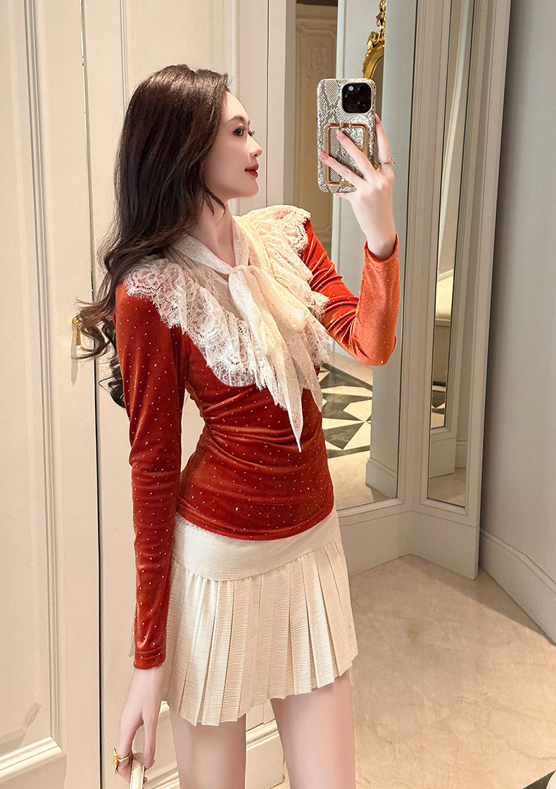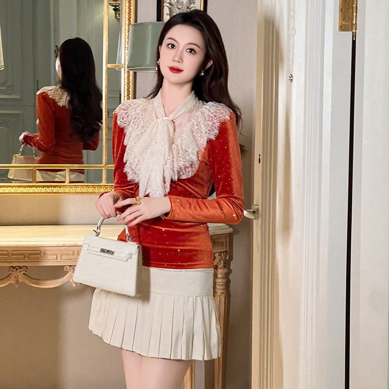 Áo kiểu nữ dáng ôm body, được làm từ chất liệu nhung mềm mại, điểm nhấn là phần kết hợp ren tinh tế cùng nơ trang trí. Thiết kế theo phong cách thanh lịch, giúp tôn dáng một cách tự nhiên. Sản phẩm phù hợp để mặc đi làm, dạo phố hay dự những buổi gặp mặt. Có thể phối cùng quần âu, chân váy để tạo vẻ ngoài chỉn chu và dịu dàng. | Tên sản phẩm: Áo Sơ Mi Nữ Chất Liệu Ren Thắt Nơ Bướm Dáng Ôm Trông Trẻ Hơn Tuổi Hàng Mùa Xuân Thu Đông - Thời Trang Nữ | Mã sản phẩm: B0814 - Giá: 950.000đ | Mã nhà sản xuất: CHDG-G03Hình ảnh sản phẩm
