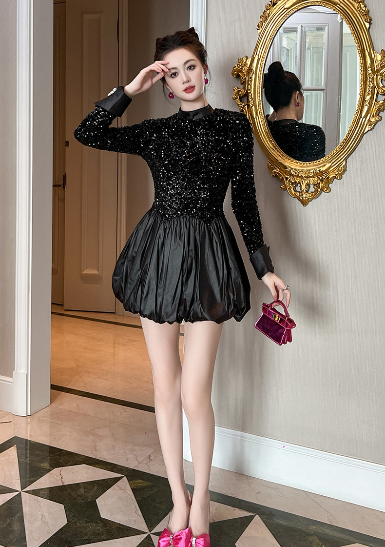 Chiếc đầm dành cho các dịp lễ hội với thiết kế kết hợp nhiều mảnh lấp lánh, tạo điểm nhấn nổi bật. Form đầm ôm eo và xòe nhẹ phần chân váy, mang đến vẻ ngoại hình duyên dáng. Bạn có thể mặc chiếc đầm này để dự tiệc hoặc trong những buổi gặp mặt. Sản phẩm dễ dàng phối cùng giày cao gót và một chiếc túy nhỏ để hoàn thiện bộ trang phục. | Tên sản phẩm: Váy Đầm Liền Thân Nữ Hàng Mùa Xuân Thu Đông - Thời Trang Nữ | Mã sản phẩm: B0822 - Giá: 1.430.000đ | Mã nhà sản xuất: CHDG-G04Hình ảnh sản phẩm