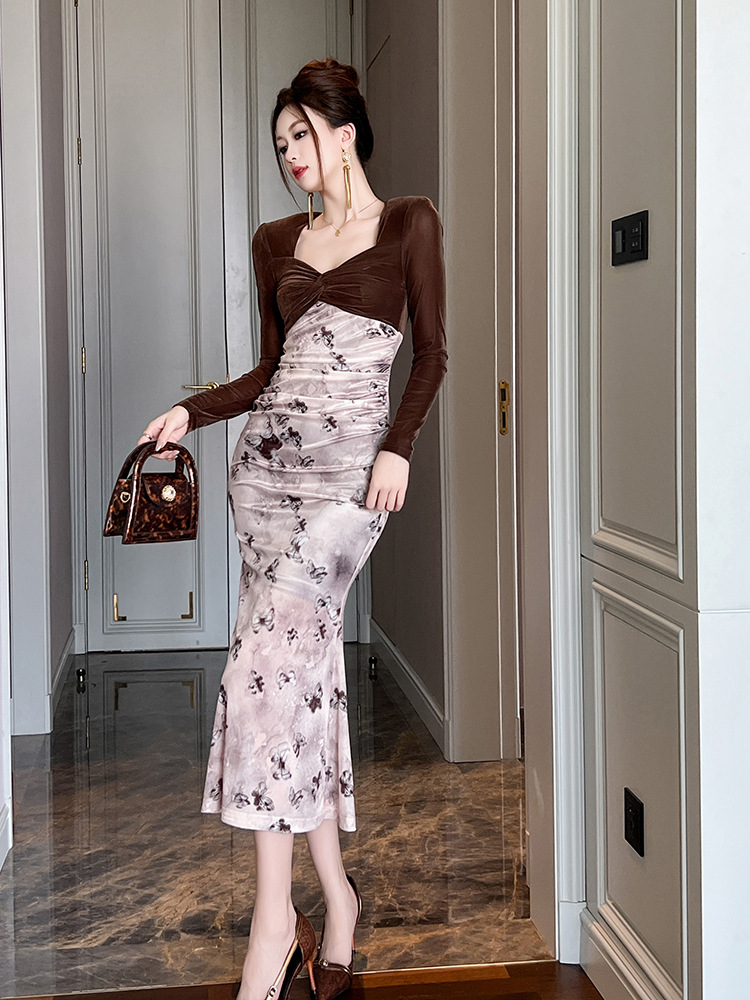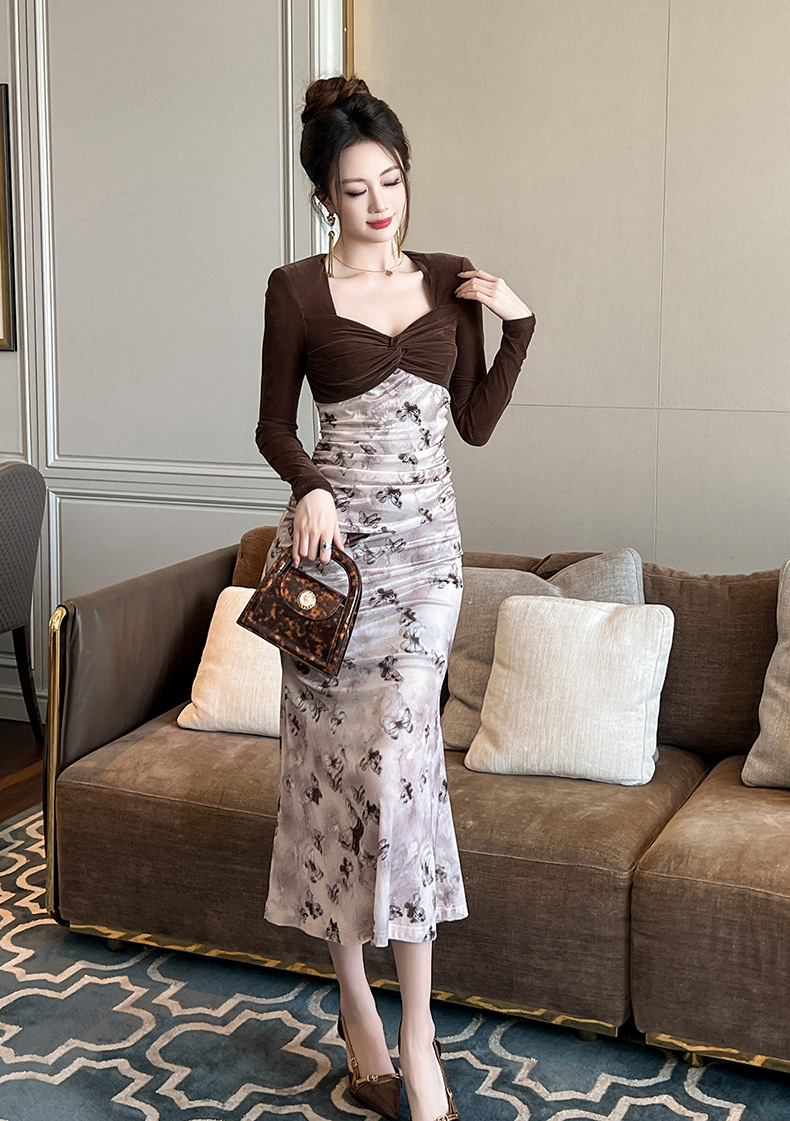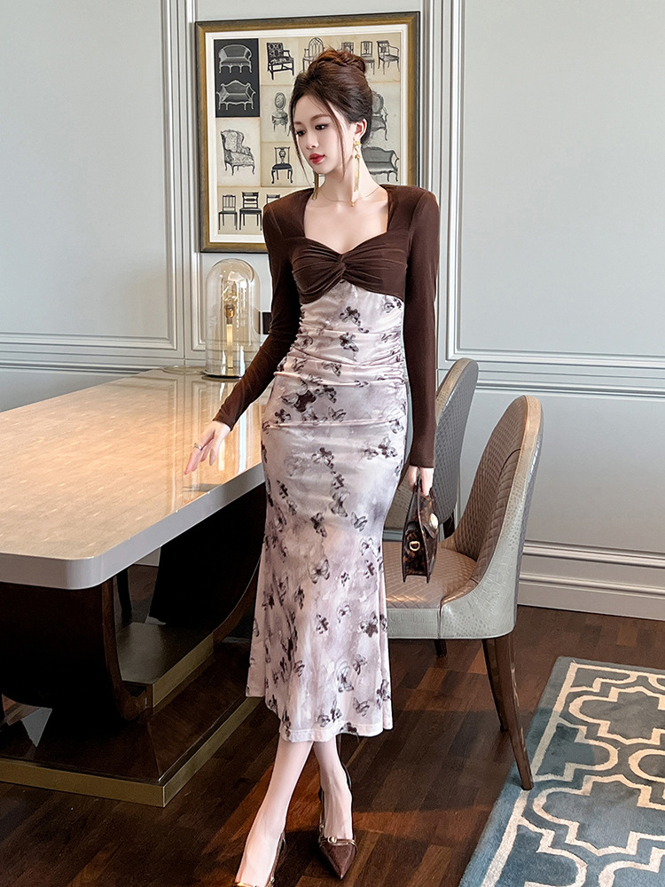 Chiếc váy dáng ôm body này có điểm nhấn từ cổ vuông kiểu cách, mang nét đẹp cổ điển. Chất vải nhung mềm mại với họa tiết in nổi bật, ôm trọn vóc dáng một cách thanh lịch. Sản phẩm thích hợp để mặc trong nhiều dịp, có thể dùng làm váy mặc bên trong hoặc kết hợp cùng áo khoác. Bạn chỉ cần giặt nhẹ và phơi khô tự nhiên để giữ dáng váy được bền đẹp. | Tên sản phẩm: Váy Đầm Liền Thân Nữ Dáng Ôm Họa Tiết Hoa Hàng Mùa Xuân Thu Đông Phục Cổ Cổ Điển - Thời Trang Nữ | Mã sản phẩm: B0824 - Giá: 1.120.000đ | Mã nhà sản xuất: CHDG-G04Hình ảnh sản phẩm