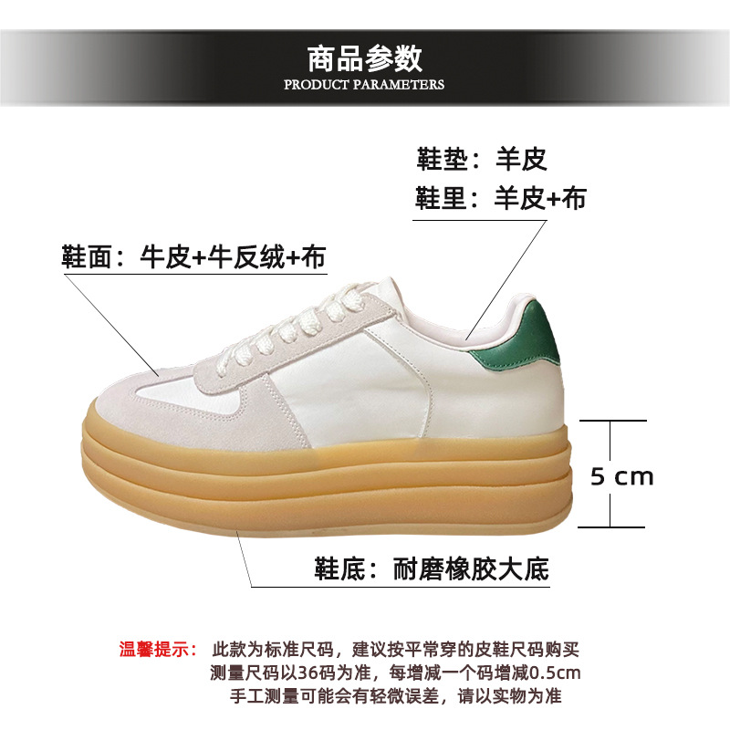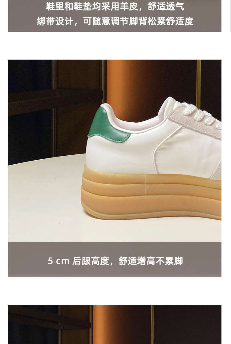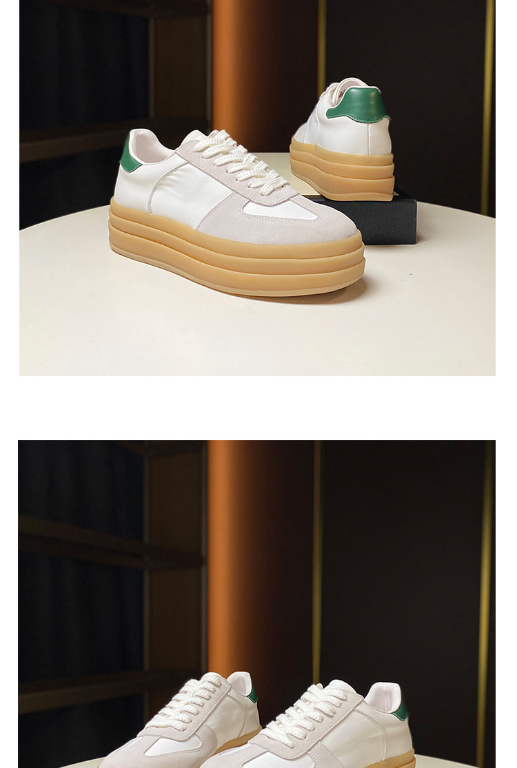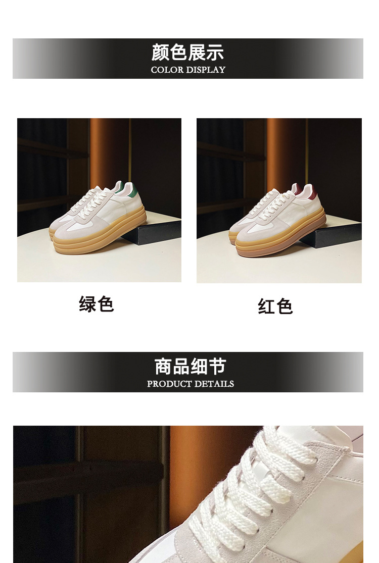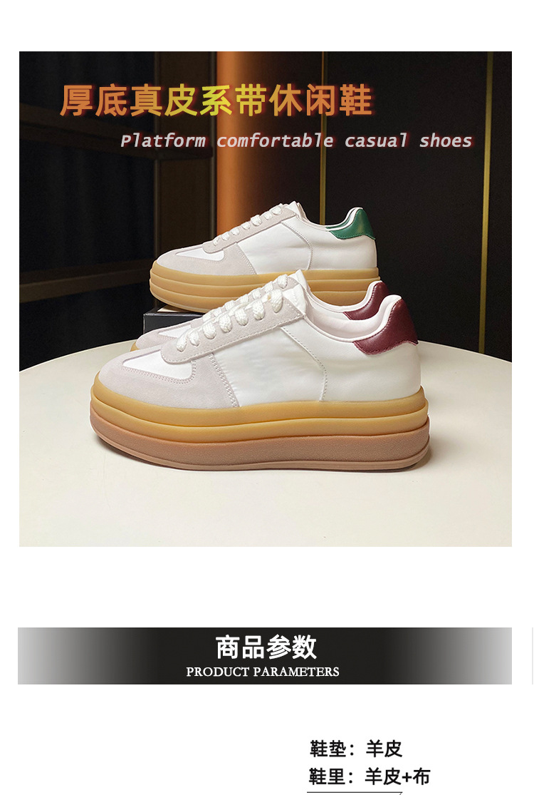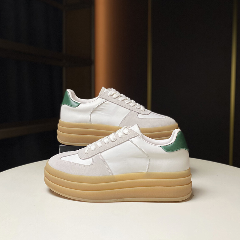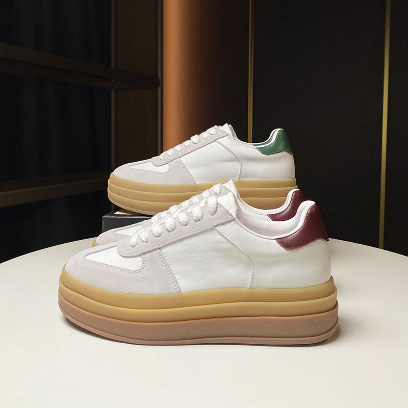 Giày thể thao nữ thiết kế đế dày năm phân, kiểu dáng cổ điển châu Âu phù hợp cho mùa thu. Sản phẩm được làm từ chất liệu da thật, bên trong có lớp lót thoáng khí giúp đôi chân luôn dễ chịu. Đôi giày này dễ dàng kết hợp với nhiều loại trang phục khác nhau như quần jeans hay váy ngắn. Bạn có thể sử dụng hằng ngày cho các hoạt động đi lại, dạo phố hay gặp gỡ bạn bè. | Tên sản phẩm: Giày Thể Thao Nữ Chất Liệu Da Bò Thoáng Khí Đế Cao Hàng Mùa Xuân Thu Đông - Giày Dép Nữ | Mã sản phẩm: B0828 - Giá: 2.160.000đ | Mã nhà sản xuất: GUDT-G05Hình ảnh sản phẩm