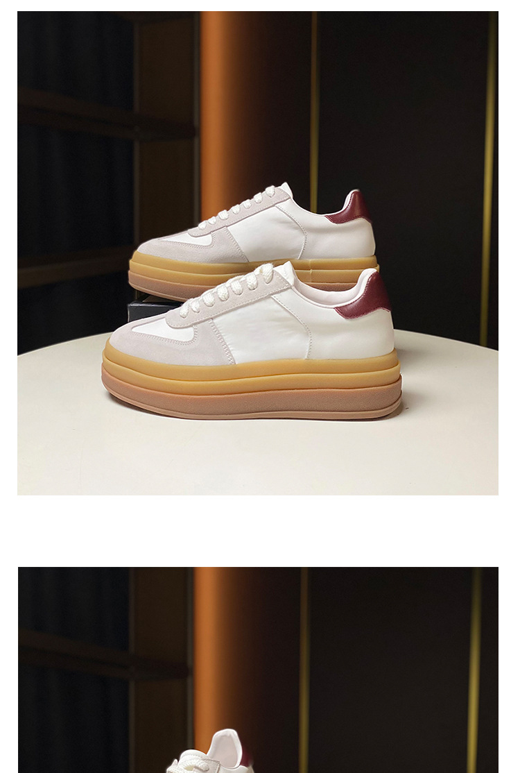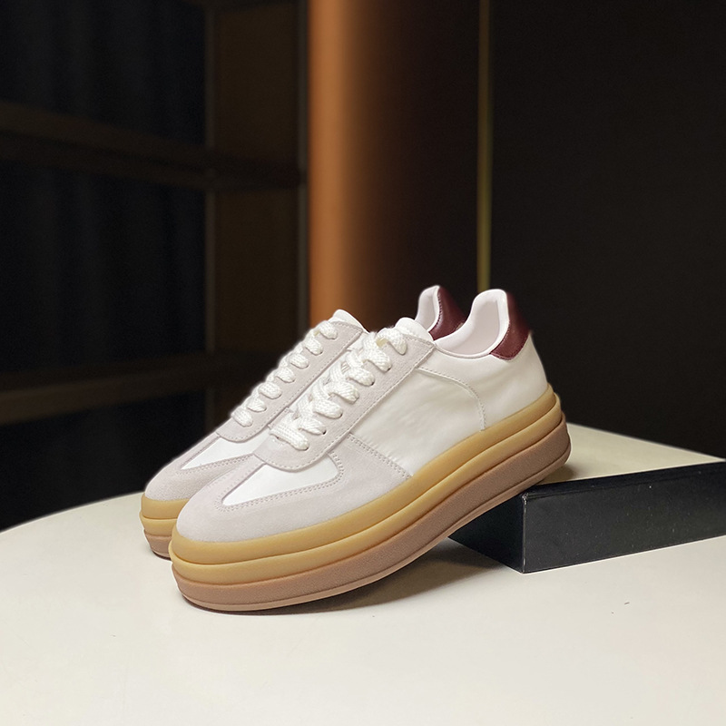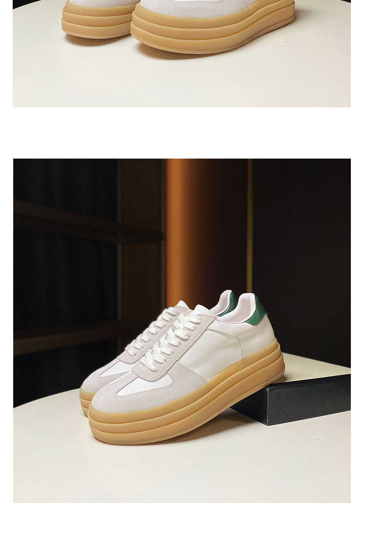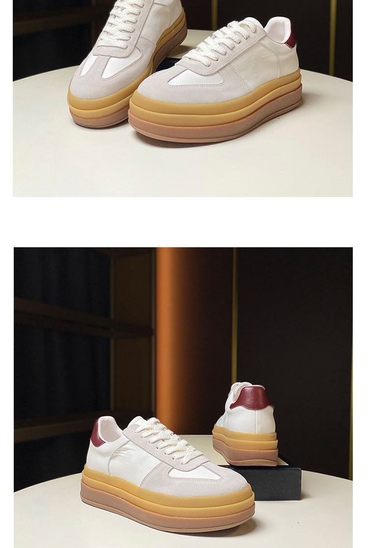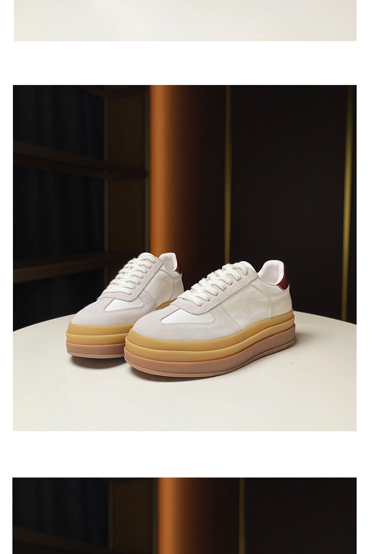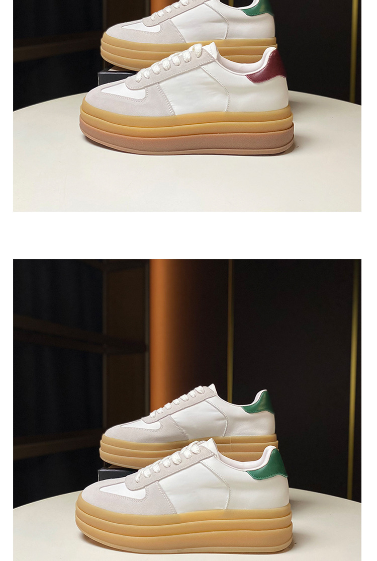 Giày thể thao nữ thiết kế đế dày năm phân, kiểu dáng cổ điển châu Âu phù hợp cho mùa thu. Sản phẩm được làm từ chất liệu da thật, bên trong có lớp lót thoáng khí giúp đôi chân luôn dễ chịu. Đôi giày này dễ dàng kết hợp với nhiều loại trang phục khác nhau như quần jeans hay váy ngắn. Bạn có thể sử dụng hằng ngày cho các hoạt động đi lại, dạo phố hay gặp gỡ bạn bè. | Tên sản phẩm: Giày Thể Thao Nữ Chất Liệu Da Bò Thoáng Khí Đế Cao Hàng Mùa Xuân Thu Đông - Giày Dép Nữ | Mã sản phẩm: B0828 - Giá: 2.160.000đ | Mã nhà sản xuất: GUDT-G05Hình ảnh sản phẩm