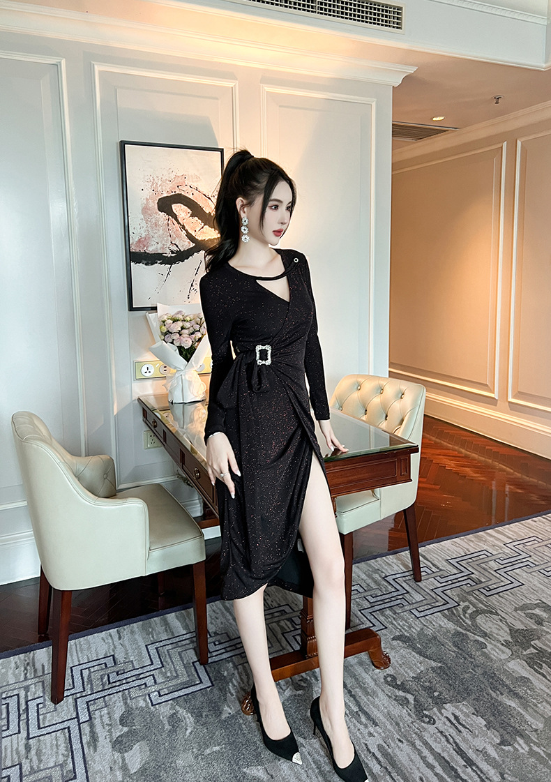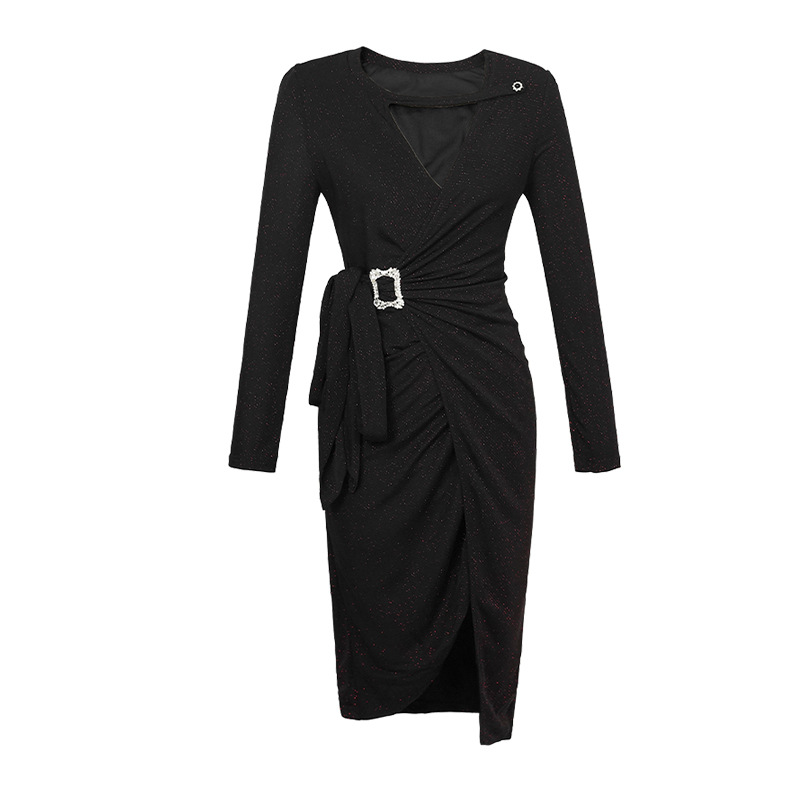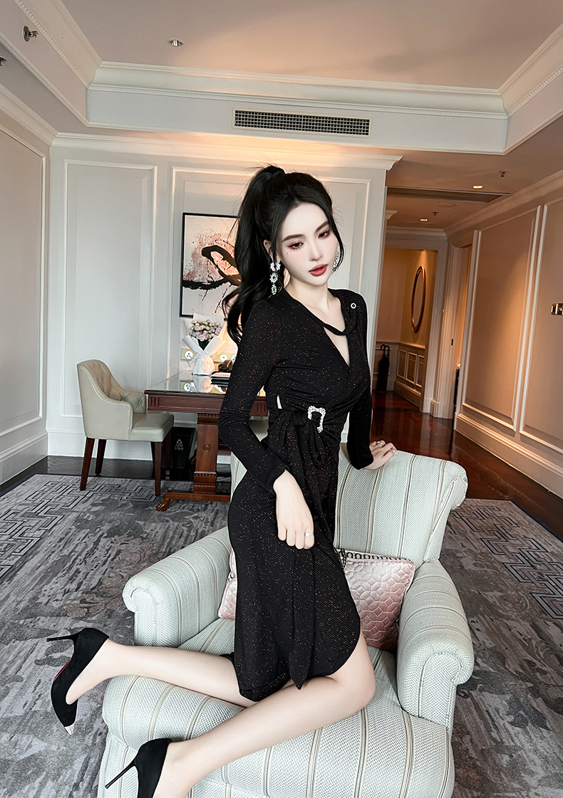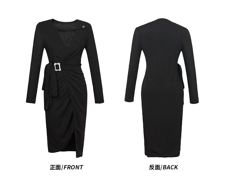 Chiếc váy tay dài màu đen này có điểm nhấn ở phần cổ khoét hình chữ V, tạo nên nét thanh lịch riêng. Thiết kế không theo quy tắc thông thường với đường cắt xẻ tinh tế, giúp tôn lên những đường nét cơ thể một cách dịu dàng. Chất vải mềm mại mang đến sự dễ chịu khi mặc cả ngày. Sản phẩm phù hợp để mặc đi làm hoặc dự những buổi gặp mặt. Bạn có thể phối cùng giày cao gót và túi xách nhỏ để hoàn thiện bộ trang phục. | Tên sản phẩm: Váy Đầm Liền Thân Nữ Dài Tay Cổ Chữ V Hàng Mùa Xuân Thu Đông - Thời Trang Nữ | Mã sản phẩm: B0839 - Giá: 1.190.000đ | Mã nhà sản xuất: CHDG-G04Hình ảnh sản phẩm