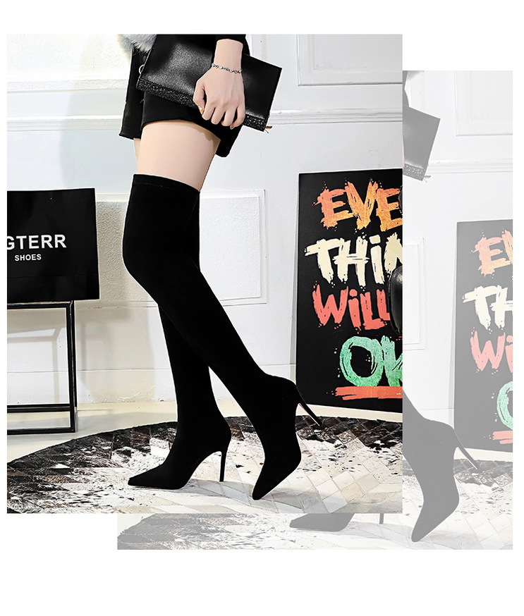 Đôi bốt dáng dài qua gối, kiểu cách thời trang châu Âu Mỹ đơn giản mà tinh tế. Chất liệu da lộn mềm mại giữ ấm tốt, phù hợp cho mùa đông. Phần gót nhọn và cao tạo dáng thanh thoát, giúp tôn lên đường nét cơ thể. Kiểu dáng này dễ phối đồ, có thể mang khi đi chơi hoặc dự tiệc. Bạn chỉ cần xỏ chân vào, kéo khóa phía sau là đã sẵn sàng diện một phong cách quyến rũ và ấm áp. | Tên sản phẩm: Boot Cổ Cao Nữ Cổ Cao Qua Gối Gót Nhọn Hàng Mùa Xuân Thu Đông Phong Cách Âu Mỹ - Giày Dép Nữ | Mã sản phẩm: B0870 - Giá: 980.000đ | Mã nhà sản xuất: PITYIN-G03Hình ảnh sản phẩm