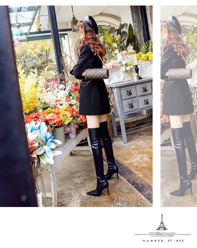 Đôi bốt cao cổ này mang phong cách châu Âu hiện đại với kiểu dáng đơn giản nhưng quyến rũ. Thiết kế có mũi nhọn, gót thanh và cao, ôm sát bàn chân giúp tôn dáng đôi chân thon thả. Sản phẩm phù hợp để đi trong mùa đông hoặc dùng khi đến các buổi tiệc tối. Bạn có thể kết hợp bốt cùng váy ngắn hoặc quần legging bó để tạo điểm nhấn thời trang cho set đồ của mình. | Tên sản phẩm: Boot Cổ Cao Nữ Cổ Cao Qua Gối Mũi Nhọn Gót Nhọn Hàng Mùa Xuân Thu Đông Phong Cách Âu Mỹ - Giày Dép Nữ | Mã sản phẩm: B0875 - Giá: 980.000đ | Mã nhà sản xuất: PITYIN-G03Hình ảnh sản phẩm