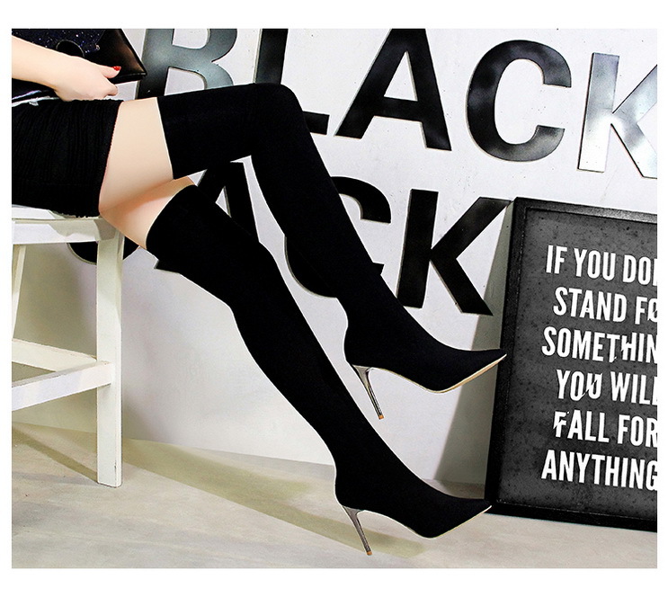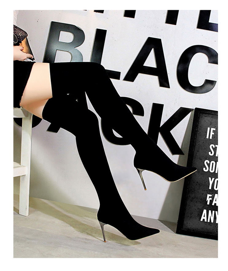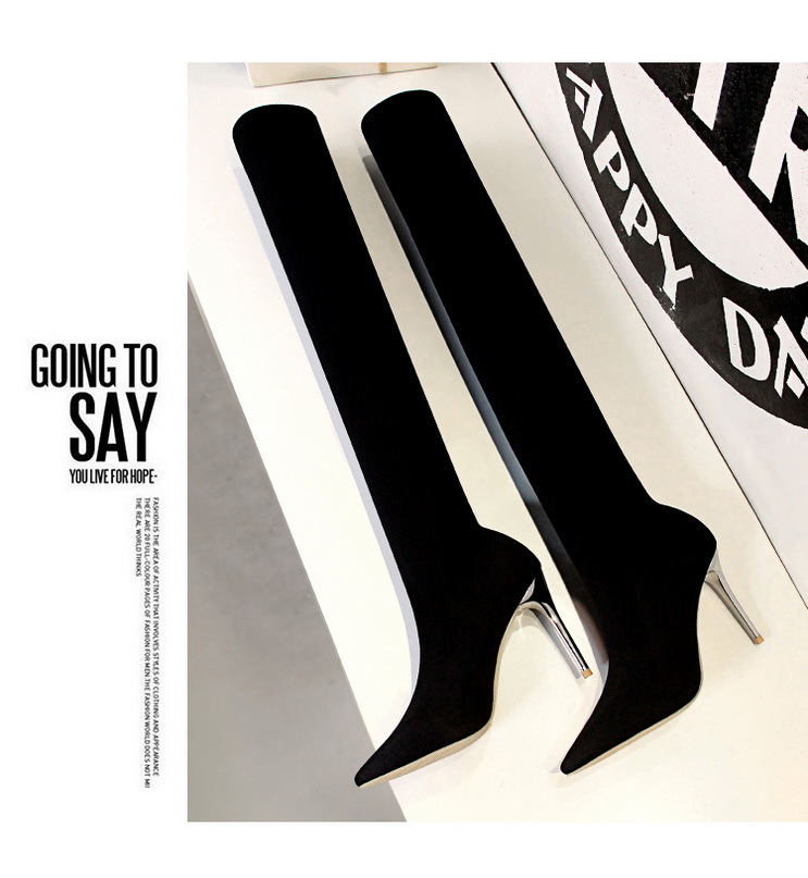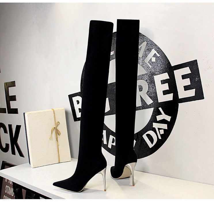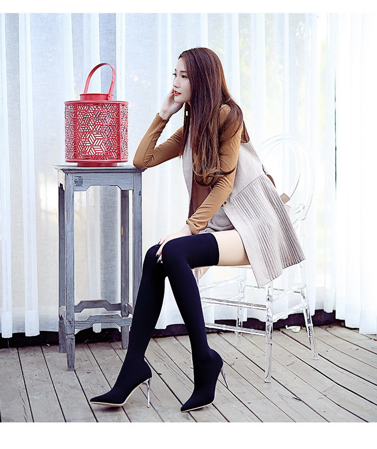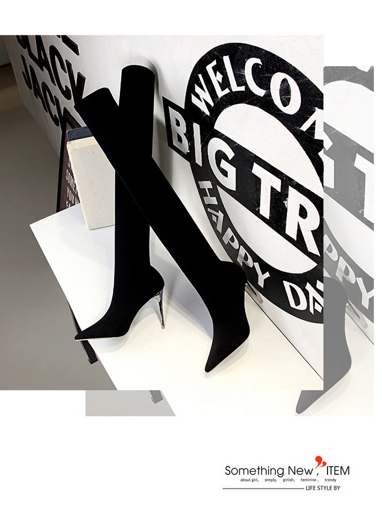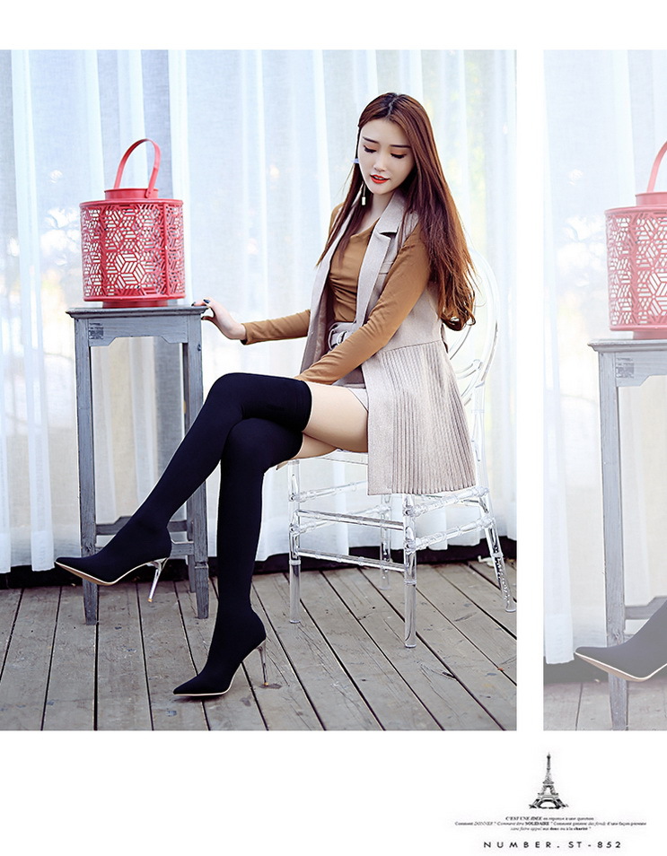 Đôi bốt dành cho nữ với kiểu dáng ôm chân dài qua gối, tạo điểm nhấn với phần mũi nhọn và gót thanhai mảnh. Chất liệu co giãn như vớ mang lại cảm giác vừa vặn và thoải mái khi di chuyển. Kiểu thiết kế này phù hợp để phối cùng nhiều trang phục khác nhau. Sản phẩm dễ dàng sử dụng, chỉ cần xỏ chân vào và kéo nhẹ ống bốt lên là hoàn tất. | Tên sản phẩm: Boot Cổ Cao Nữ Cổ Cao Qua Gối Mũi Nhọn Gót Nhọn Phong Cách Âu Mỹ - Giày Dép Nữ | Mã sản phẩm: B0884 - Giá: 870.000đ | Mã nhà sản xuất: PITYIN-G03Hình ảnh sản phẩm