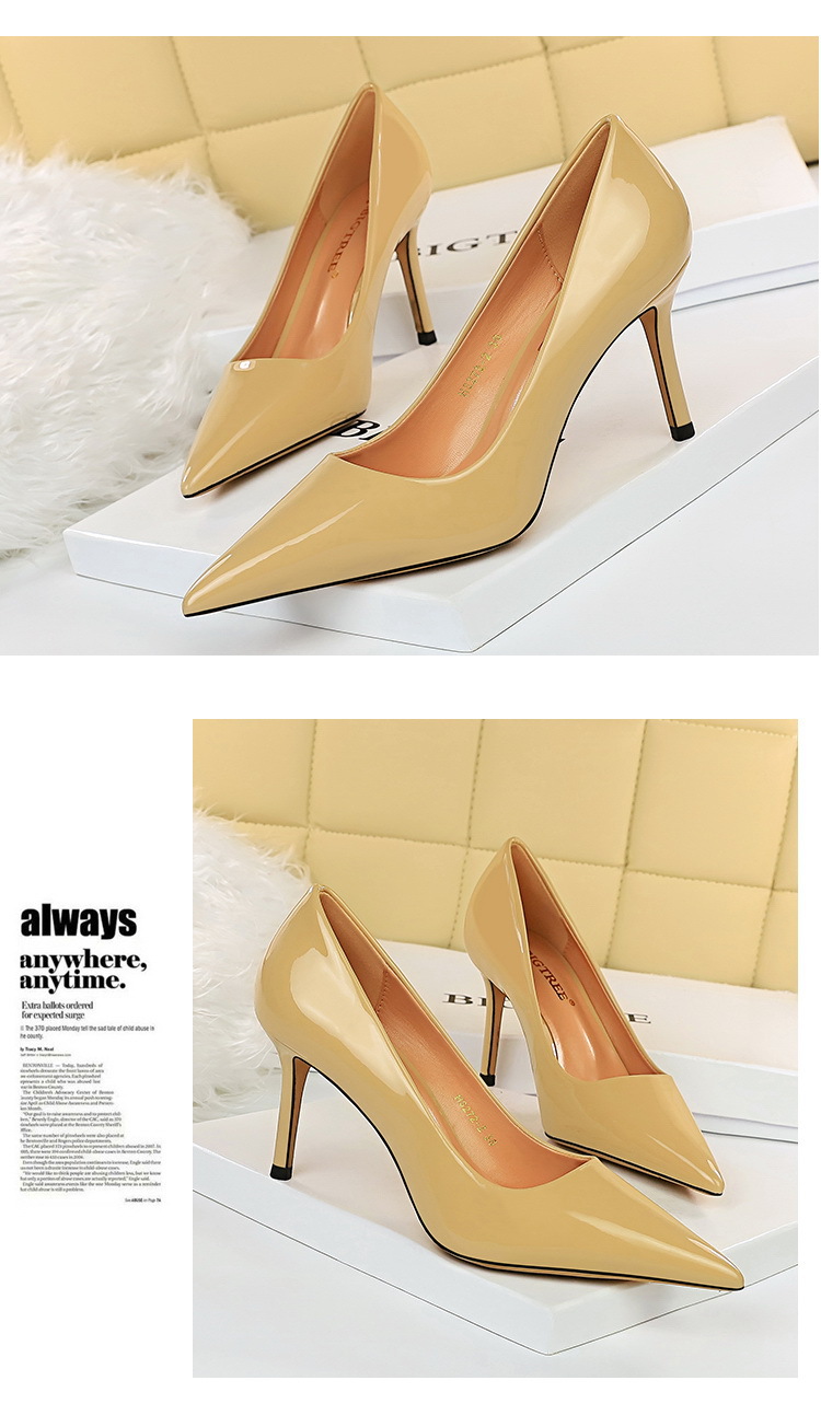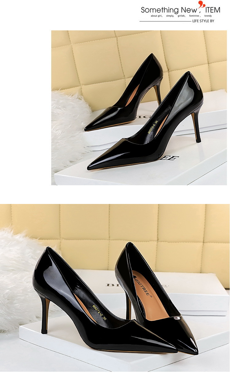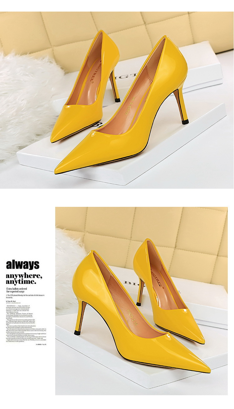 Đôi giày này mang phong cách châu Âu hiện đại với kiểu dáng đơn giản. Phần mũi nhọn và cổ giày thấp tạo nên vẻ thanh thoát. Chất liệu bóng mịn giúp đôi chân thêm phần nổi bật. Đế cao vừa phải hỗ trợ tăng chiều cao một cách tự nhiên, phù hợp cho môi trường công sở. Bạn có thể dễ dàng kết hợp với quần tây, chân váy để tạo vẻ chỉn chu khi làm việc. | Tên sản phẩm: Giày Cao Gót Nữ Mũi Nhọn Phong Cách Âu Mỹ Đồ Công Sở - Giày Dép Nữ | Mã sản phẩm: B0897 - Giá: 590.000đ | Mã nhà sản xuất: PITYIN-G01Hình ảnh sản phẩm