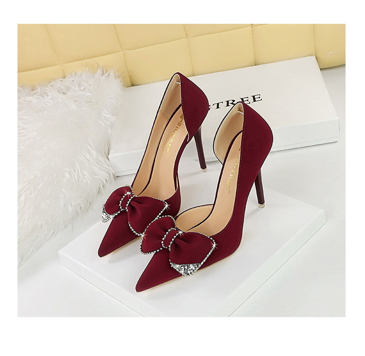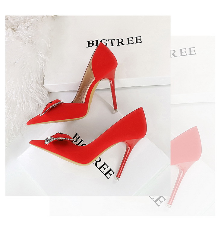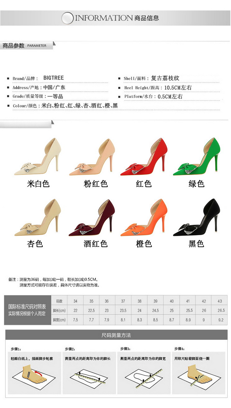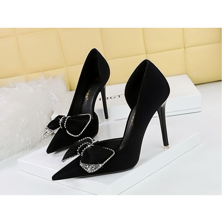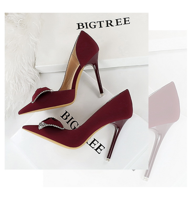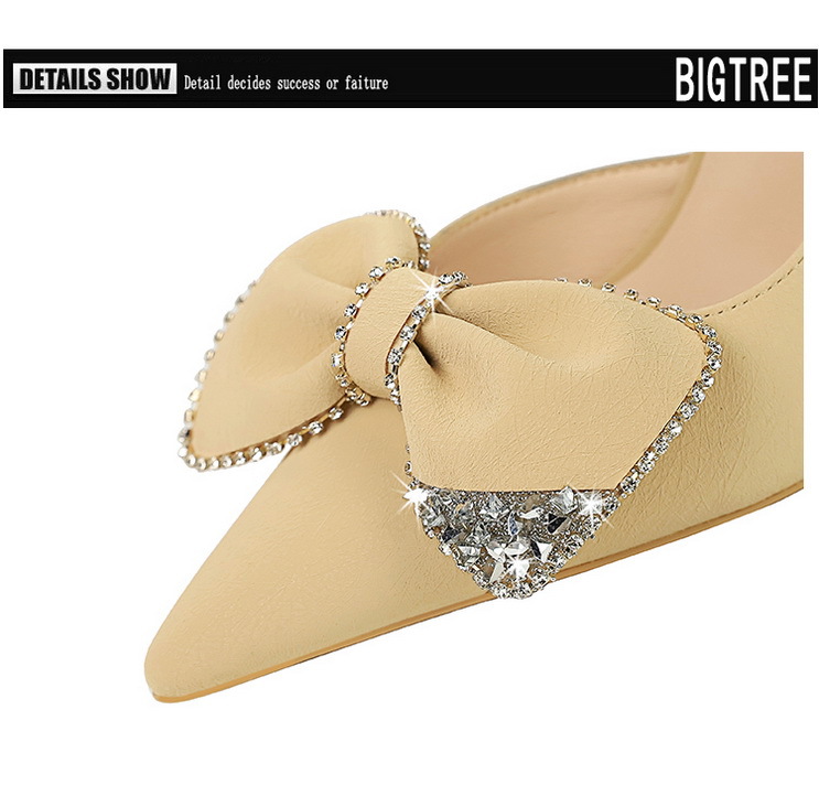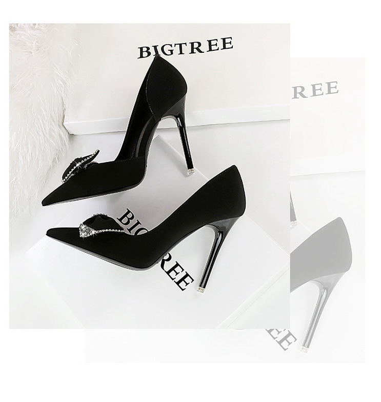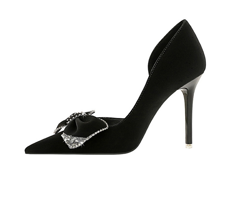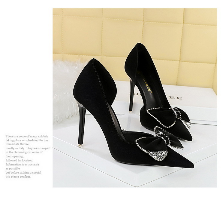 Đôi giày này có phần mũi nhọn và gót rất cao, tạo dáng thanh thoát. Kiểu dáng theo xu hướng hiện đại với điểm nhấn là chi tiết nơ kết hợp đá lấp lánh ở bên hông, cùng phần khoét nhẹ tạo nét duyên dáng. Chất liệu mềm mại, mang lại cảm giác dễ chịu. Bạn có thể phối cùng nhiều trang phục như váy, quần âu để đi làm, dự tiệc hoặc gặp mặt. | Tên sản phẩm: Giày Cao Gót Nữ Thắt Nơ Bướm Gắn Đá Mũi Nhọn Gót Nhọn Phong Cách Hàn Quốc - Giày Dép Nữ | Mã sản phẩm: B0902 - Giá: 700.000đ | Mã nhà sản xuất: PITYIN-G02Hình ảnh sản phẩm