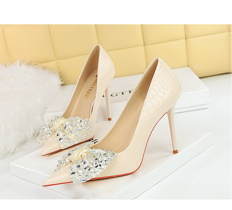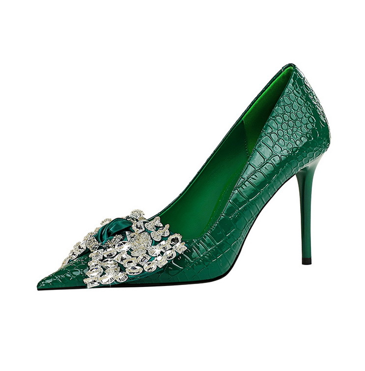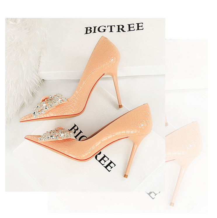 Đôi giày này có kiểu dáng mũi nhọn và gót siêu cao, tạo nên điểm nhấn thanh lịch. Phần nơ kết hợp đá lấp lánh ở mu bàn chân giúp tăng thêm nét duyên dáng. Kiểu dáng cổ rộng ôm vừa vặn bàn chân, mang đến sự thoải mái khi di chuyển. Sản phẩm phù hợp để mang trong các buổi tiệc hoặc sự kiện. Bạn có thể phối cùng đầm hoặc quần tây để có vẻ ngoài chỉn chu. | Tên sản phẩm: Giày Cao Gót Nữ Thắt Nơ Bướm Gắn Đá Mũi Nhọn Gót Nhọn Phong Cách Hàn Quốc - Giày Dép Nữ | Mã sản phẩm: B0913 - Giá: 750.000đ | Mã nhà sản xuất: PITYIN-G02Hình ảnh sản phẩm