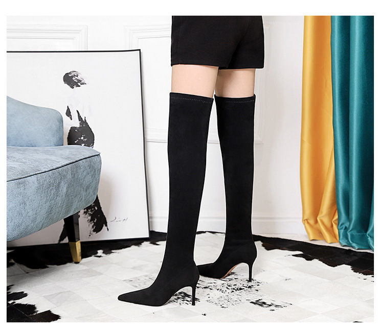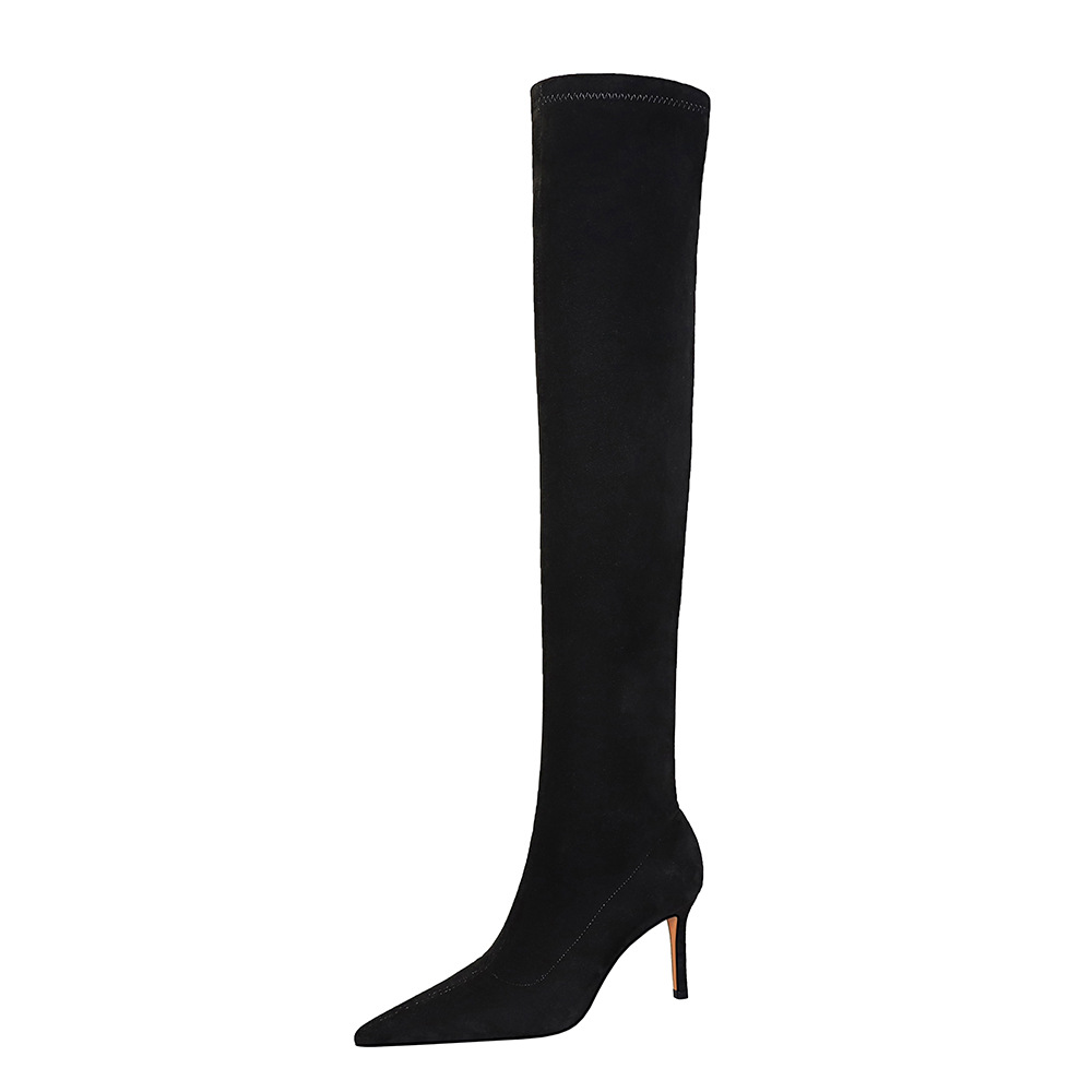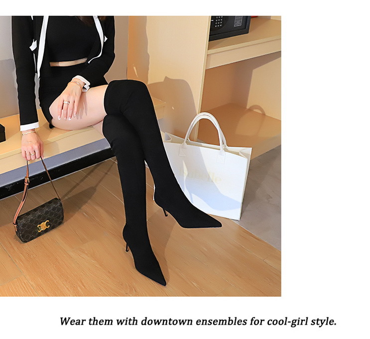 Đôi bốt cổ cao này có phần mũi nhọn và gót thanh mảnh, tạo nên điểm nhấn nổi bật. Kiểu dáng ôm chân giúp tôn lên đường nét cơ thể một cách tự nhiên. Chất liệu da lộn mềm mại mang lại cảm giác dễ chịu khi mang. Sản phẩm phù hợp để phối cùng nhiều trang phục khác nhau trong mùa lạnh. Bạn có thể sử dụng hàng ngày cho những dịp đi làm, gặp gỡ hay dạo phố. | Tên sản phẩm: Boot Cổ Cao Nữ Cổ Cao Qua Gối Mũi Nhọn Gót Nhọn Hàng Mùa Xuân Thu Đông Phong Cách Âu Mỹ - Giày Dép Nữ | Mã sản phẩm: B0951 - Giá: 980.000đ | Mã nhà sản xuất: PITYIN-G03Hình ảnh sản phẩm