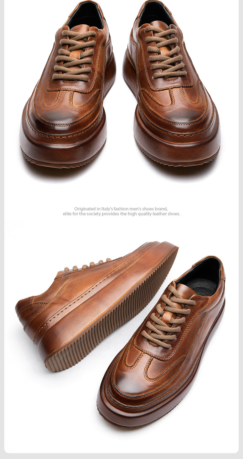 Đôi giày da thật dành cho nam, phù hợp cho cả công sở và dạo phố. Kiểu dáng mang hơi hướng cổ điển châu Âu, với phần đế được làm dày một cách vừa phải, giúp tăng chiều cao nhẹ nhàng. Sản phẩm được làm thủ công tỉ mỉ từ chất liệu da bò mềm mại, đảm bảo độ bền và thoải khí. Bạn có thể dễ dàng phối cùng quần âu hoặc quần jeans trong những ngày thu đông. | Tên sản phẩm: Giày Da Nam Chất Liệu Da Bò Tăng Chiều Cao Đế Cao Hàng Mùa Xuân Thu Đông Phục Cổ Cổ Điển - Giày Dép Nam | Mã sản phẩm: B0957 - Giá: 2.860.000đ | Mã nhà sản xuất: SHDT-G06Hình ảnh sản phẩm