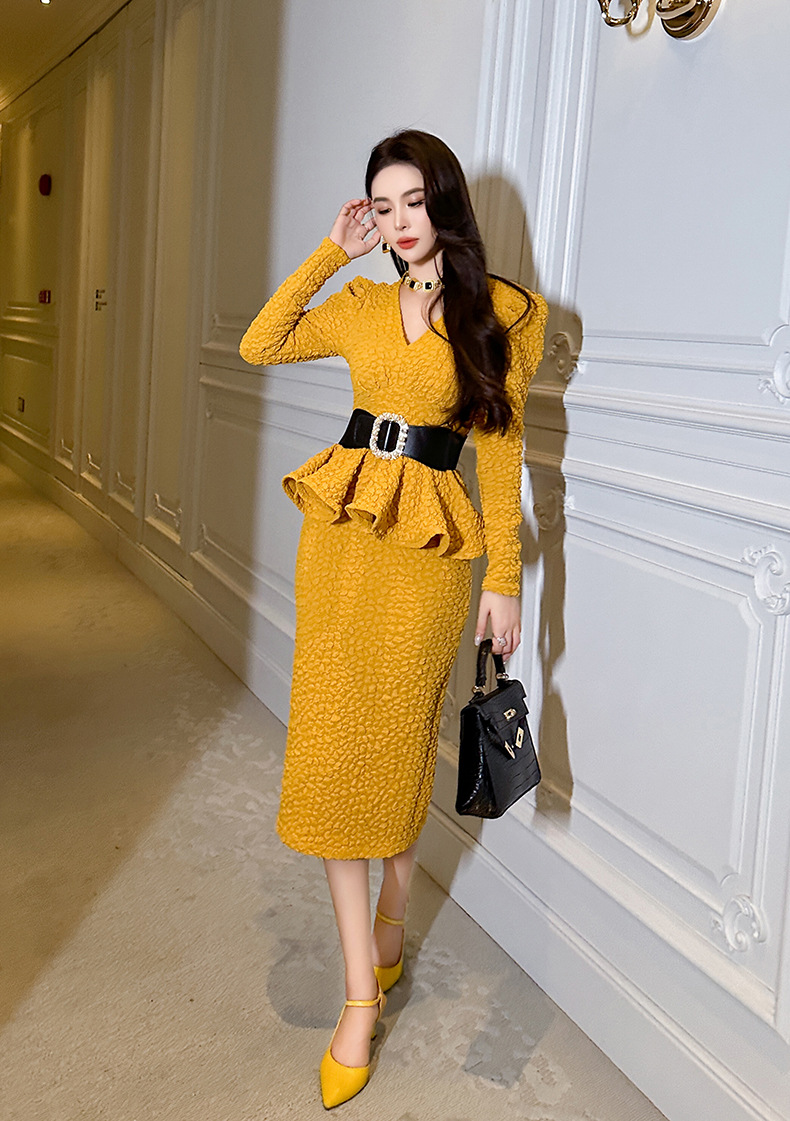 Chiếc áo dài tay này là lựa chọn tuyệt vời cho các cô gái khi thời tiết se lạnh. Thiết kế có phần cổ chữ V tạo cảm giác thanh thoát, kết hợp cùng đường viền tà áo mềm mại như cánh sen, giúp tôn lên những đường nét cơ thể. Điểm nhấn là phần eo được may ôn nhẹ để tạo dáng. Bạn có thể mặc chiếc đầm này khi đi làm, đi chơi hay dự những buổi gặp mặt thân mật. | Tên sản phẩm: Váy Đầm Liền Thân Nữ Dài Tay Cổ Chữ V Hàng Mùa Xuân Thu Đông - Thời Trang Nữ | Mã sản phẩm: B0968 - Giá: 1.220.000đ | Mã nhà sản xuất: CHDG-G04Hình ảnh sản phẩm