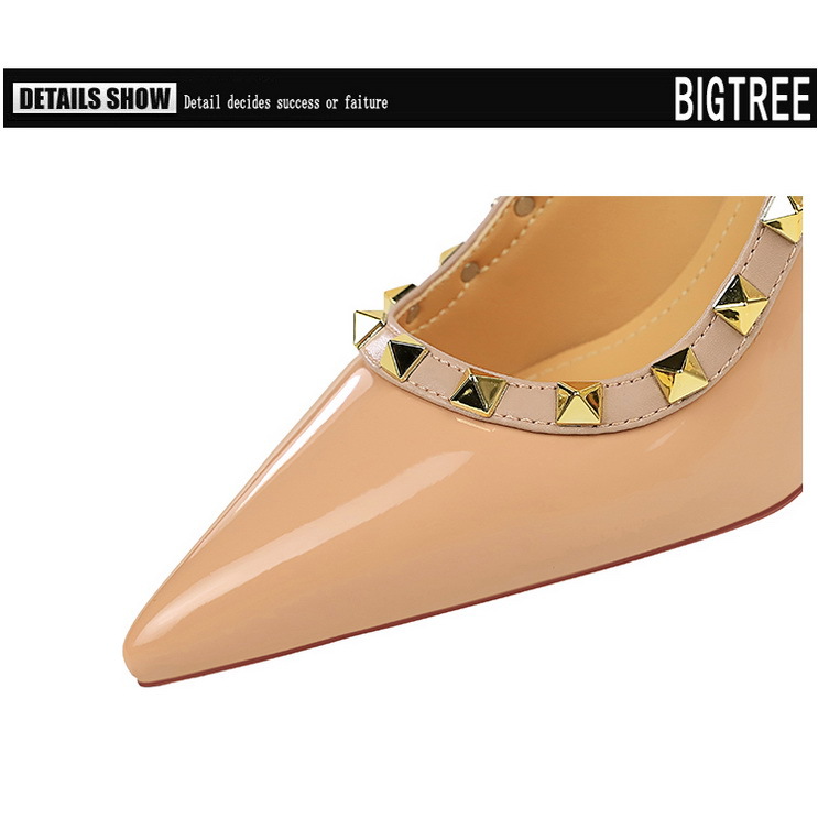 Đôi giày này mang phong cách châu Âu hiện đại, phù hợp cho các buổi tiệc. Kiểu dáng hở mũi cùng phần qu hậu hình chữ nhật tạo điểm nhấn tinh tế. Chất liệu da bóng kết hợp đinh tán cá tính ở phần gót. Gót nhọn siêu cao giúp tôn dáng tối đa. Chỉ cần quàng dây qua cổ chân và cài khóa là đã sẵn sàng diện cùng đầm dạ hội. | Tên sản phẩm: Giày Cao Gót Nữ Gót Nhọn Phong Cách Âu Mỹ - Giày Dép Nữ | Mã sản phẩm: B1021 - Giá: 640.000đ | Mã nhà sản xuất: PITYIN-G02Hình ảnh sản phẩm