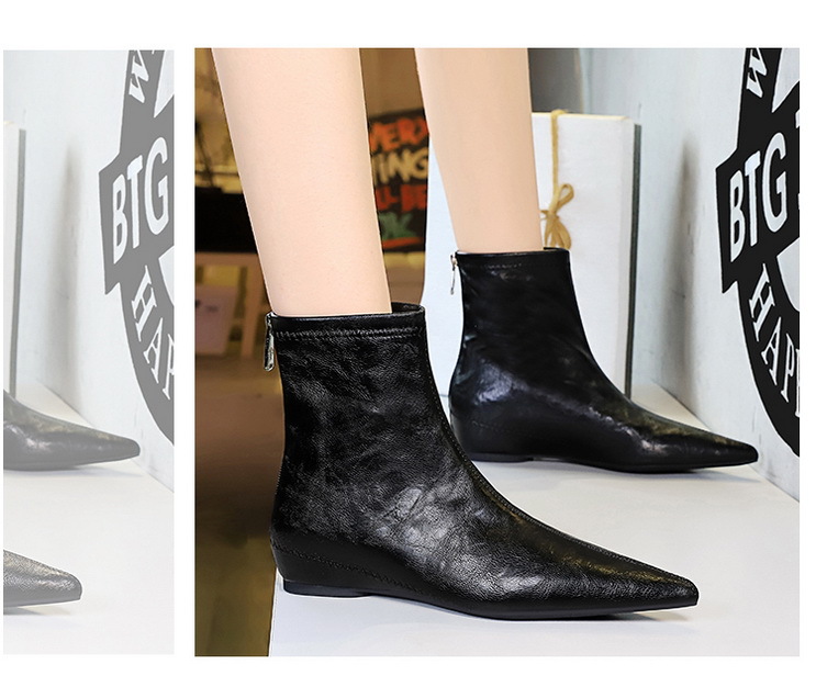 Đôi bốt cổ ngắn này mang phong cách hoài cổ, dễ dàng phối hợp với nhiều trang phục. Sản phẩm có phần đế thấp vừa phải, kiểu dáng đế xuồng giúp tạo dáng thanh thoát và tăng chiều cao một cách tinh tế. Bên trong có thiết kế đệm nâng đỡ bàn chân, mang lại cảm giác dễ chịu khi mang. Phần cổ sau có khóa kéo, tiện lợi cho việc đi vào và tháo ra. Kiểu dáng ôm sát bàn chân, phù hợp cho nhiều dịp sử dụng hàng ngày. | Tên sản phẩm: Boot Cổ Thấp Nữ Tăng Chiều Cao Đế Xuồng Phong Cách Âu Mỹ - Giày Dép Nữ | Mã sản phẩm: B1044 - Giá: 750.000đ | Mã nhà sản xuất: PITYIN-G02Hình ảnh sản phẩm