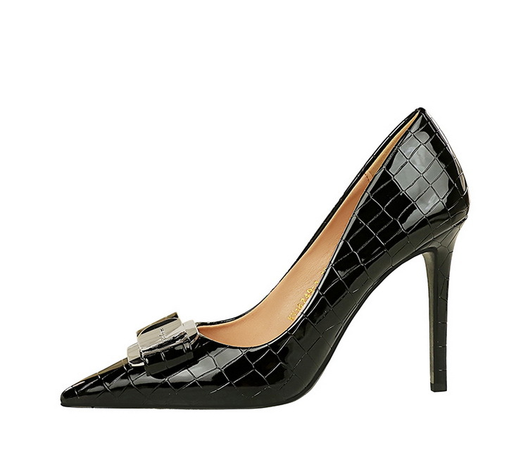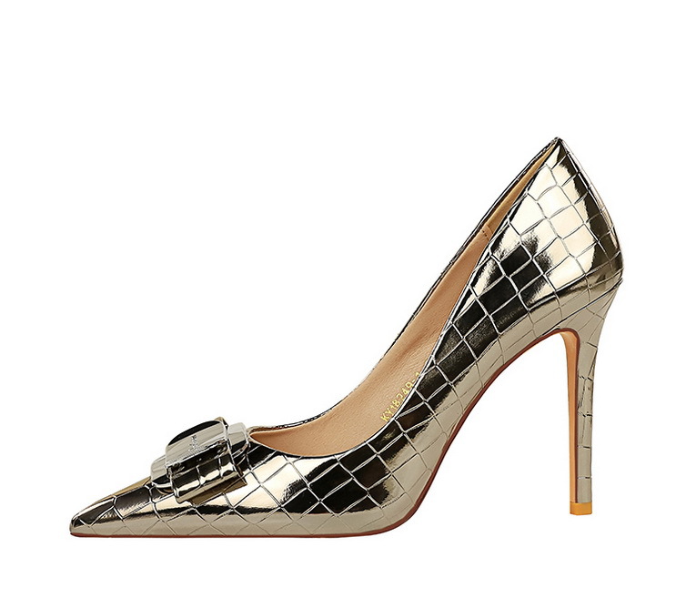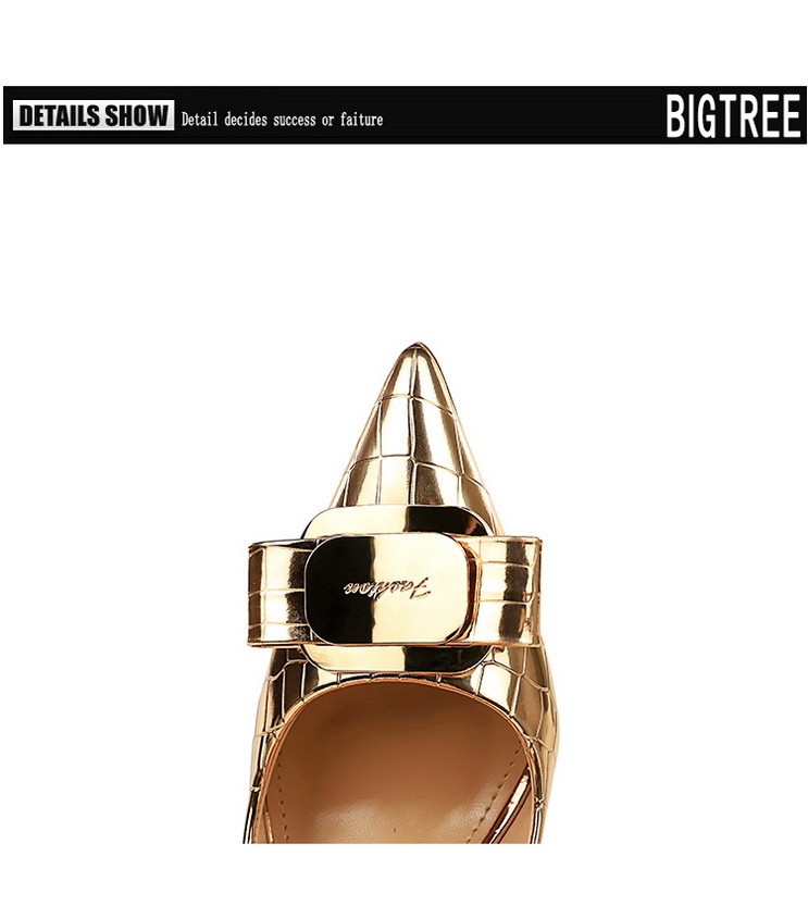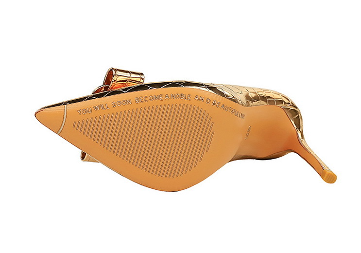 Đôi giày này mang phong cách châu Âu hiện đại, phù hợp cho các buổi tiệc. Sản phẩm có phần mũi giày bóng kết hợp nơ kim loại tạo điểm nhấn. Đế giày rất cao và nhọn, giúp tôn dáng người sử dụng. Khi dùng, bạn nên chọn size vừa vặn với chân và hạn chế di chuyển nhiều trên nền gồ ghề để giữ thăng bằng tốt hơn. | Tên sản phẩm: Giày Cao Gót Nữ Thắt Nơ Bướm Gót Nhọn Phong Cách Âu Mỹ - Giày Dép Nữ | Mã sản phẩm: B1046 - Giá: 640.000đ | Mã nhà sản xuất: PITYIN-G02Hình ảnh sản phẩm