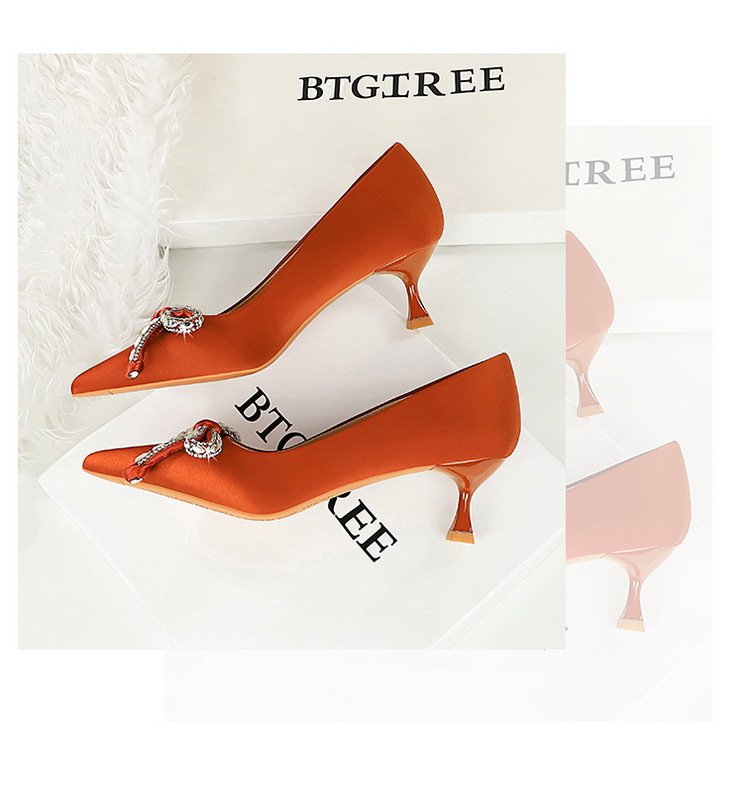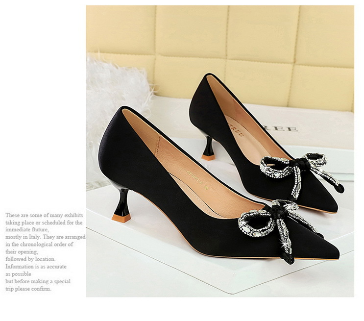 Đôi giày này có phần mũi nhọn và gót hình ly rượu thanh thoát. Điểm nhấn là chiếc nơ được đính những hạt pha lê lấp lánh tinh tế. Chất liệu vải bóng tạo cảm giác mềm mại và ôm chân. Kiểu dáng mang phong cách châu Âu hiện đại, phù hợp để đi làm hoặc dự tiệc. Bạn có thể phối cùng nhiều loại trang phục khác nhau để tạo nên những vẻ đẹp riêng biệt. | Tên sản phẩm: Giày Cao Gót Nữ Thắt Nơ Bướm Gắn Đá Mũi Nhọn Gót Nhọn Phong Cách Âu Mỹ - Giày Dép Nữ | Mã sản phẩm: B1054 - Giá: 710.000đ | Mã nhà sản xuất: PITYIN-G02Hình ảnh sản phẩm