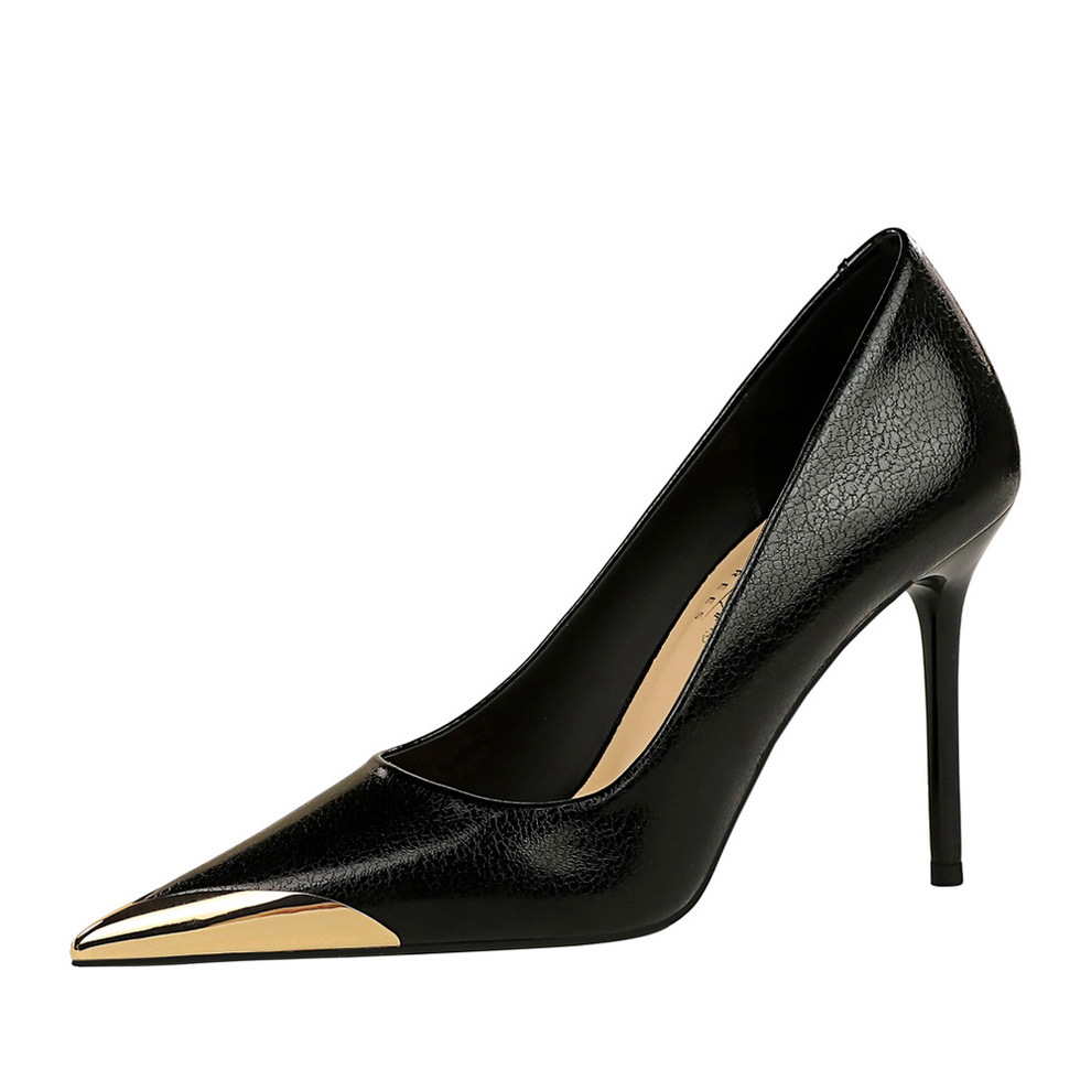 Đôi giày này mang phong cách cổ điển châu Âu, kiểu dáng mũi nhọn đặc trưng. Phần mũi giày có điểm nhấn bằng chất liệu ánh kim tinh tế. Form giày ôm chân với thiết kế cổ giày thấp, phối cùng gót cực cao và nhỏ tạo dáng thanh thoát. Sản phẩm phù hợp để mang trong các buổi tiệc hoặc sự kiện. Khi sử dụng, nên chọn size phù hợp với chân và kết hợp cùng trang phục dạo phố hoặc váy liền để tôn lên vẻ đẹp hiện đại. | Tên sản phẩm: Giày Cao Gót Nữ Mũi Nhọn Gót Nhọn Phong Cách Âu Mỹ - Giày Dép Nữ | Mã sản phẩm: B1060 - Giá: 640.000đ | Mã nhà sản xuất: PITYIN-G02Hình ảnh sản phẩm