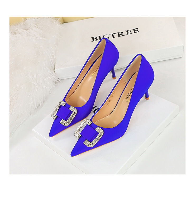 Đôi giày này mang phong cách châu Âu hiện đại, kiểu dáng mũi nhọn và cổ thấp tạo nên vẻ thanh thoát. Phần gót cao và mảnh giúp tôn dáng người mặc một cách tinh tế. Điểm nhấn là chi tiết khuy cài đính viên pha lê lấp lánh, tăng thêm phần nổi bật. Sản phẩm thích hợp để mang trong các buổi tiệc hoặc sự kiện. Khi sử dụng, nên chọn size vừa vặn và kết hợp với những bộ trang phục phù hợp để tạo hiệu ứng hài hòa. | Tên sản phẩm: Giày Cao Gót Nữ Gắn Đá Mũi Nhọn Gót Nhọn Phong Cách Âu Mỹ - Giày Dép Nữ | Mã sản phẩm: B1061 - Giá: 700.000đ | Mã nhà sản xuất: PITYIN-G02Hình ảnh sản phẩm