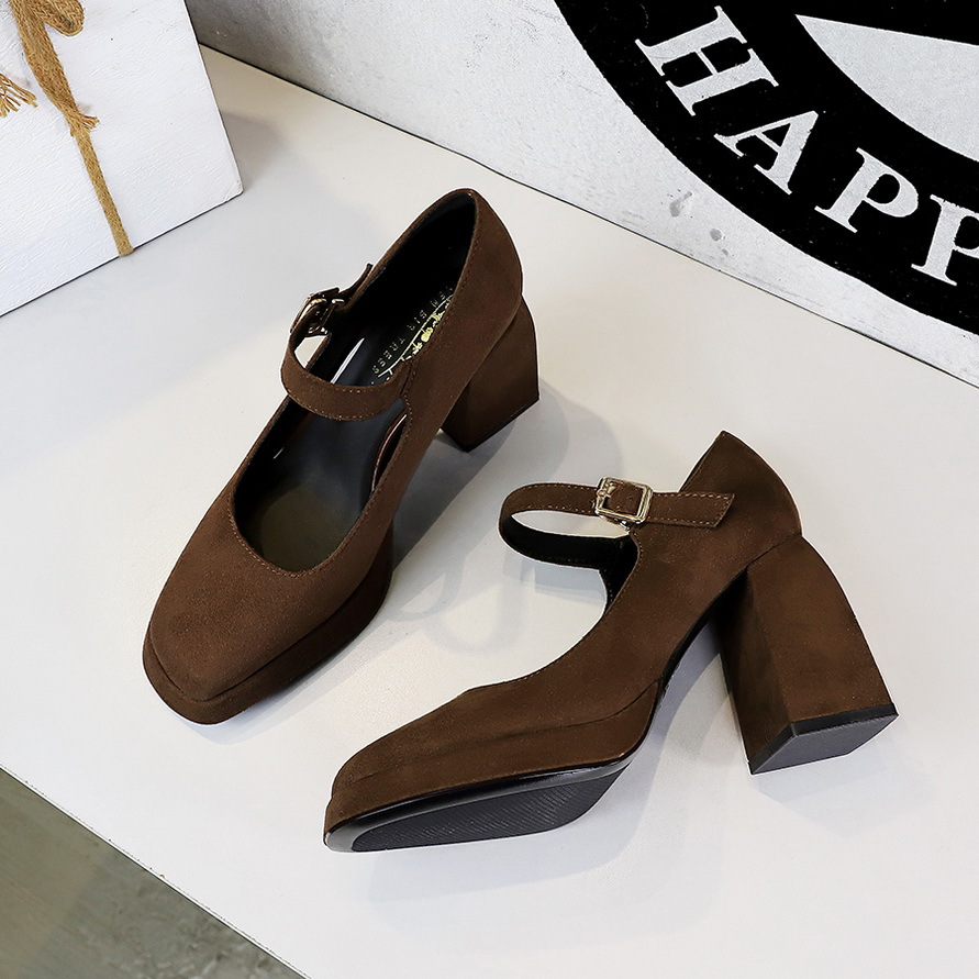 Giày cao gót nữ với phong cách cổ điển châu Âu, mang nét hoài cổ đầy quyến rũ. Sản phẩm có phần gót thấp vững chãi cùng đế chống nước giúp bạn di chuyển thoải mái. Kiểu dáng cổ thấp, mũi vuông và điểm nhấn là khóa cài dây ngang tạo nên vẻ đẹp tinh tế. Chất liệu da lộn mềm mại ôm chân. Dễ dàng phối cùng nhiều trang phục như quần âu hay váy liền để tạo điểm nhấn nổi bật. | Tên sản phẩm: Giày Cao Gót Nữ Gót Vuông Phong Cách Âu Mỹ - Giày Dép Nữ | Mã sản phẩm: B1064 - Giá: 710.000đ | Mã nhà sản xuất: PITYIN-G02Hình ảnh sản phẩm