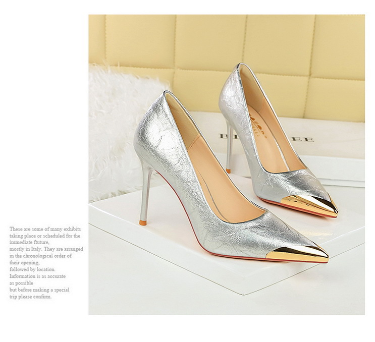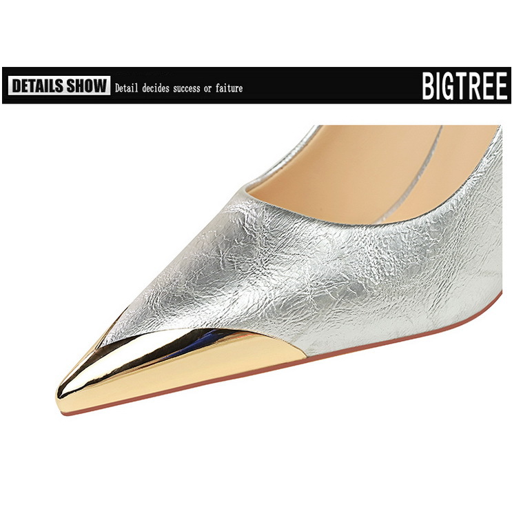 Đôi giày này mang phong cách thời trang châu Âu với thiết kế cổ thấp và mũi nhọn. Điểm nhấn đặc biệt là phần mũi được bọc kim loại sáng bóng, tạo nên vẻ cá tính và mạnh mẽ. Phần gót cực cao và thanhai mảnh giúp tôn dáng người mặc một cách tinh tế. Sản phẩm phù hợp để phối hợp với nhiều bộ trang phục khác nhau. Khi sử dụng, bạn nên đi lại cẩn thận để giữ thăng bằng tốt hơn trên đôi gót cao. | Tên sản phẩm: Giày Cao Gót Nữ Mũi Nhọn Gót Nhọn Phong Cách Âu Mỹ - Giày Dép Nữ | Mã sản phẩm: B1067 - Giá: 640.000đ | Mã nhà sản xuất: PITYIN-G02Hình ảnh sản phẩm