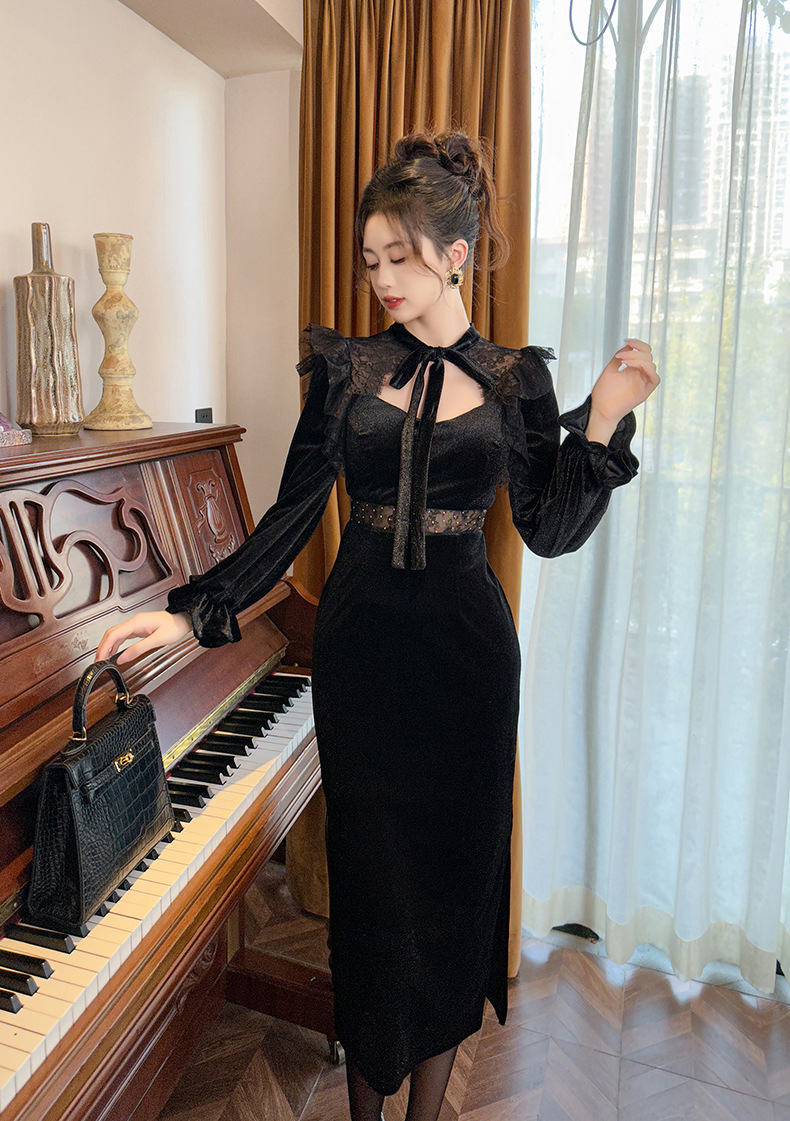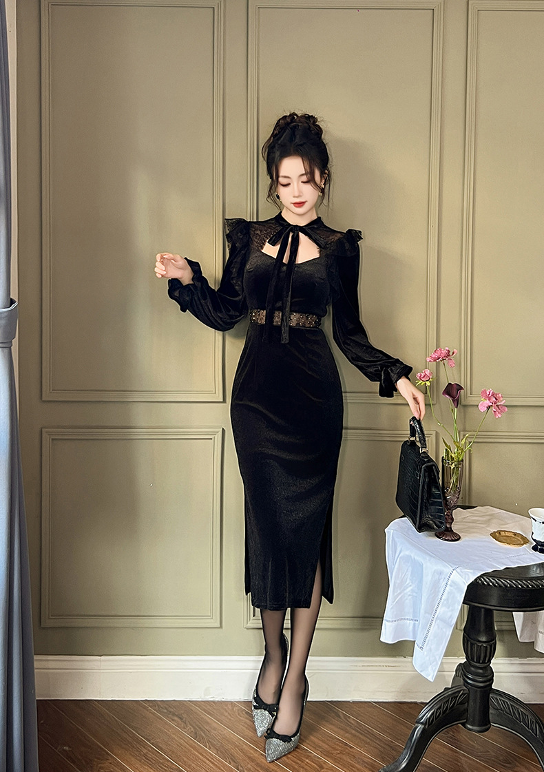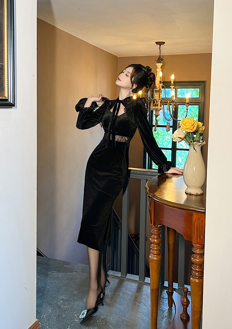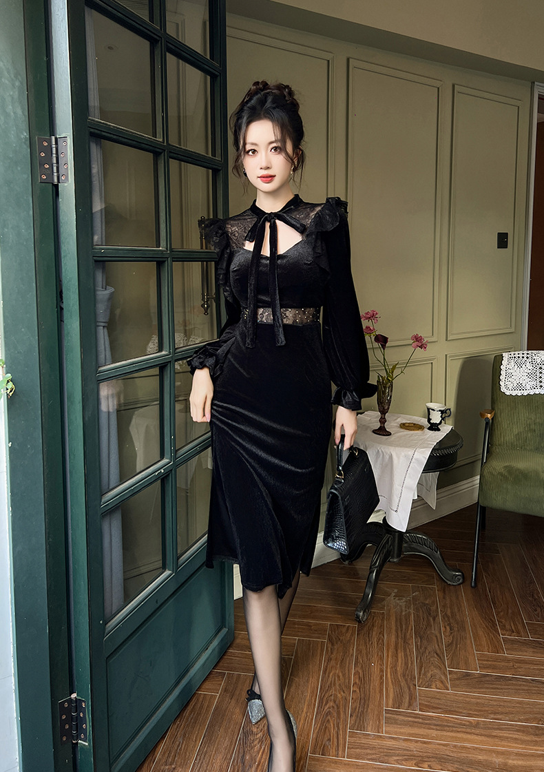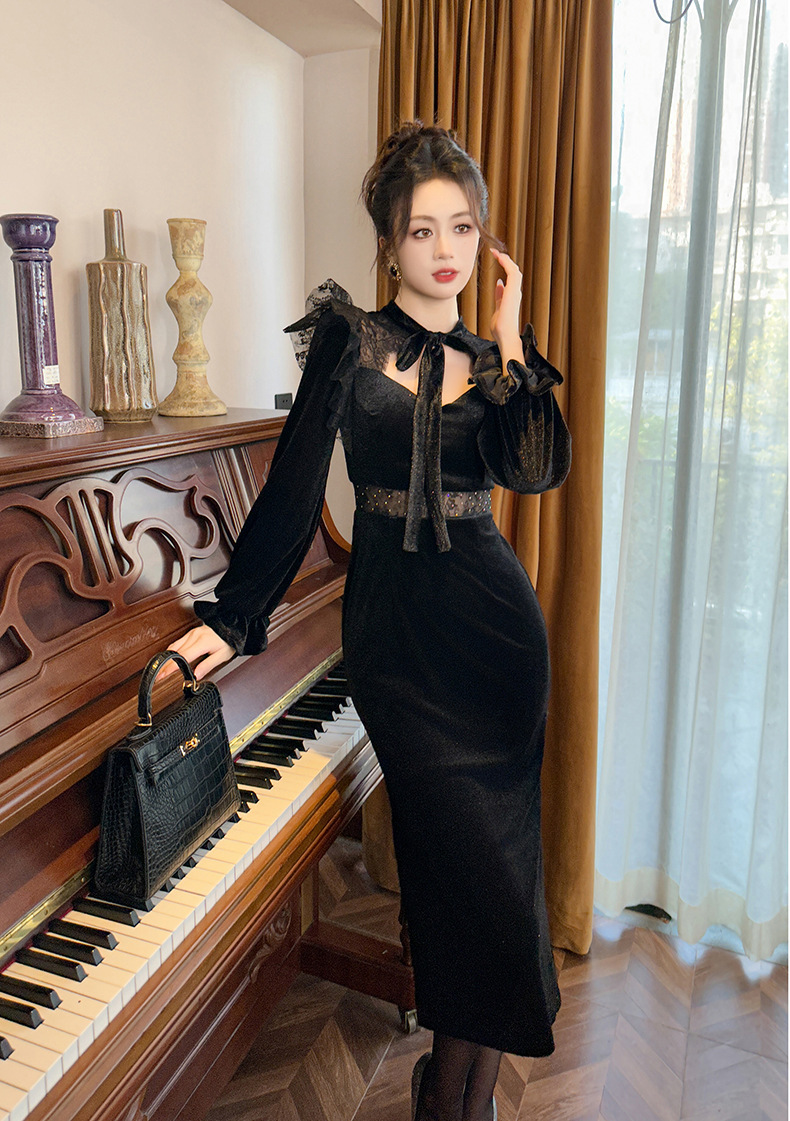 Chiếc đầm ngắn tay cổ điển này được làm từ chất liệu nhung mềm mại, tôn lên vẻ đẹp thanh lịch. Điểm nhấn là phần eo được may ôm tinh tế, kết hợp cùng chi tiết khoét hình học nhẹ nhàng tạo nên sự thu hút. Kiểu dáng này rất dễ phối đồ, bạn có thể mặc đi làm, dự tiệc hoặc gặp mặt bạn bè. Chỉ cần kết hợp cùng một đôi giày cao gót và túi xách nhỏ là bạn đã có một set đồ hoàn chỉnh. | Tên sản phẩm: Váy Đầm Liền Thân Nữ Hàng Mùa Xuân Thu Đông - Thời Trang Nữ | Mã sản phẩm: B1074 - Giá: 1.190.000đ | Mã nhà sản xuất: CHDG-G04Hình ảnh sản phẩm
