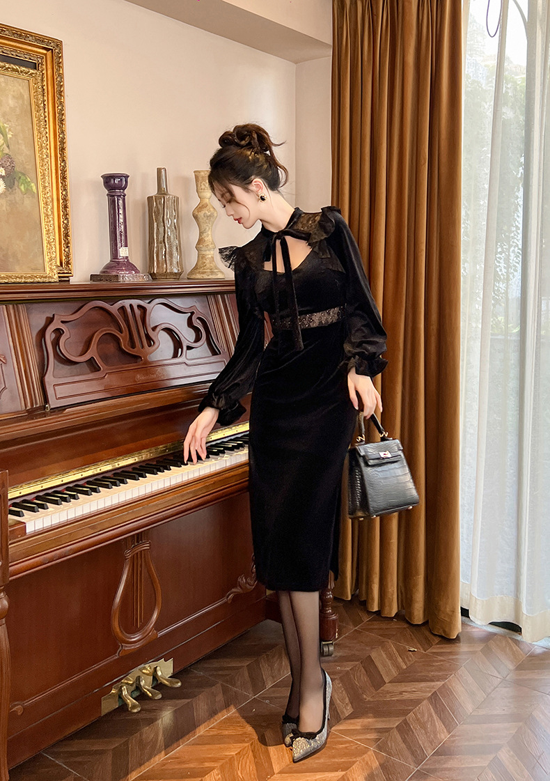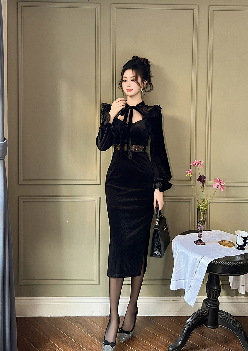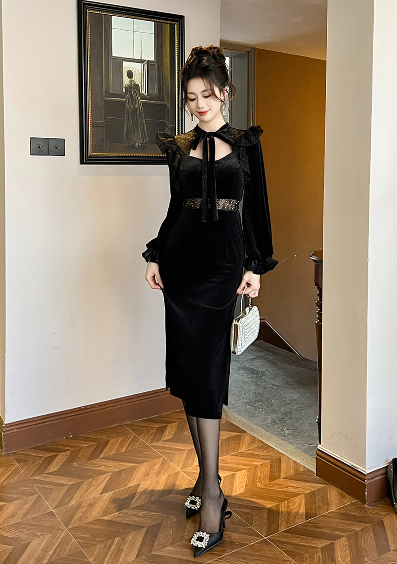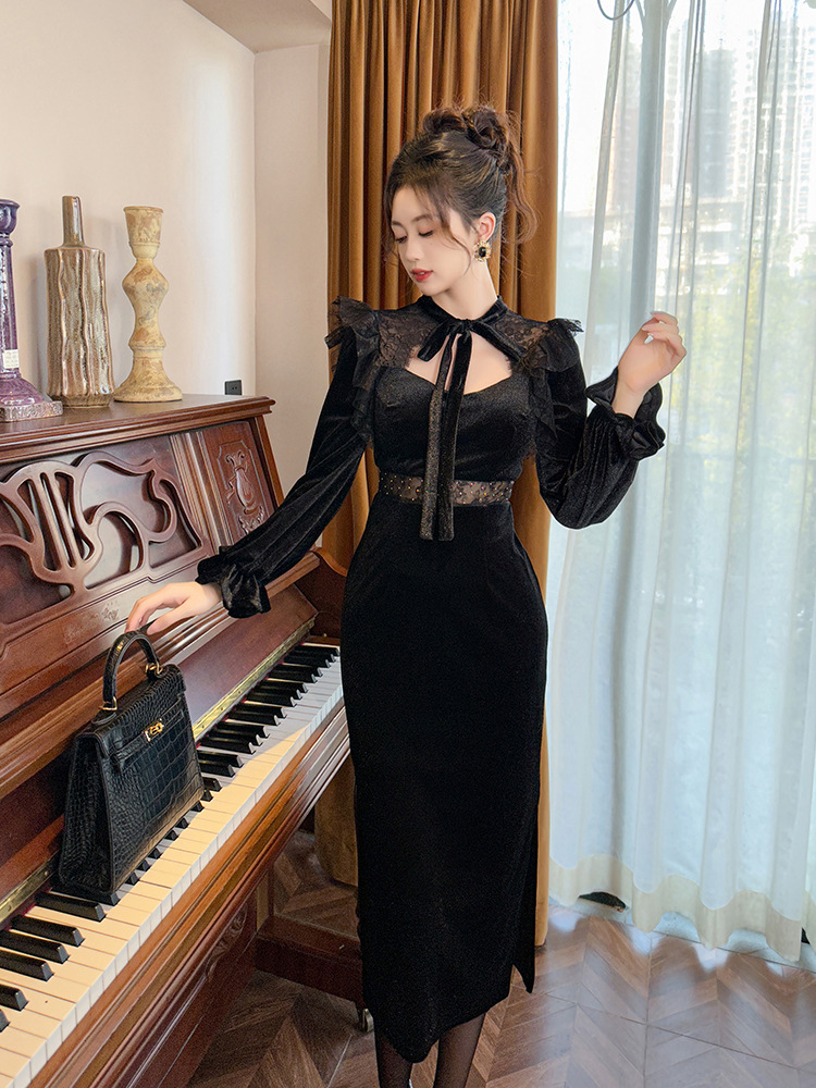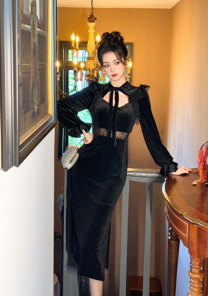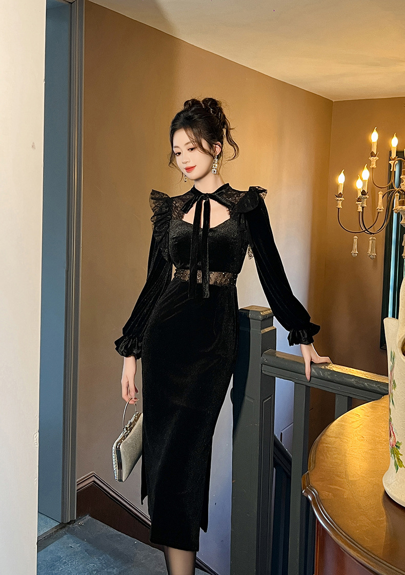Chiếc đầm ngắn tay cổ điển này được làm từ chất liệu nhung mềm mại, tôn lên vẻ đẹp thanh lịch. Điểm nhấn là phần eo được may ôm tinh tế, kết hợp cùng chi tiết khoét hình học nhẹ nhàng tạo nên sự thu hút. Kiểu dáng này rất dễ phối đồ, bạn có thể mặc đi làm, dự tiệc hoặc gặp mặt bạn bè. Chỉ cần kết hợp cùng một đôi giày cao gót và túi xách nhỏ là bạn đã có một set đồ hoàn chỉnh. | Tên sản phẩm: Váy Đầm Liền Thân Nữ Hàng Mùa Xuân Thu Đông - Thời Trang Nữ | Mã sản phẩm: B1074 - Giá: 1.190.000đ | Mã nhà sản xuất: CHDG-G04Hình ảnh sản phẩm