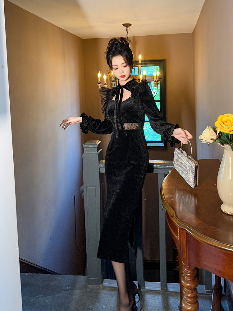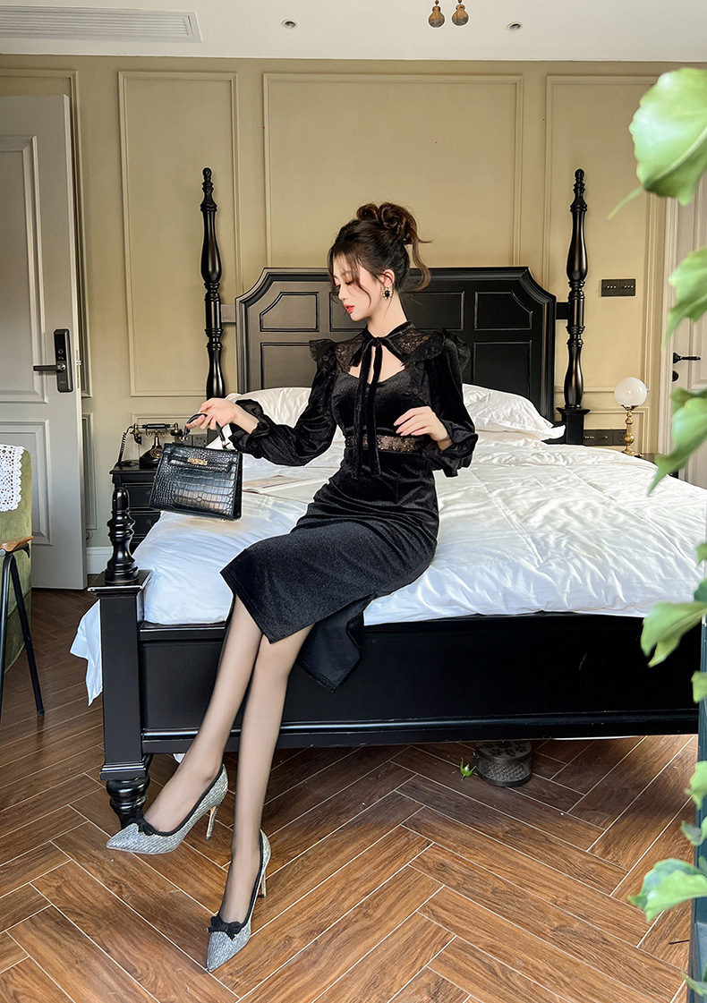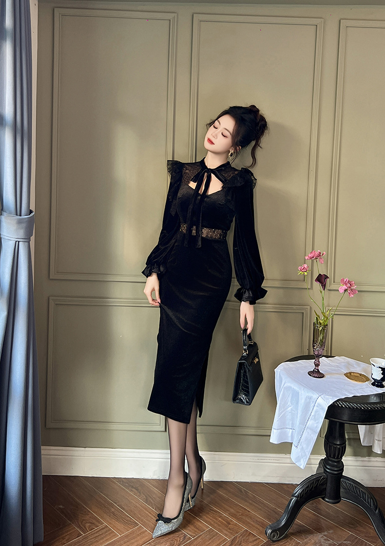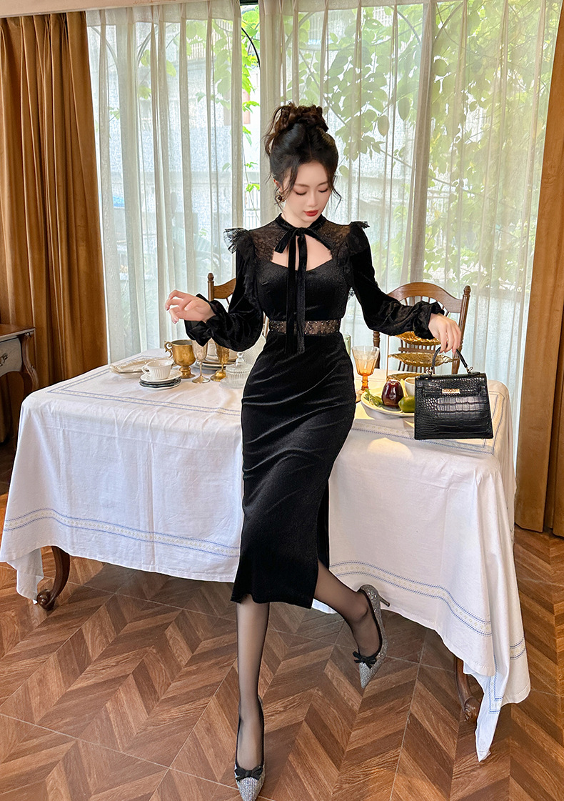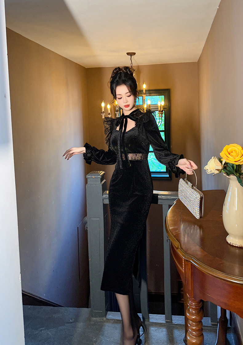 Chiếc đầm ngắn tay cổ điển này được làm từ chất liệu nhung mềm mại, tôn lên vẻ đẹp thanh lịch. Điểm nhấn là phần eo được may ôm tinh tế, kết hợp cùng chi tiết khoét hình học nhẹ nhàng tạo nên sự thu hút. Kiểu dáng này rất dễ phối đồ, bạn có thể mặc đi làm, dự tiệc hoặc gặp mặt bạn bè. Chỉ cần kết hợp cùng một đôi giày cao gót và túi xách nhỏ là bạn đã có một set đồ hoàn chỉnh. | Tên sản phẩm: Váy Đầm Liền Thân Nữ Hàng Mùa Xuân Thu Đông - Thời Trang Nữ | Mã sản phẩm: B1074 - Giá: 1.190.000đ | Mã nhà sản xuất: CHDG-G04Hình ảnh sản phẩm