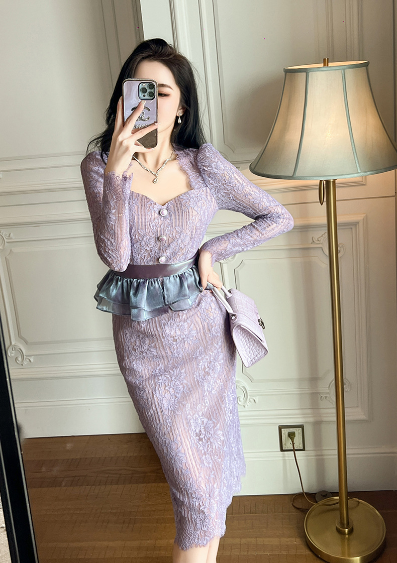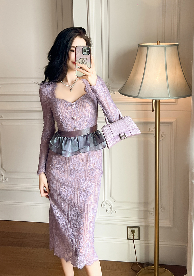 Chiếc đầm mới cho tiết trời thu đông, lấy cảm hứng từ phong cách Pháp với cổ vuông thanh lịch. Điểm nhấn là đường viền tà áo mềm mại như cánh sen, kết hợp cùng thiết kế hai mảnh giả tạo vô cùng tinh tế. Phần eo được bo nhẹ ôm dáng, phối cùng chất liệu ren xuyên thấu tạo nên vẻ đẹp nữ tính. Dễ dàng phối cùng giày cao gót và túi xách cho những buổi gặp mặt hoặc dạo phố. | Tên sản phẩm: Váy Đầm Liền Thân Nữ Chất Liệu Ren Cả Bộ 2 Món Hàng Mùa Xuân Thu Đông - Thời Trang Nữ | Mã sản phẩm: B1080 - Giá: 1.280.000đ | Mã nhà sản xuất: CHDG-G04Hình ảnh sản phẩm
