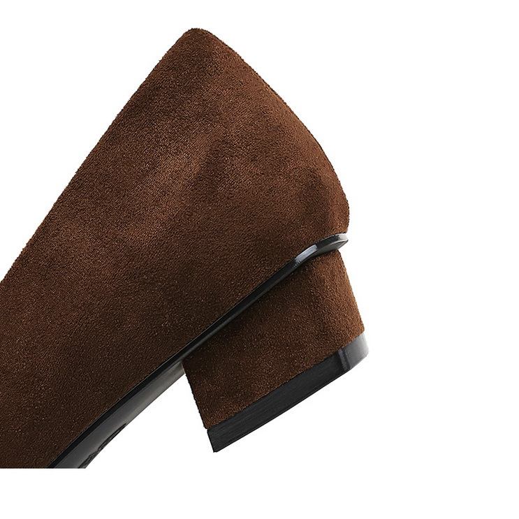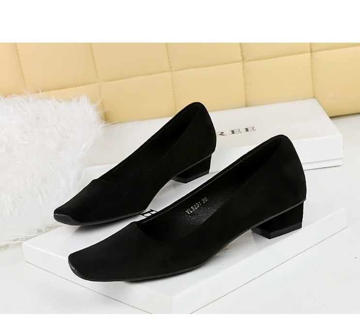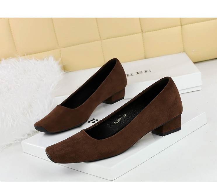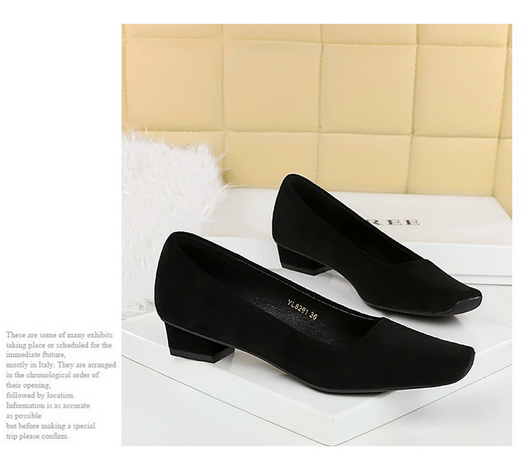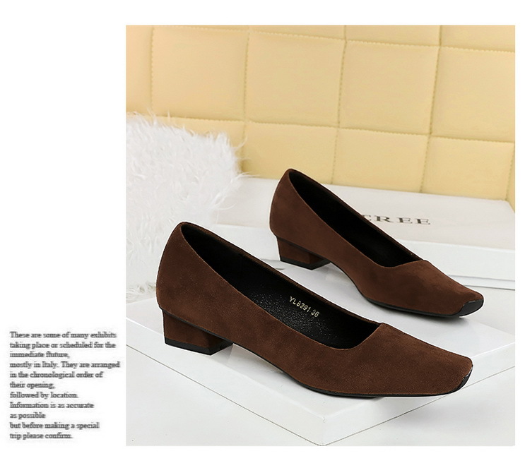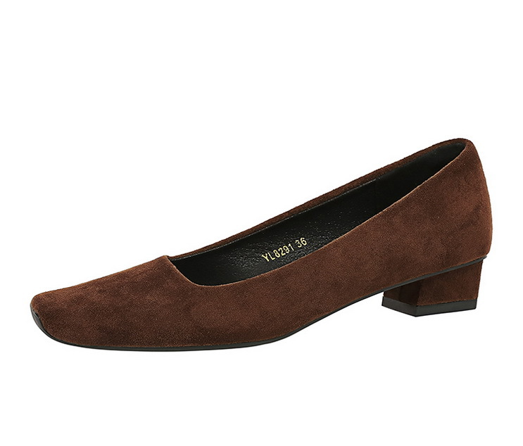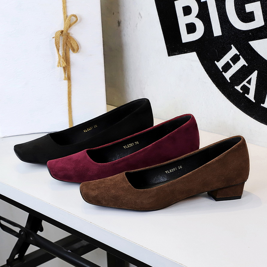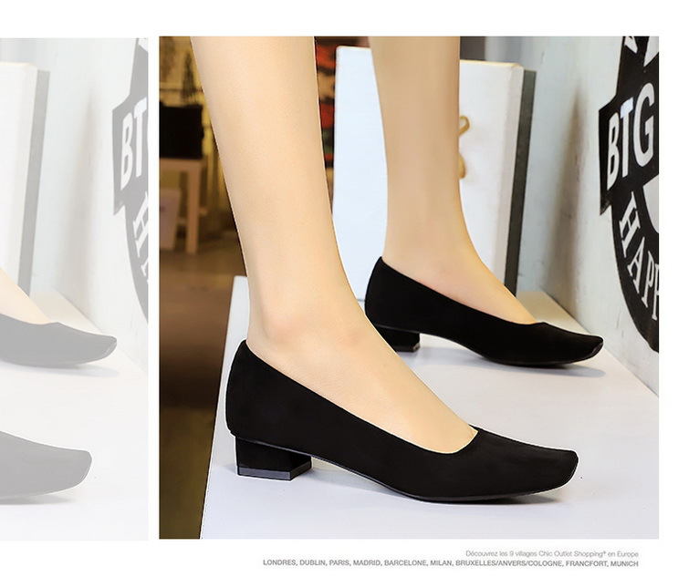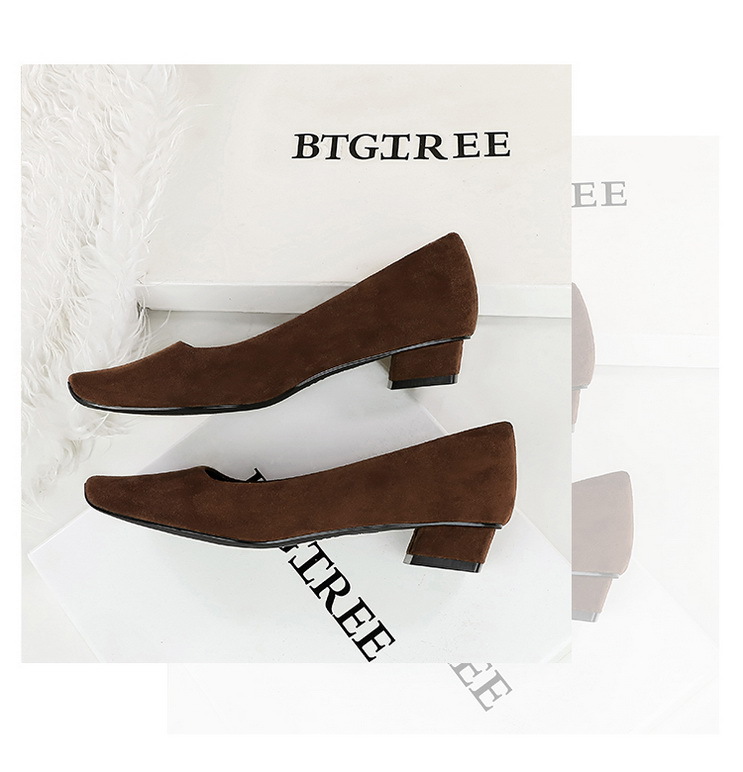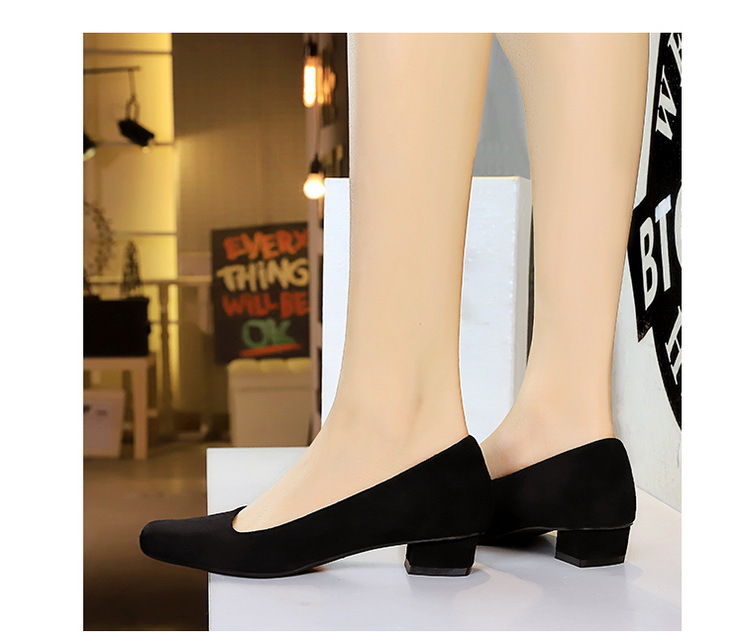 Đôi giày này có kiểu dáng vuông ở mũi, cổ thấp và mặt trên làm từ chất liệu da lộn mịn, không có chi tiết trang trí cầu kỳ. Form giày ôm chân, phù hợp cho các bạn nữ làm việc trong môi trường cần sự lịch sự. Gót thấp và to giúp bạn di chuyển thoải mái cả ngày dài. Dễ dàng kết hợp với nhiều loại trang phục như quần tây, chân váy để tạo vẻ ngoài gọn gàng. | Tên sản phẩm: Giày Cao Gót Nữ Gót Vuông Phong Cách Âu Mỹ Đồ Công Sở - Giày Dép Nữ | Mã sản phẩm: B1100 - Giá: 590.000đ | Mã nhà sản xuất: PITYIN-G01Hình ảnh sản phẩm