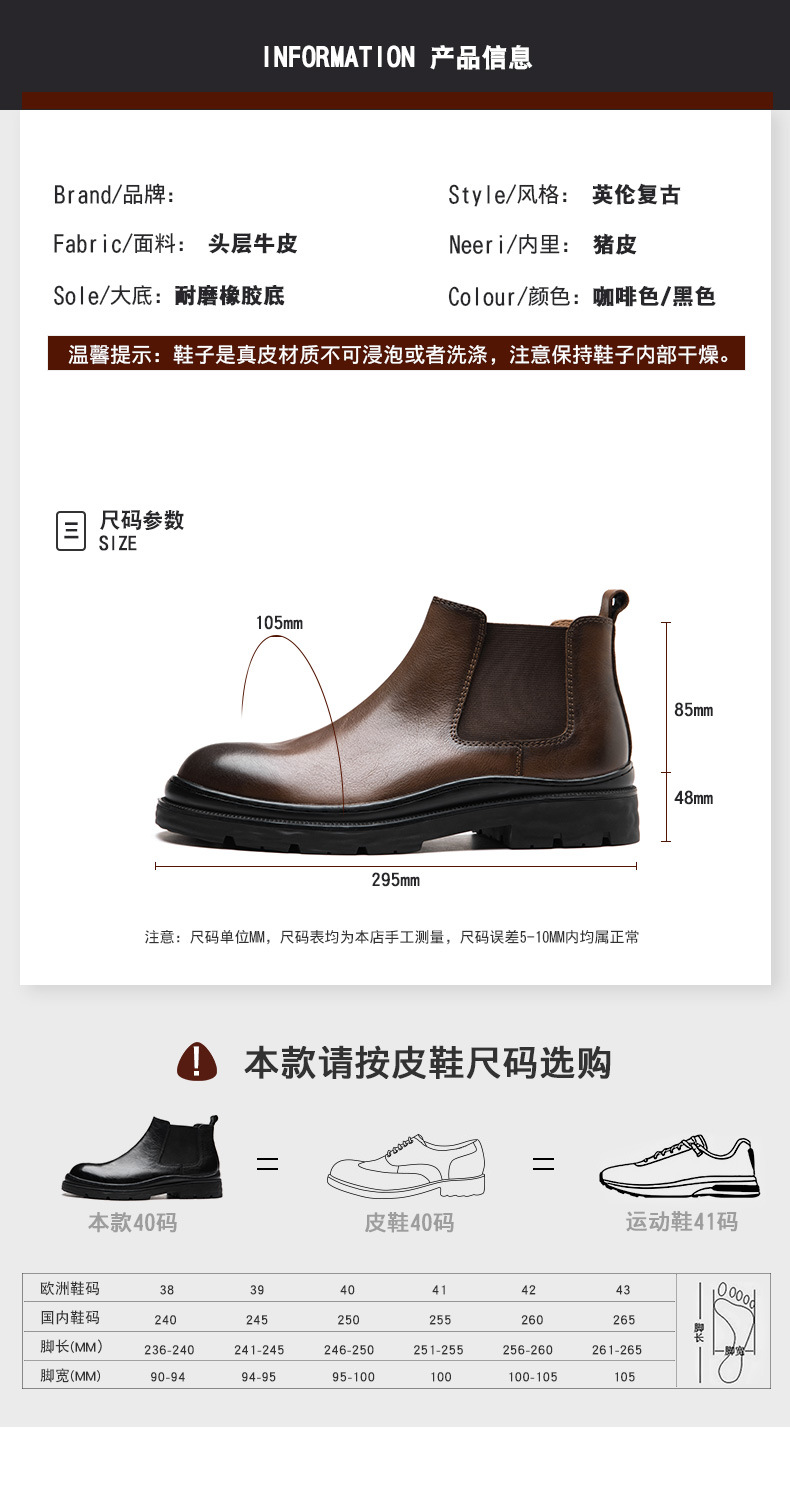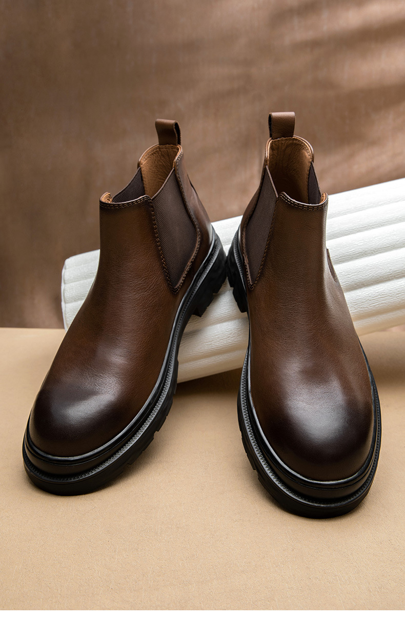 Đôi bốt này có kiểu dáng cổ thấp mang phong cách cổ điển, phù hợp cho mùa thu đông. Sản phẩm được làm từ chất liệu da thật, bên trong có lớp lót thoáng khí giúp chân luôn dễ chịu. Đế được thiết kế có độ dày vừa phải, ôm sát chân và nâng đỡ tốt. Bạn có thể dùng để phối hợp với nhiều loại trang phục như quần jeans hay quần âu để tạo vẻ ngoài chỉn chu, lịch sự mỗi khi ra ngoài. | Tên sản phẩm: Boot Cổ Thấp Nam Chất Liệu Da Bò Thoáng Khí Đế Cao Hàng Mùa Xuân Thu Đông Phục Cổ Cổ Điển - Giày Dép Nam | Mã sản phẩm: B1116 - Giá: 2.770.000đ | Mã nhà sản xuất: SHDT-G06Hình ảnh sản phẩm
