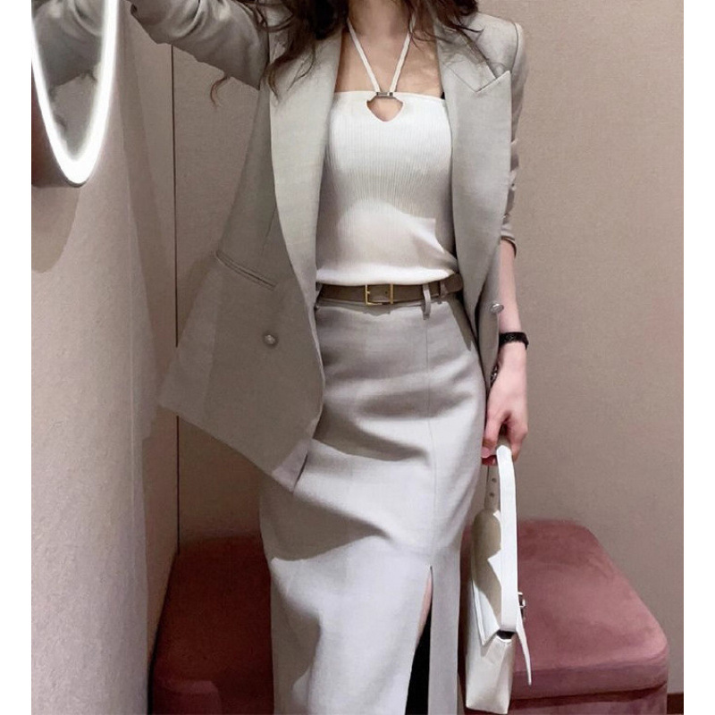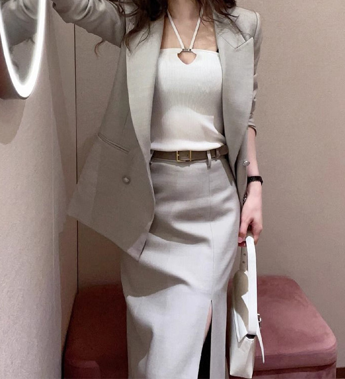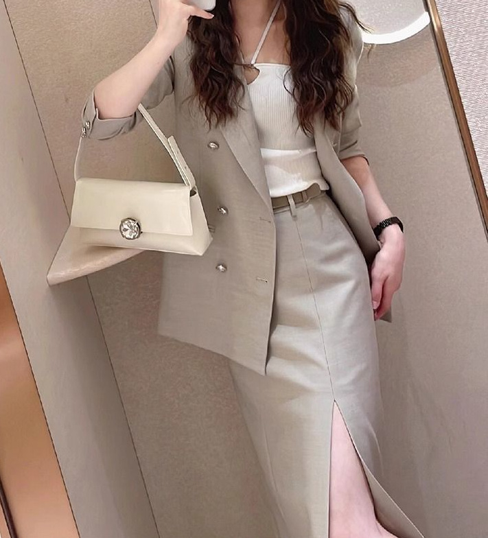 Bộ trang phục này có áo khoác kiểu dáng gọn gàng và chân váy, được thiết kế dành riêng cho môi trường công sở và những lúc di chuyển. Chất vải mềm mại, giữ phom dáng đẹp, tôn lên vẻ thanh lịch cho người mặc. Màu xám nhạt dễ dàng phối cùng nhiều trang phục khác nhau. Có thể mặc nguyên bộ hoặc kết hợp riêng lẻ từng món để tạo nên những phong cách đa dạng, phù hợp cho nhiều dịp trong ngày. | Tên sản phẩm: Áo Vest Nữ Vest Hàng Mùa Xuân Thu Đông Đồ Công Sở - Thời Trang Nữ | Mã sản phẩm: B1136 - Giá: 1.490.000đ | Mã nhà sản xuất: CHTYAI-G04Hình ảnh sản phẩm