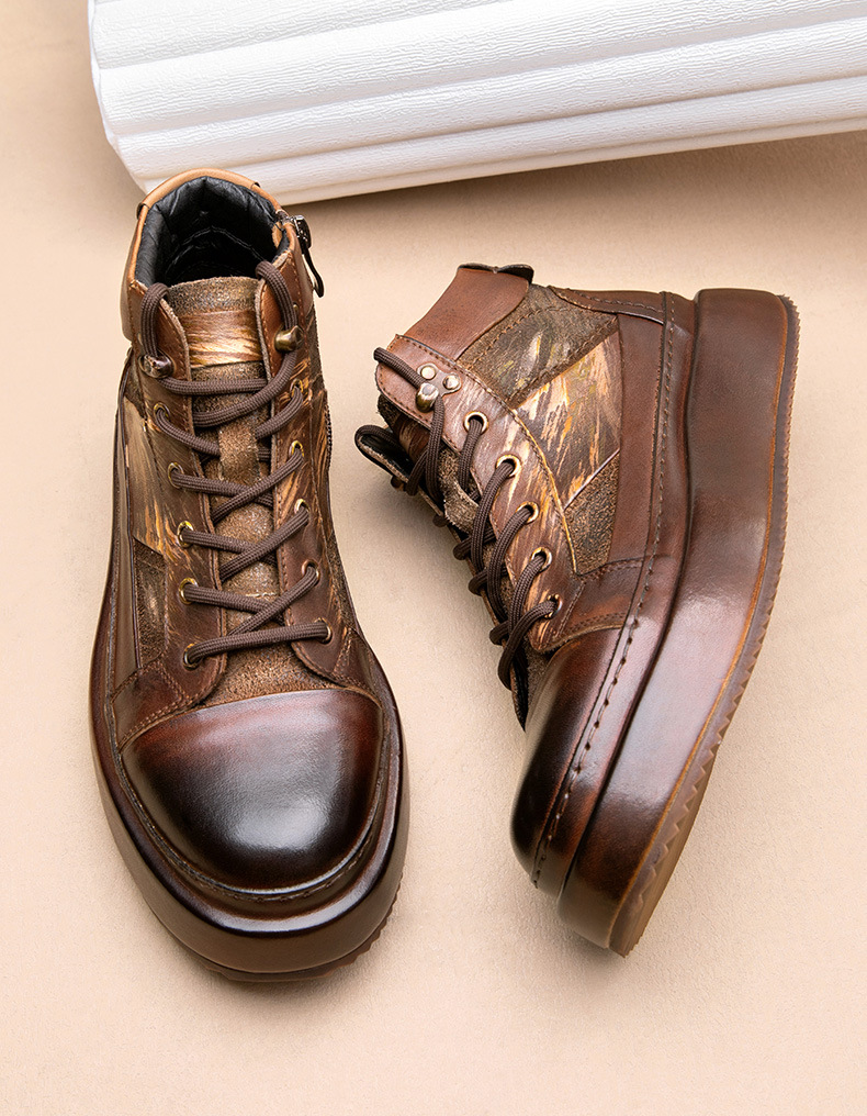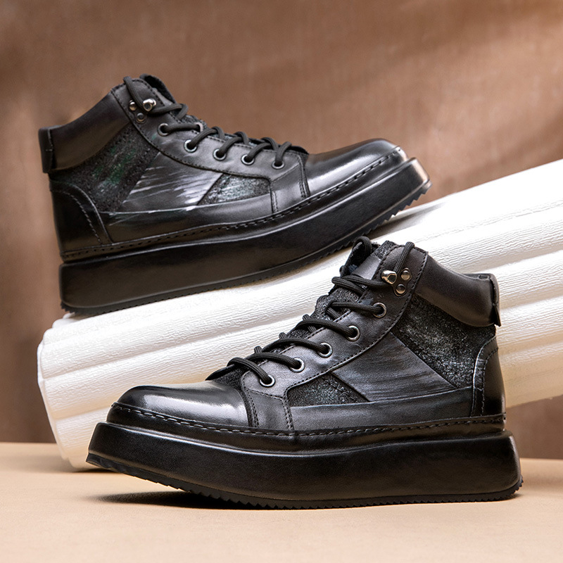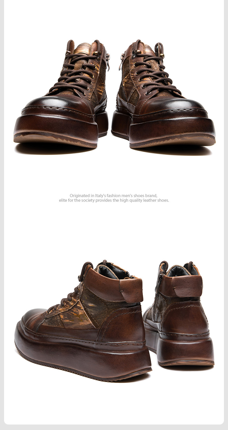 Đôi giày da thật này mang phong cách cổ điển châu Âu, kết hợp nét đẹp của dáng giày bốt cao cổ và giày thể thao đế bằng. Kiểu dáng nam tính với phần cổ cao ôm vừa vặn, tạo vẻ ngoài lịch lãm phù hợp cho cả tiết trời thu đông. Chất liệu da mềm mại mang đến sự thoải mái khi di chuyển cả ngày. Bạn có thể dễ dàng phối cùng nhiều loại trang phục như quần jeans, quần kaki hay quần âu để tạo nên những phong cách khác nhau, từ đi làm đến những dịp gặp gỡ thường ngày. | Tên sản phẩm: Giày Da Nam Chất Liệu Da Bò Hàng Mùa Xuân Thu Đông Phục Cổ Cổ Điển - Giày Dép Nam | Mã sản phẩm: B1139 - Giá: 3.040.000đ | Mã nhà sản xuất: SHDT-G06Hình ảnh sản phẩm