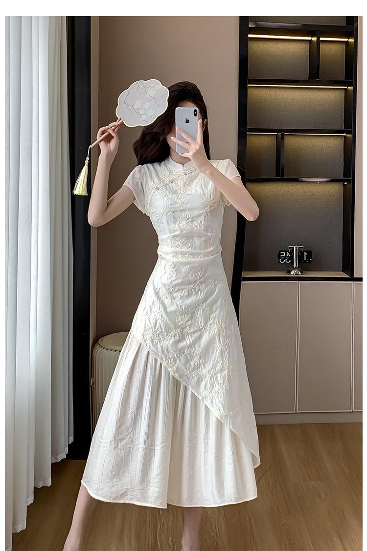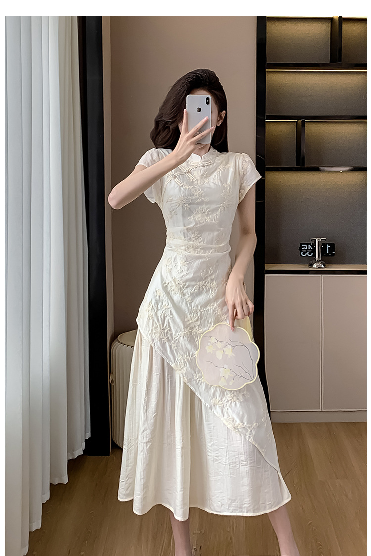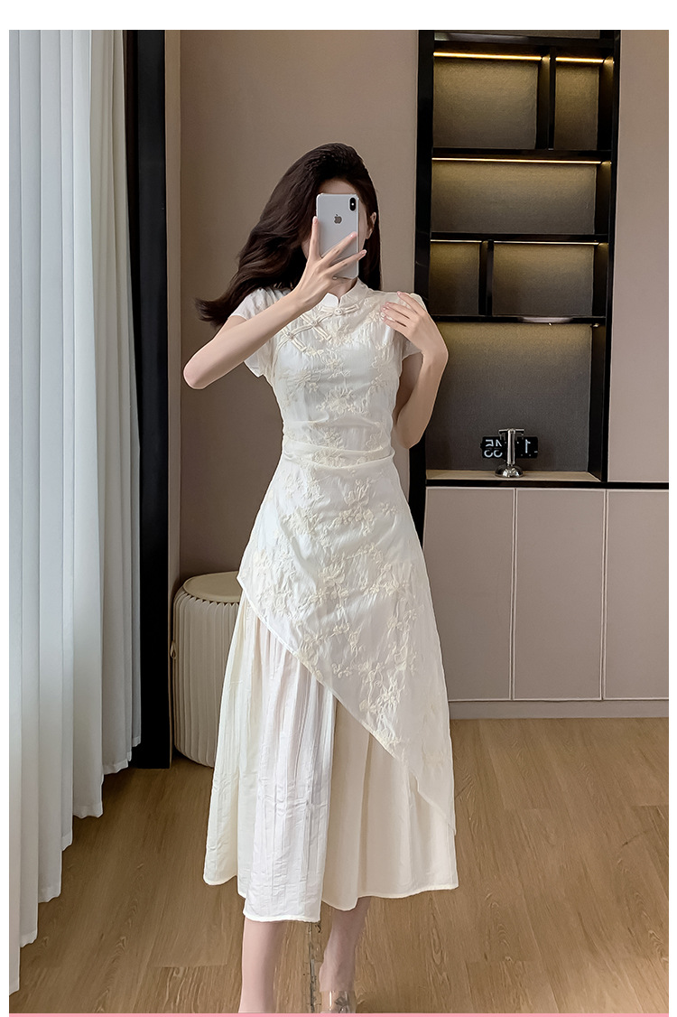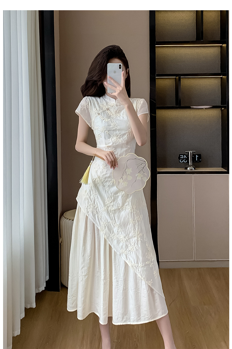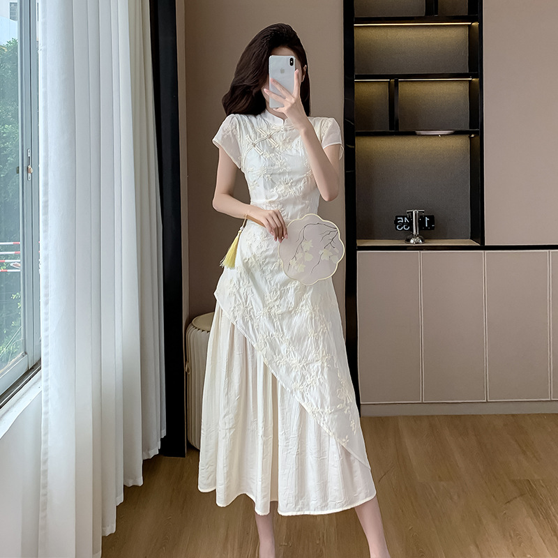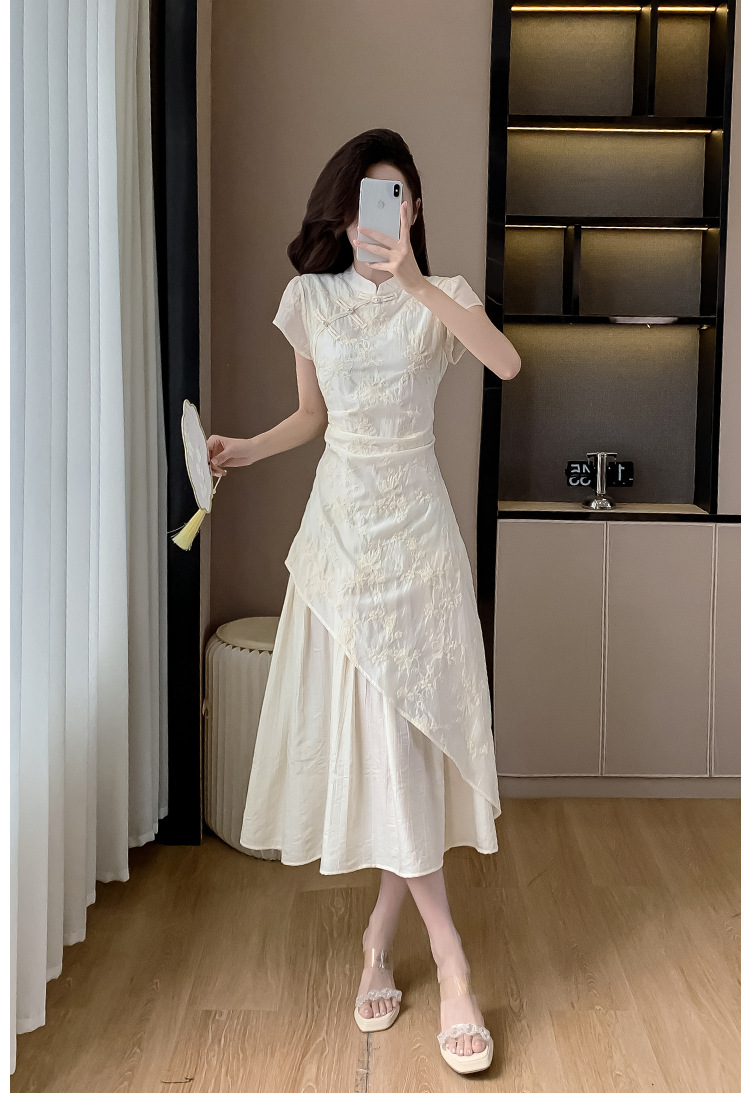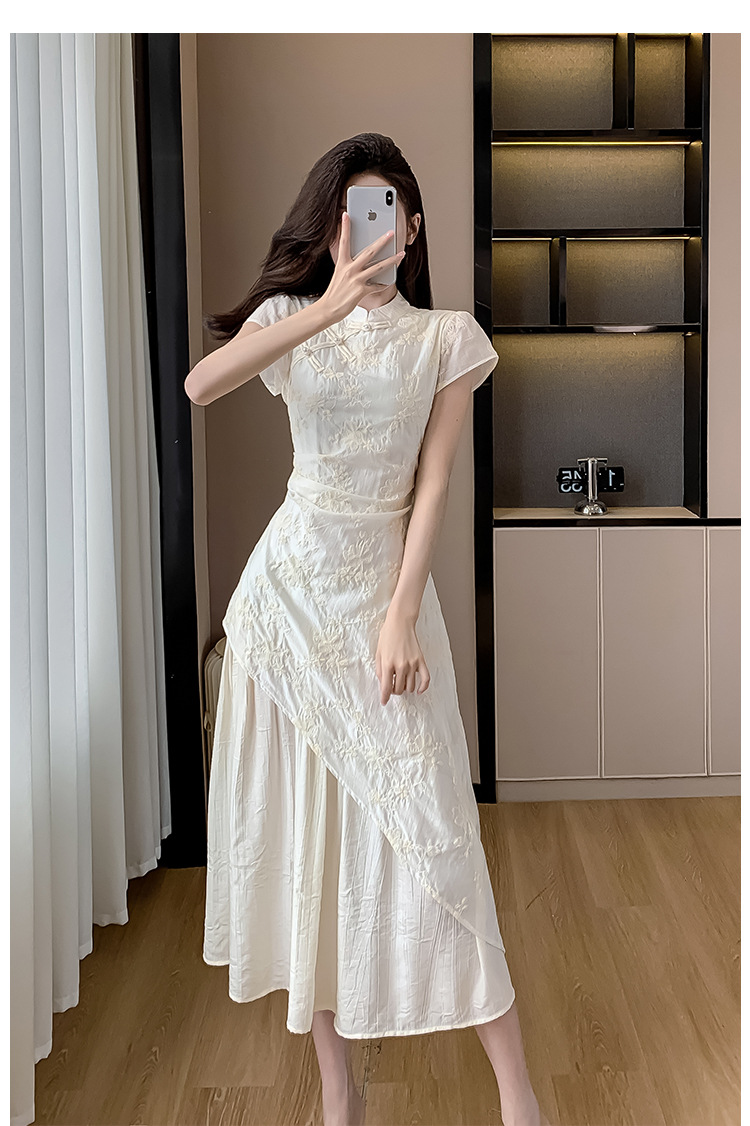 Chiếc đầm này kết hợp tinh hoa kiểu dáng cổ điển với đường nét hiện đại. Chất liệu mỏng nhẹ thích hợp cho mùa hè. Điểm nhấn là những đường thêu tinh xảo trên nền vải, cùng phần tà váy được thiết kế lệch điệu độc đáo. Kiểu dáng ôm nhẹ cơ thể tôn lên những đường nét duyên dáng. Sản phẩm phù hợp cho nhiều dịp khác nhau, từ những buổi gặp mặt thân mật đến các sự kiện. Có thể giặt tay nhẹ nhàng và phơi nơi râm mát để giữ form vải. | Tên sản phẩm: Váy Đầm Liền Thân Nữ Thêu Họa Tiết Hoa Hàng Mùa Hè - Thời Trang Nữ | Mã sản phẩm: B1162 - Giá: 980.000đ | Mã nhà sản xuất: ZHOUT-G03Hình ảnh sản phẩm