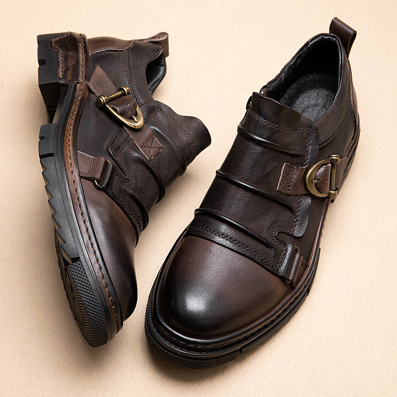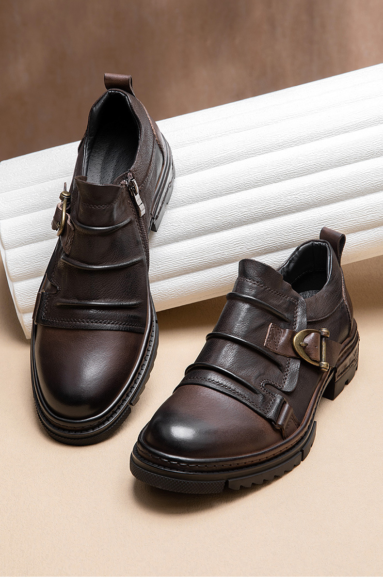 Giày da thật dành cho nam, kiểu dáng cổ thấp phù hợp cho những lúc thư giãn. Sản phẩm được làm từ chất liệu da bò mềm mại, bền đẹp theo thời gian. Thiết kế có phần đế dày, đầu tròn mang phong cách cổ điển nhẹ nhàng, dễ dàng kết hợp với nhiều loại trang phục khác nhau. Bạn có thể sử dụng như một đôi giàu hàng ngày, đi làm hoặc dạo phố đều thoải mái và tiện lợi. | Tên sản phẩm: Giày Da Nam Chất Liệu Da Bò Mũi Tròn Đế Cao Phục Cổ Cổ Điển - Giày Dép Nam | Mã sản phẩm: B1164 - Giá: 2.680.000đ | Mã nhà sản xuất: SHDT-G06Hình ảnh sản phẩm